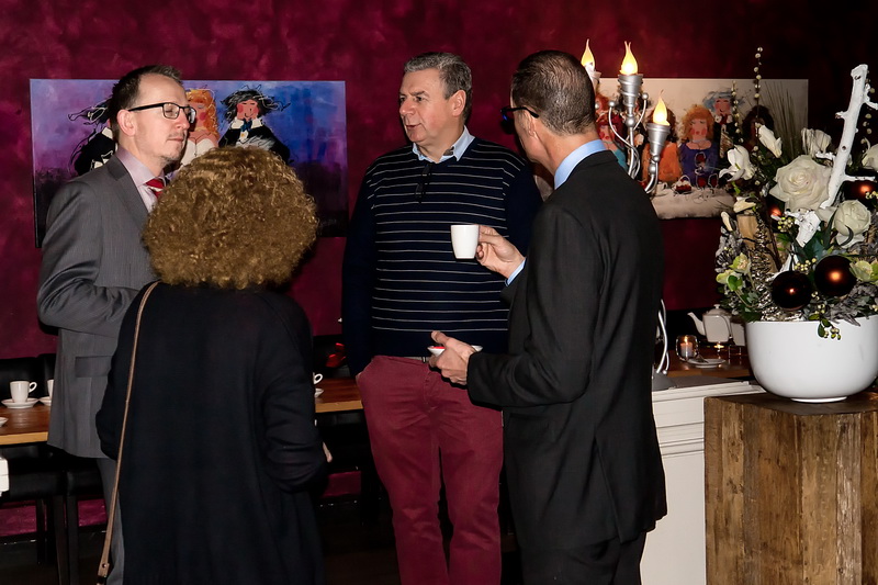 Chris de Waard sprak tussen ontbijt en koffie met manager Nancy Haanappel van het Ronald McDonaldhuis en met Pieter Visser van sponsor Grant Thornton. Er Welt Een Traan zorgde voor een vrolijke kerstnoot.
