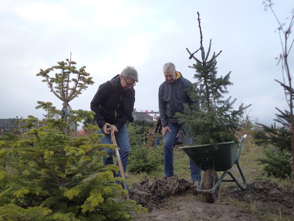 De ervaring leert inmiddels dat niet alle bomen het jaar overleven in de Vrij Groen tuin aan de Rhijnhofweg 13. Maar de organisatie verzekert dat er voor ieder die een boom inlevert, in december weer een boom beschikbaar is.