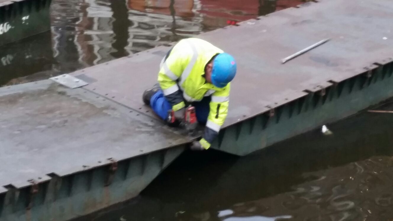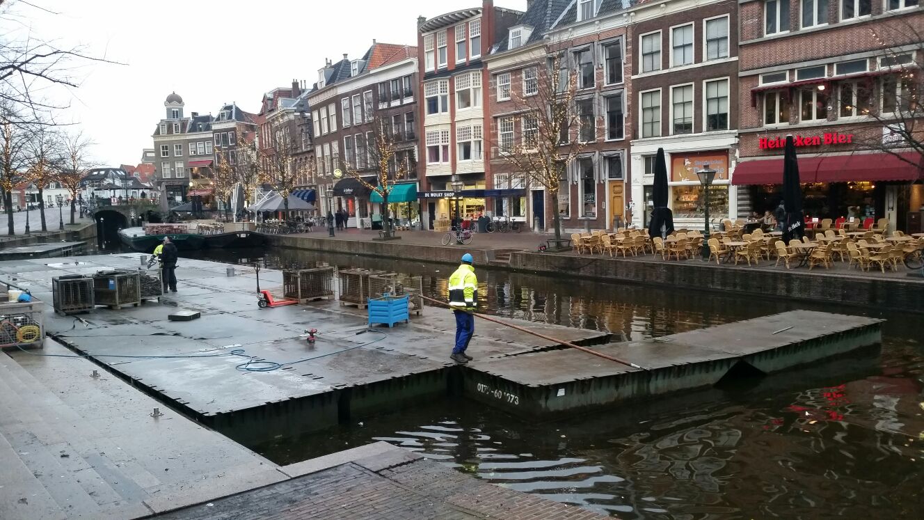 De drijvende ijsbaan op de Nieuwe Rijn werd dinsdag afgebroken, het water is nu weer vrij.