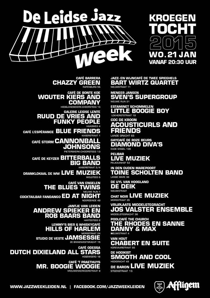 Het volledige programma van de Leidse Jazzweek en de Kroegentocht zijn te vinden op de website van de Leidse Jazzweek.