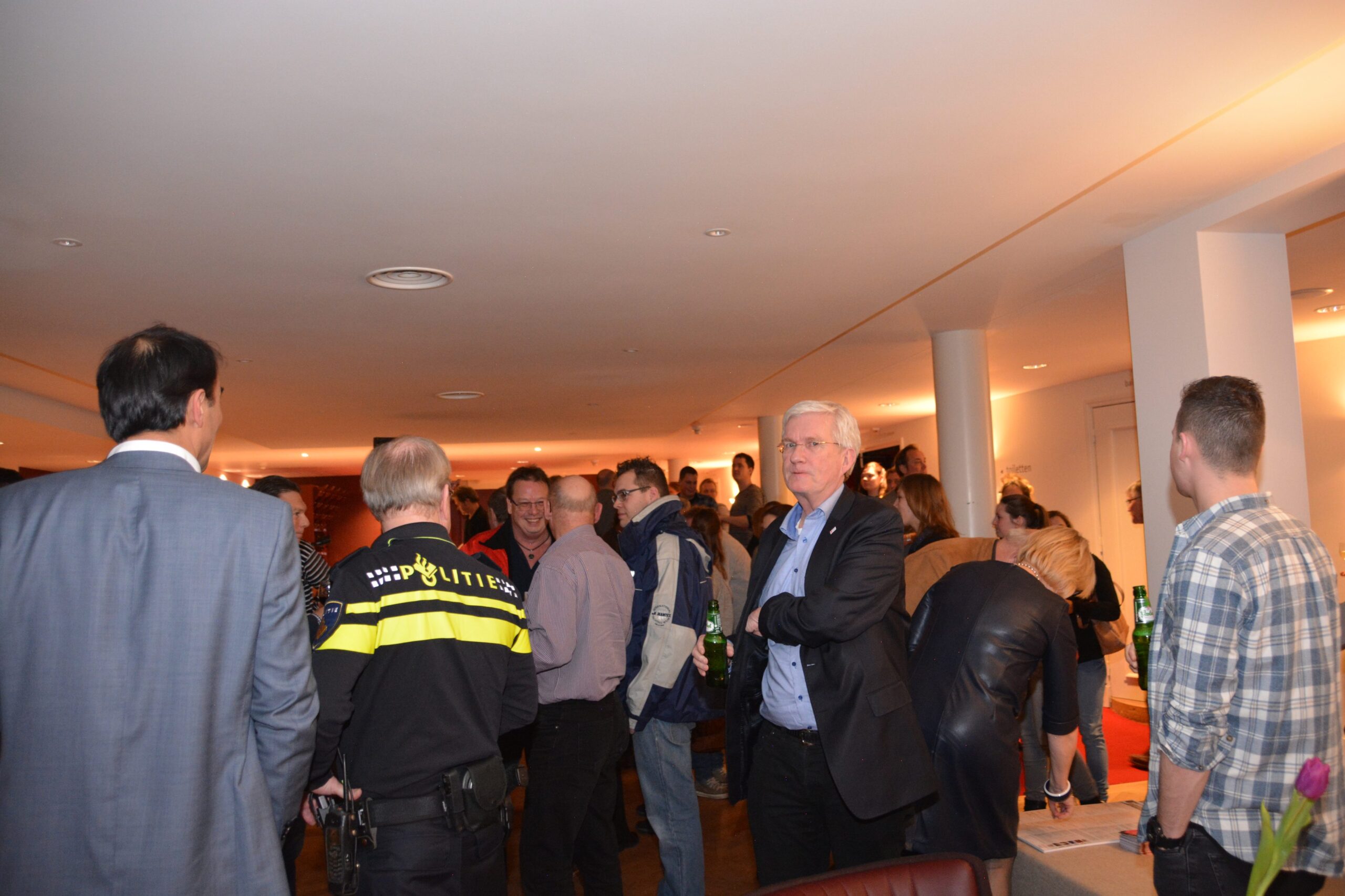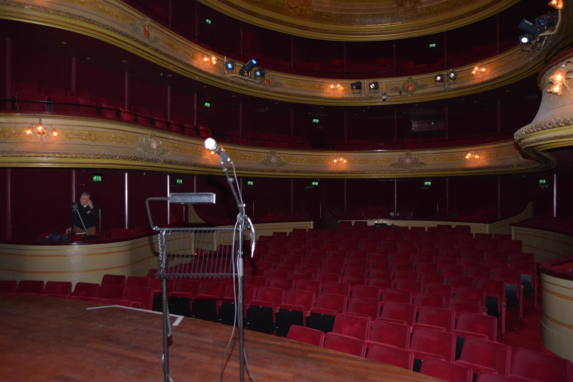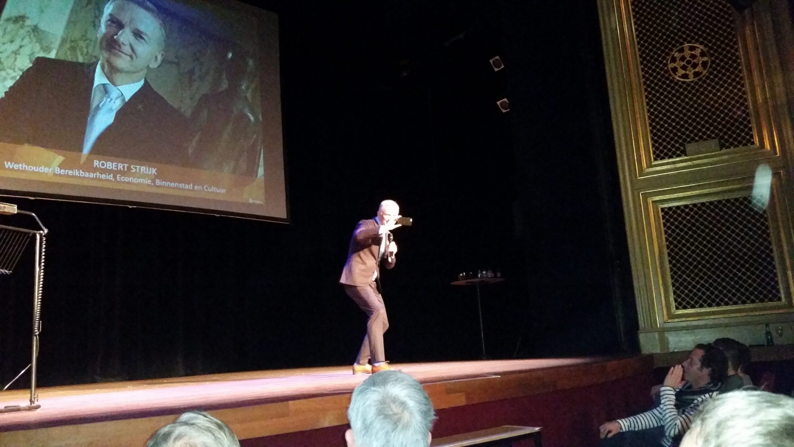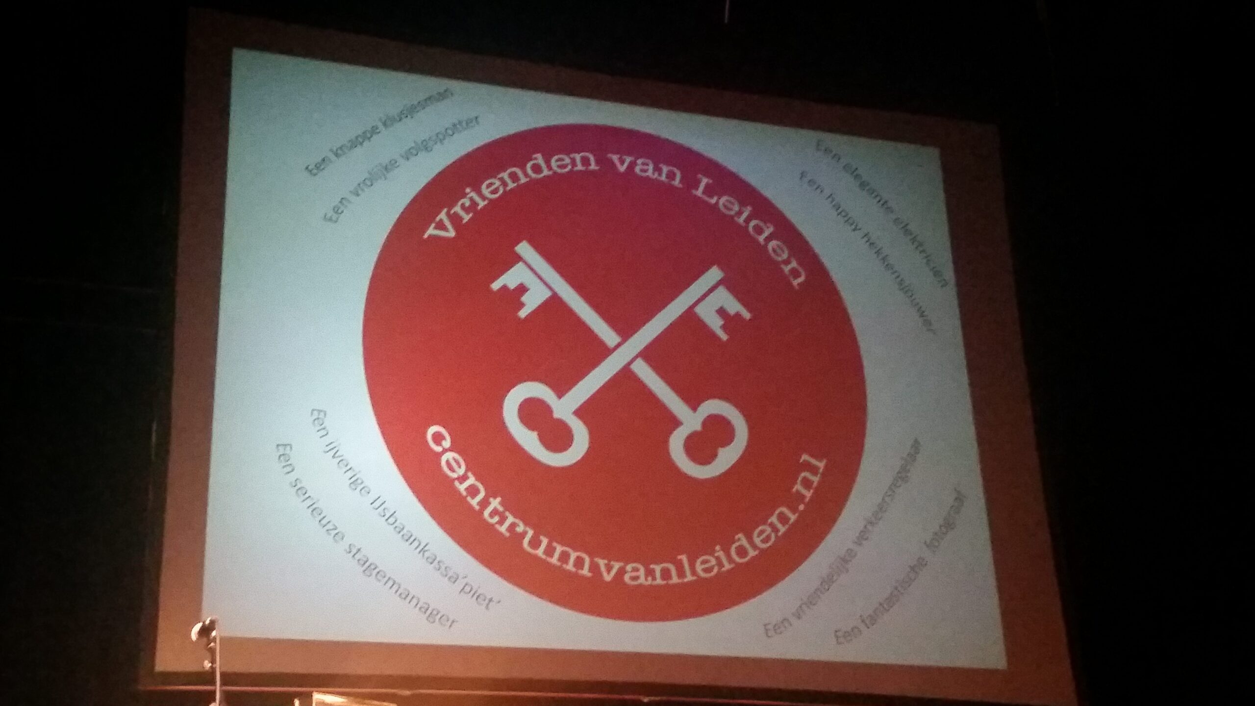 Directeur Nanette Ris van Stadspodia Leiden had de oudste schouwburg van Nederland voor de gelegenheid beschikbaar gesteld. De vrijwilligers kwamen via de artiesteningang binnen. Dat had een speciale reden. Zo kwamen ze op het podium van de schouwburg terecht. De plek waar normaal gesproken natuurlijk alle aandacht heengaat.
