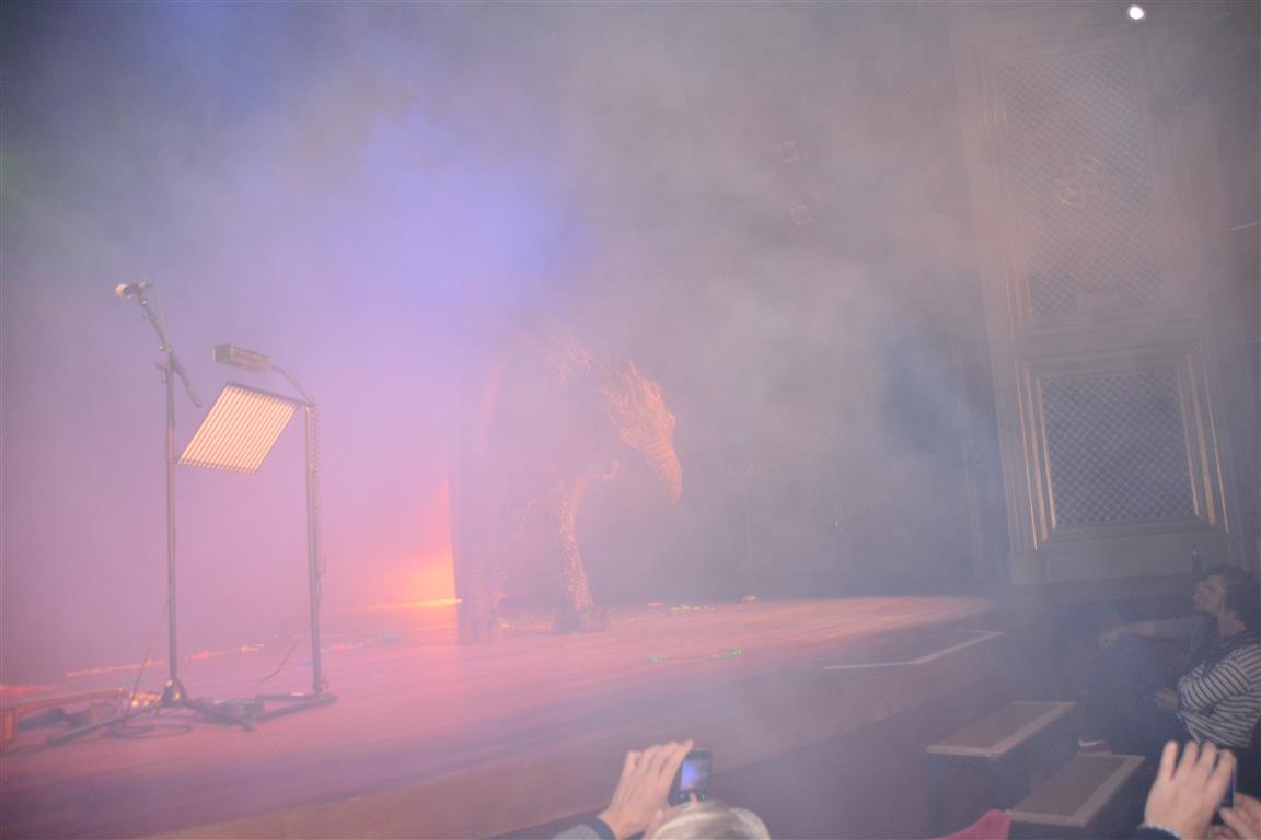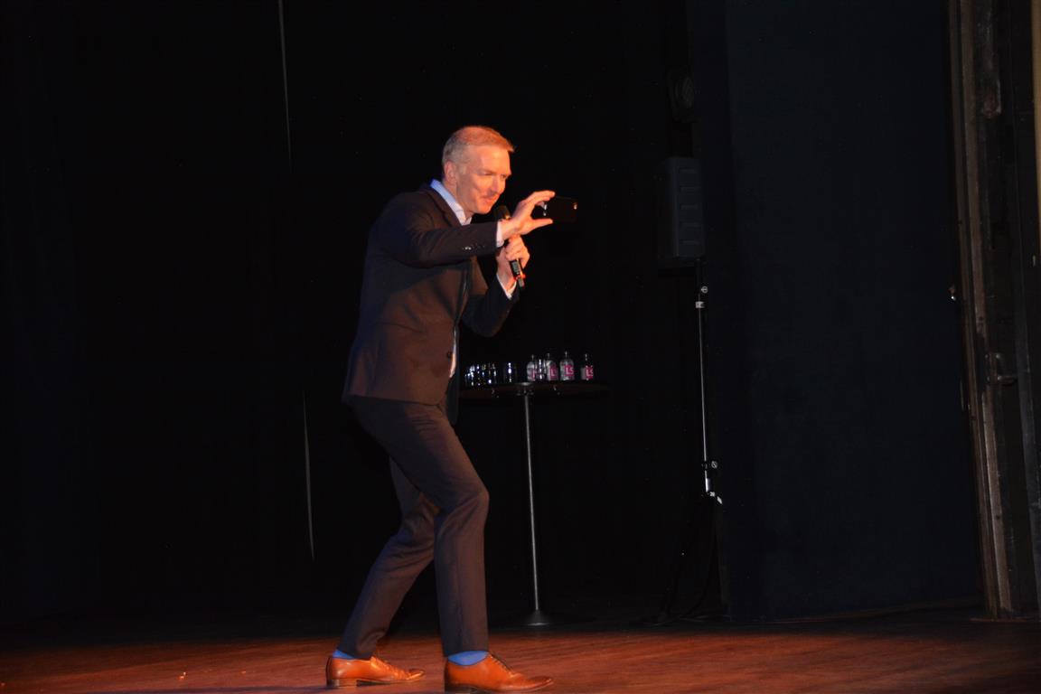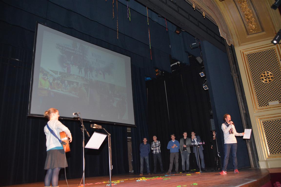 Later namen ze plaats in de zaal en kregen een geïmproviseerde voorstelling te zien waarbij Rian Evers van PS|Theater zingend uit de school klapte met allerlei grappige anekdotes die tijdens de evenementen hadden plaatsgevonden. Bijvoorbeeld de vermissing van de tiende zeehond bij de ijsbaan.