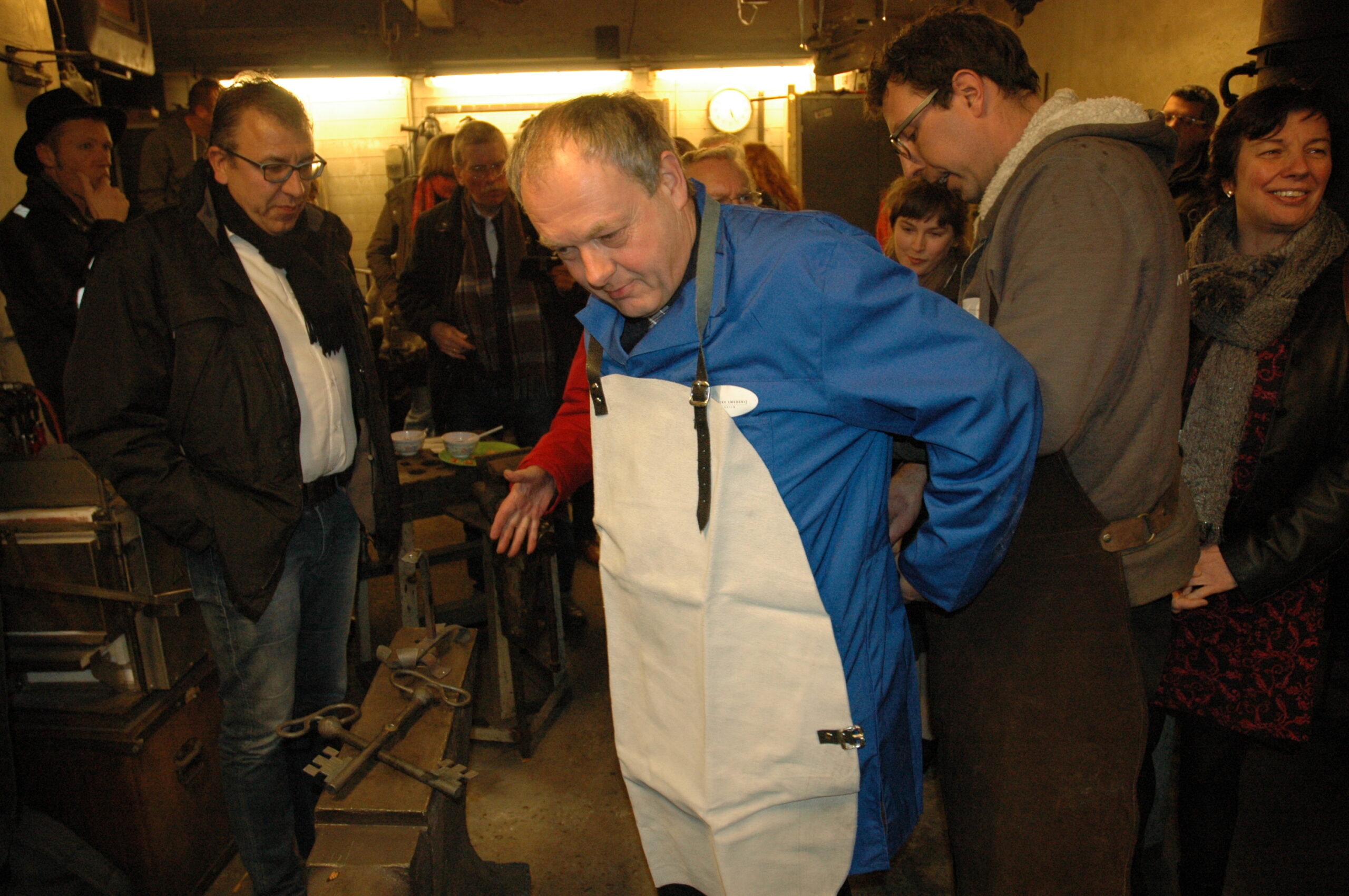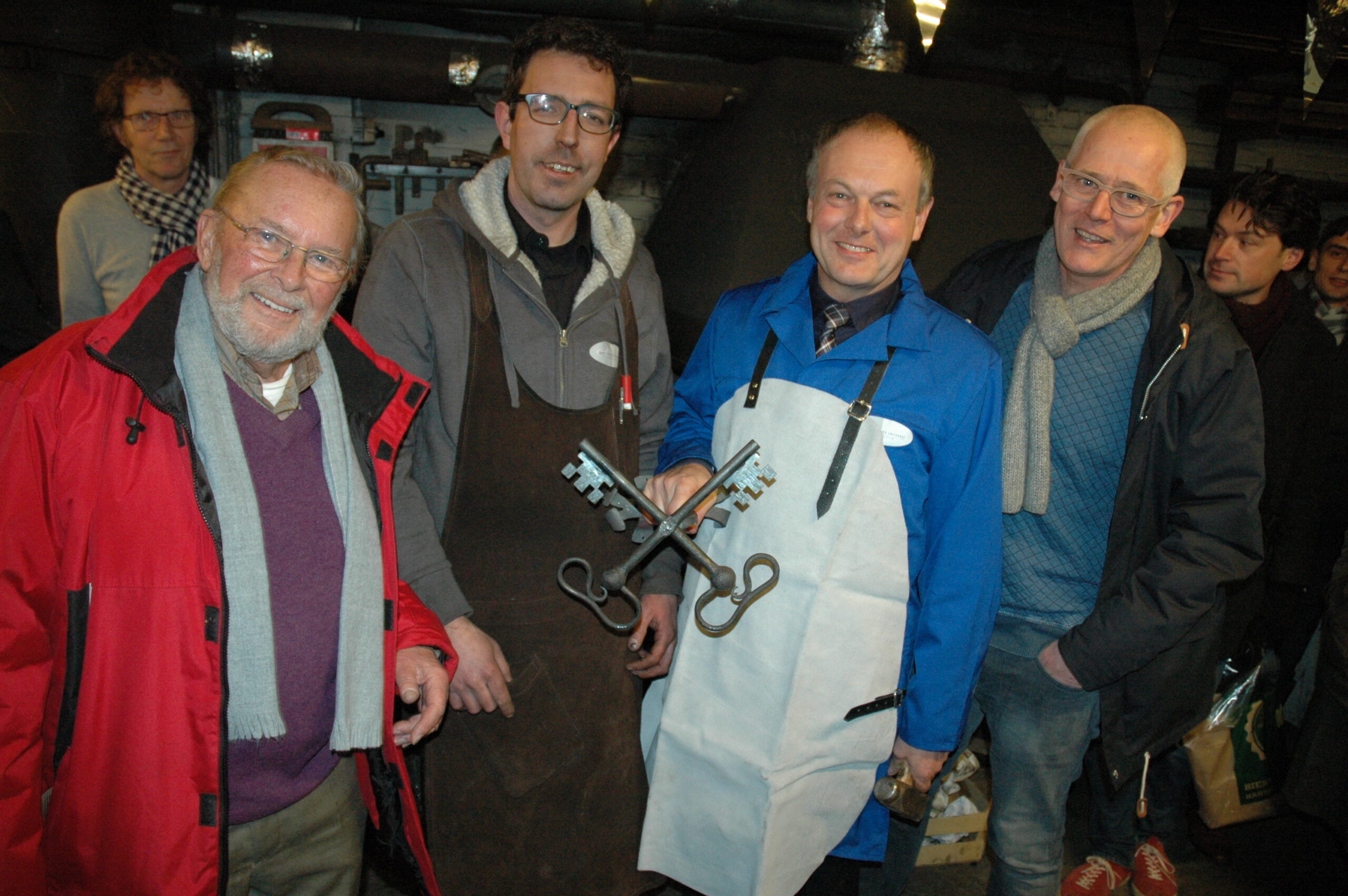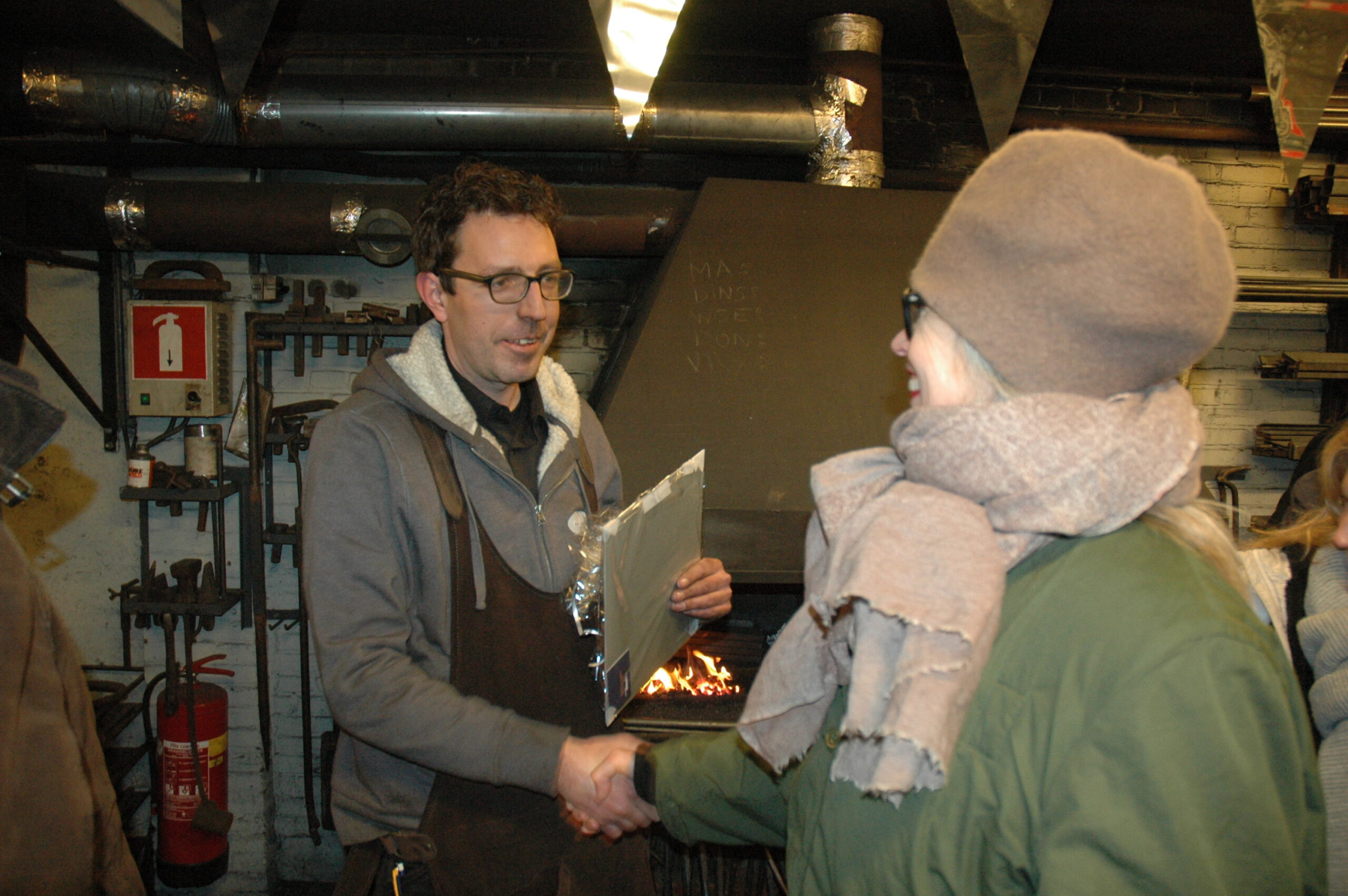 Het smidsvuur brandt weer binnen de singels. In Smederij van de Geijn aan de Oude Varkenmarkt is Martijn van den Berg sinds de jaarwisseling aan het werk. Vrijdag was de officiële opening. Die werd verricht door smidszoon Henri Lenferink.