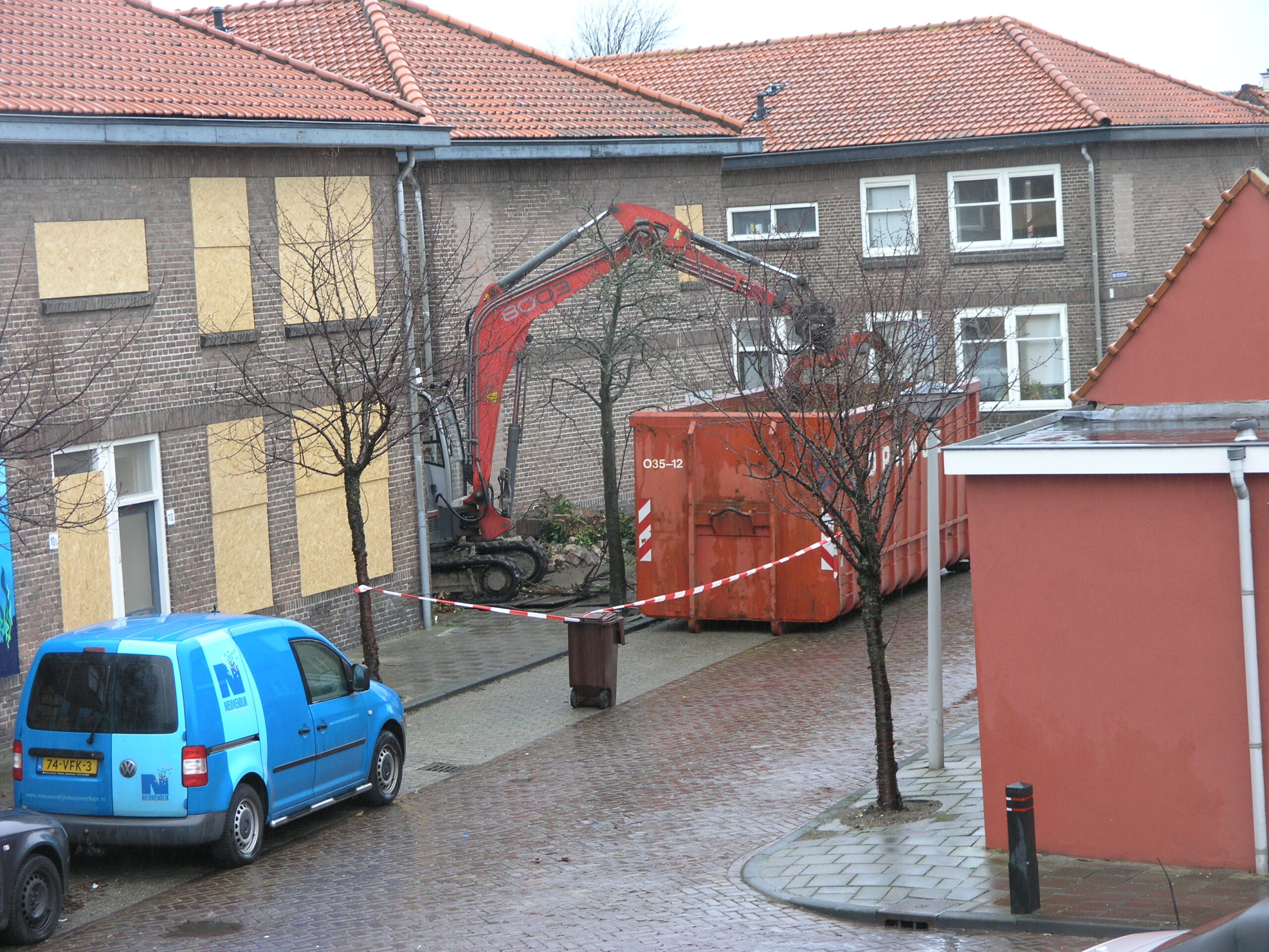 De sloop van een woningblok van 24 huizen in de Zeeheldenbuurt moet in maart en april gaan plaatsvinden; de voorbereidingen zijn in volle gang. De ruiten en deuren van de huizen in het blok tussen de Evertsenstraat, Oosterstraat en Van Speykstraat zijn bijna allemaal dichtgetimmerd. Gisteren en vandaag wordt het groen tussen de huizen weggeruimd. Het blok wordt gesloopt om plaats te maken voor het nieuwe appartementencomplex ‘De Oosterhof’, dat Portaal gaat bouwen.