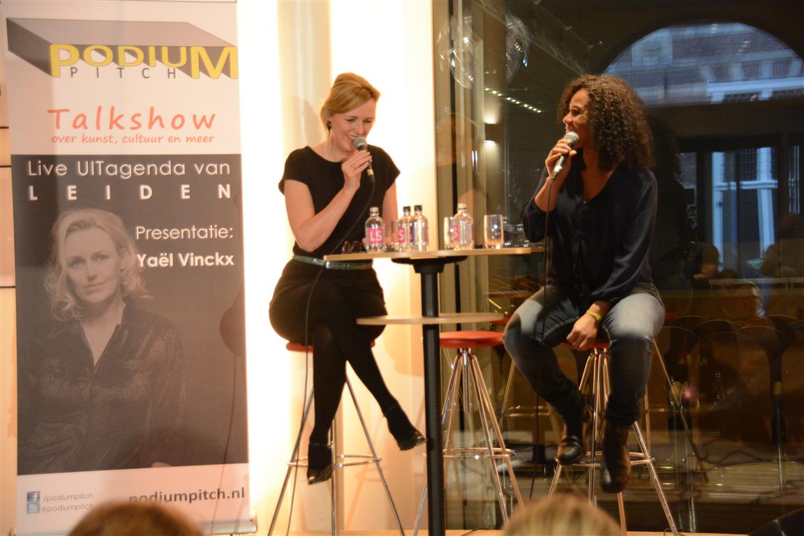 Ook Leiden is niet ontkomen aan de opmars van talkshow-achtigen. Voor wie wil, is er ruim aanbod. Podium Pitch is een talkshow die zich richt op podiumkunsten, van bekende namen tot minder bekende. Talkshow-host en initiator Yaël Vinckx is “er mee begonnen toen de bezuinigingen op kunst en cultuur kwamen en ik wilde laten zien wat nog wél mogelijk is”. Maar verder “omdat we het leuk vinden”. En dus kon Leiden zondag 7 februari in de foyer van de Stadsgehoorzaal genieten van gesprekken over theater (Berg&Bos), over cabaret (Martijn Kardol) en muziek (Lilian Vieira). Uiteraard speelden die ook allemaal fragmenten uit hun voorstellingen.