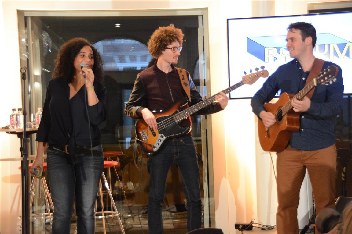 Ze is “al meer dan de helft van m’n leven in Nederland”. Ze kwam 26 jaar geleden aan. Ze is vijftig! Maar op het podium staat een jonge vrouw, met een stem en een temperament die niet lijken overeen te komen met die leeftijd. Toch is dat wat Lilian Vieira is. “Samba-soul jaren ’70” noemt zij de stijl; Braziliaanse muziek die ‘authentiek’ is, die “voorbij de clichés gaat, verder dan de plaatjes van billen”. Inderdaad op een heel andere manier aanstekelijk. Eerder betoverend dan meeslepend. Maar wij kregen niet de héle band te horen. Naast ‘onze’ gitaar, bas en zang zijn er ook nog een piano en drums die meespelen. Wie weet, is dat net anders.