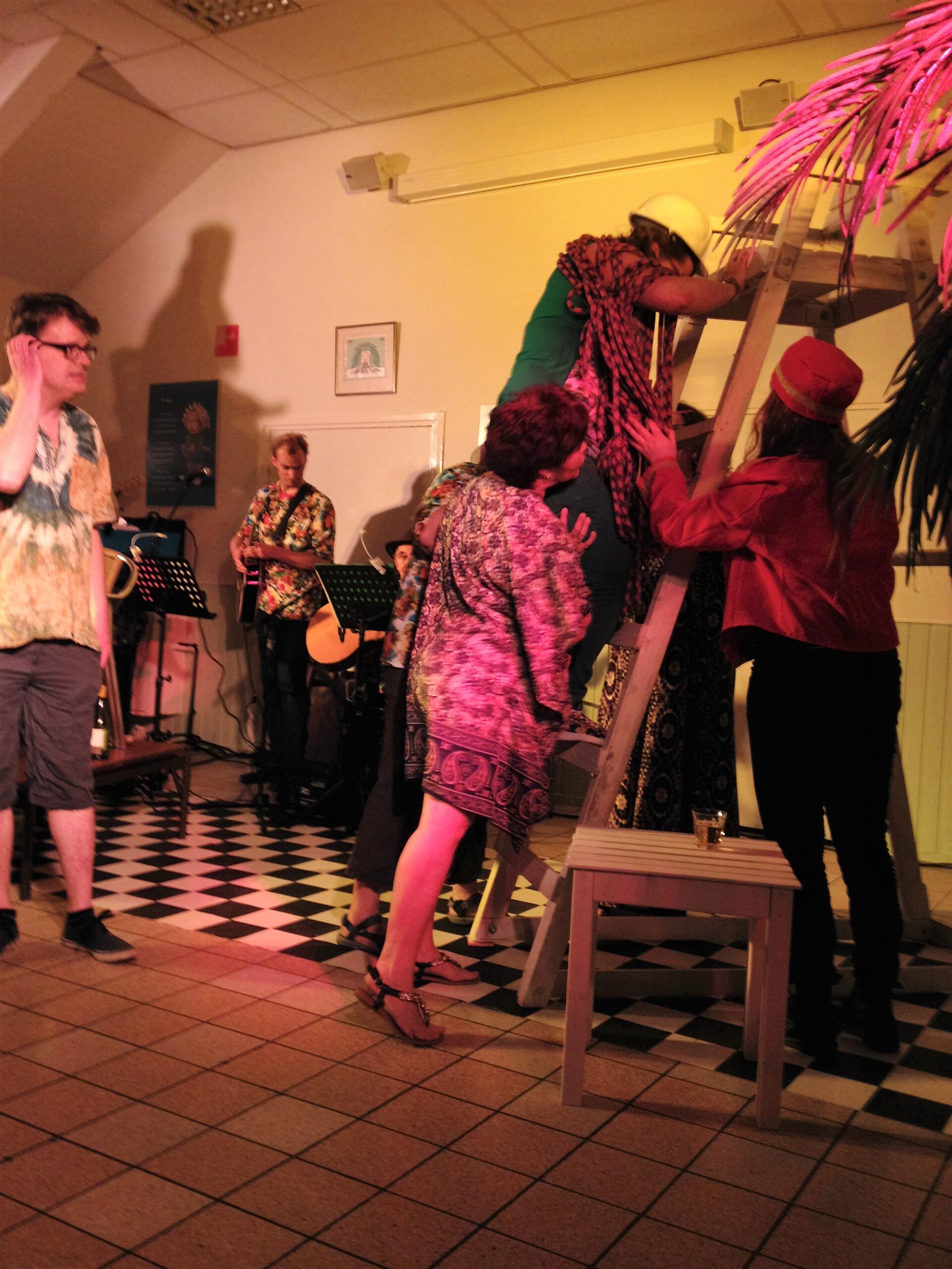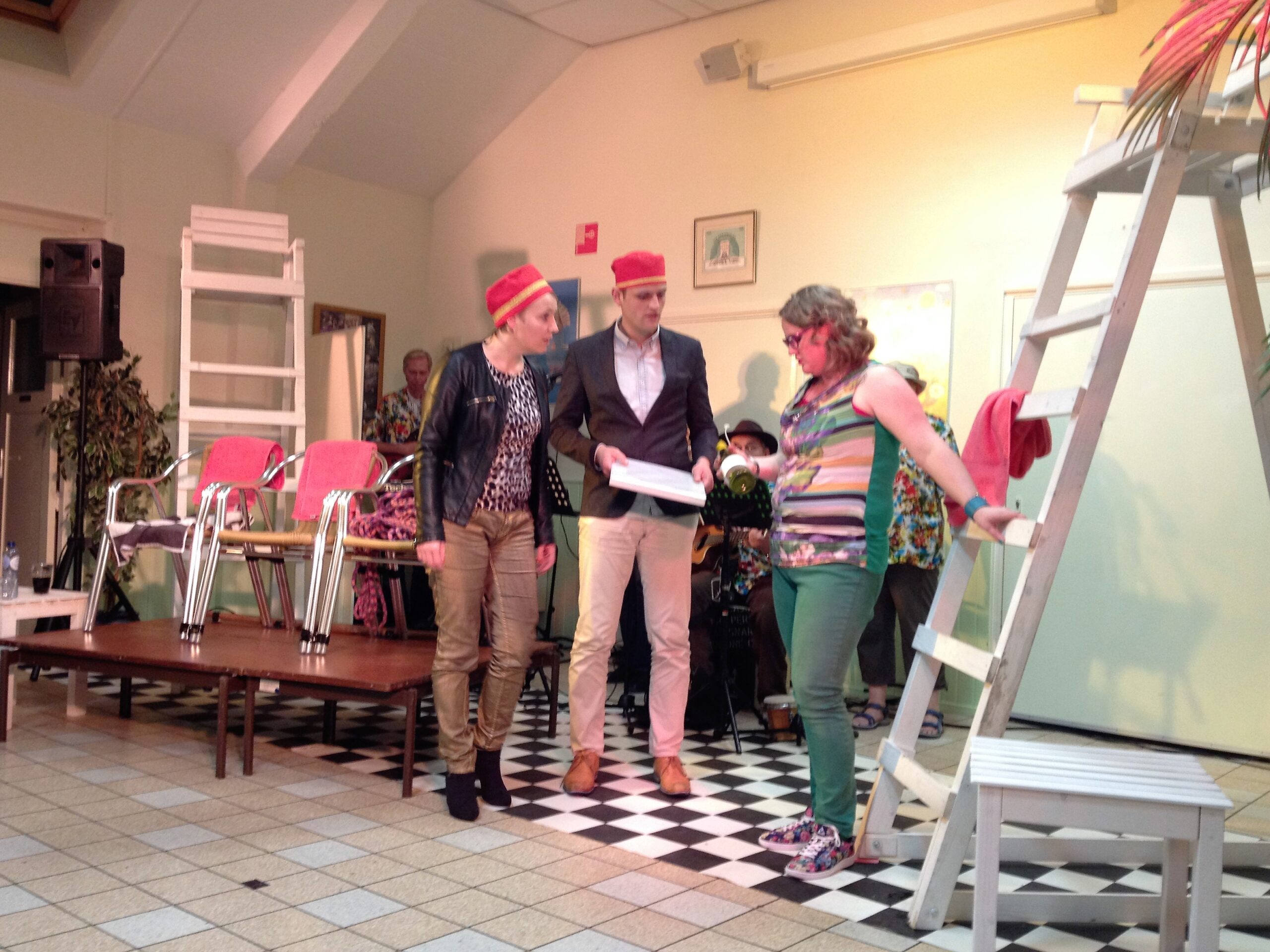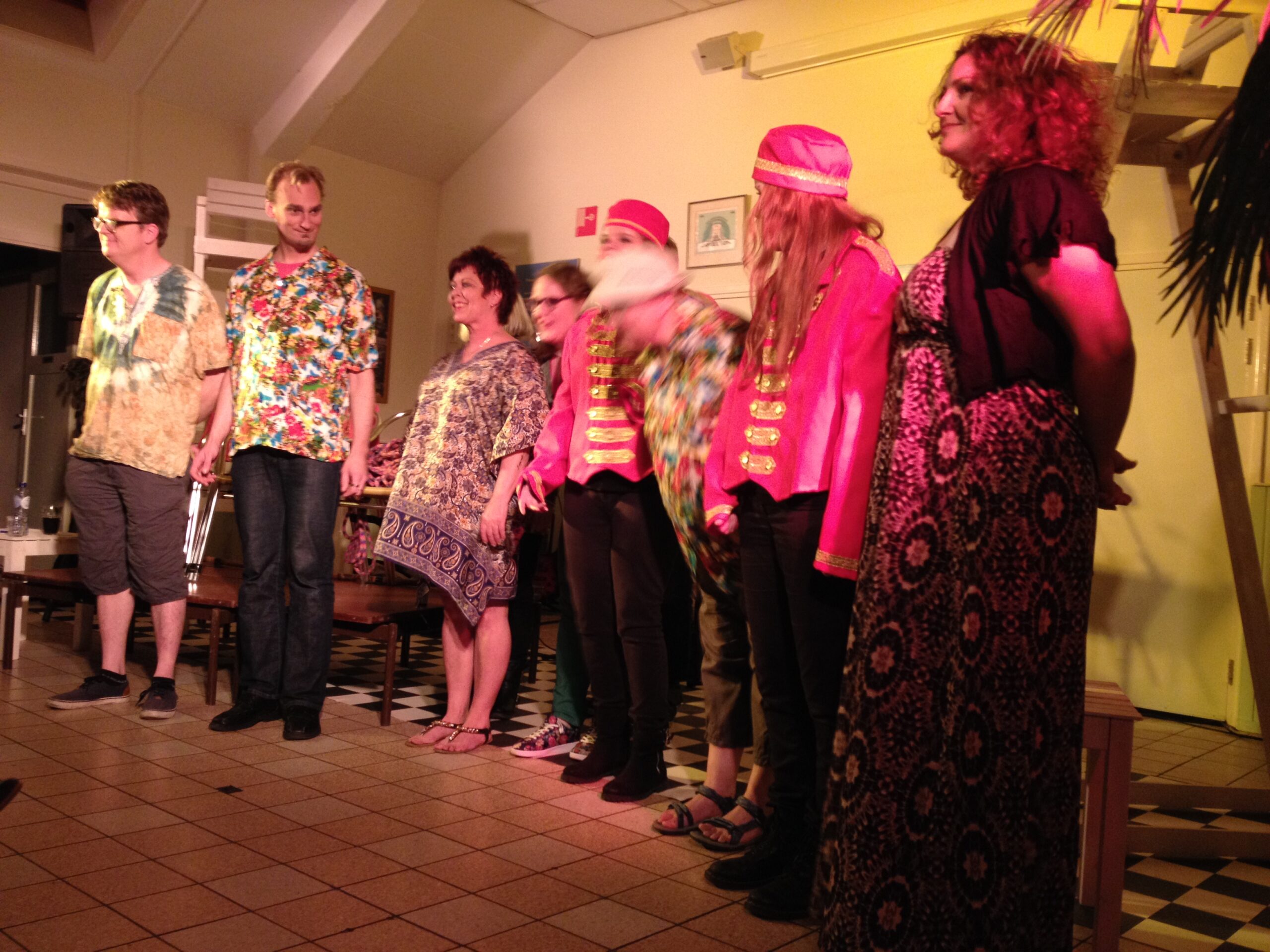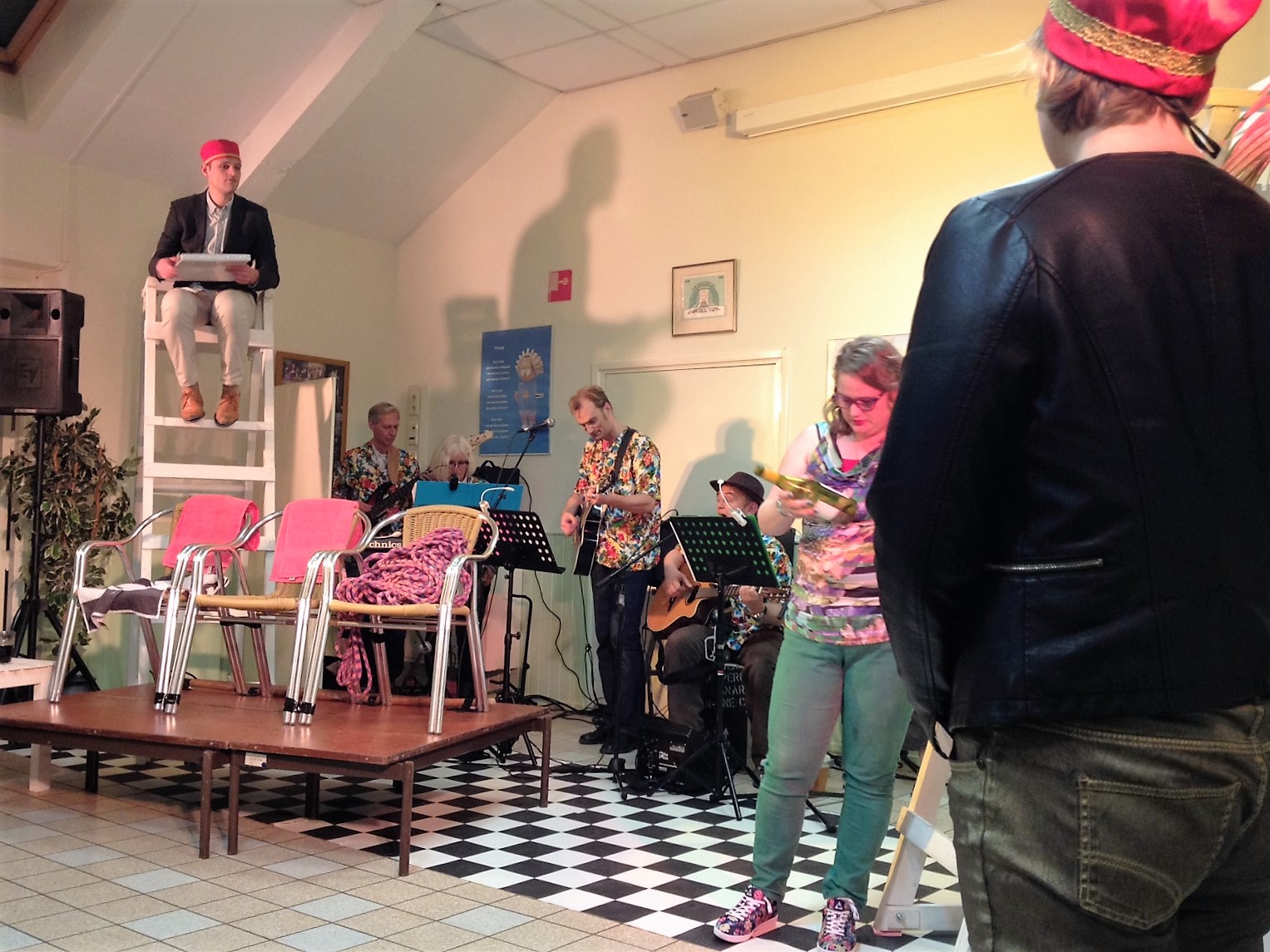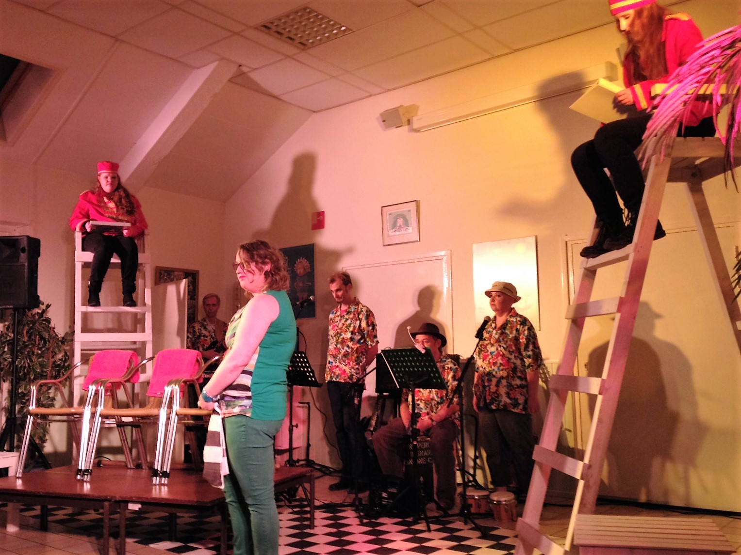 Sonja, zo blijkt, is de initiator van de voorstelling. Via haar kwam niet alleen het onderwerp, en een deel van de spelers, maar ook de band. Dat blijkt 1xdaags te zijn, één van de drie bands van Movens. 1xdaags speelt covers, en goed, waarbij vooral een opvalt. ‘Iedereen loopt met een boog om me heen’ blijkt een bewerking van een nummer van Marco Borsato, maar vooral een tekst die wonderwel bij het thema van de voorstelling past.