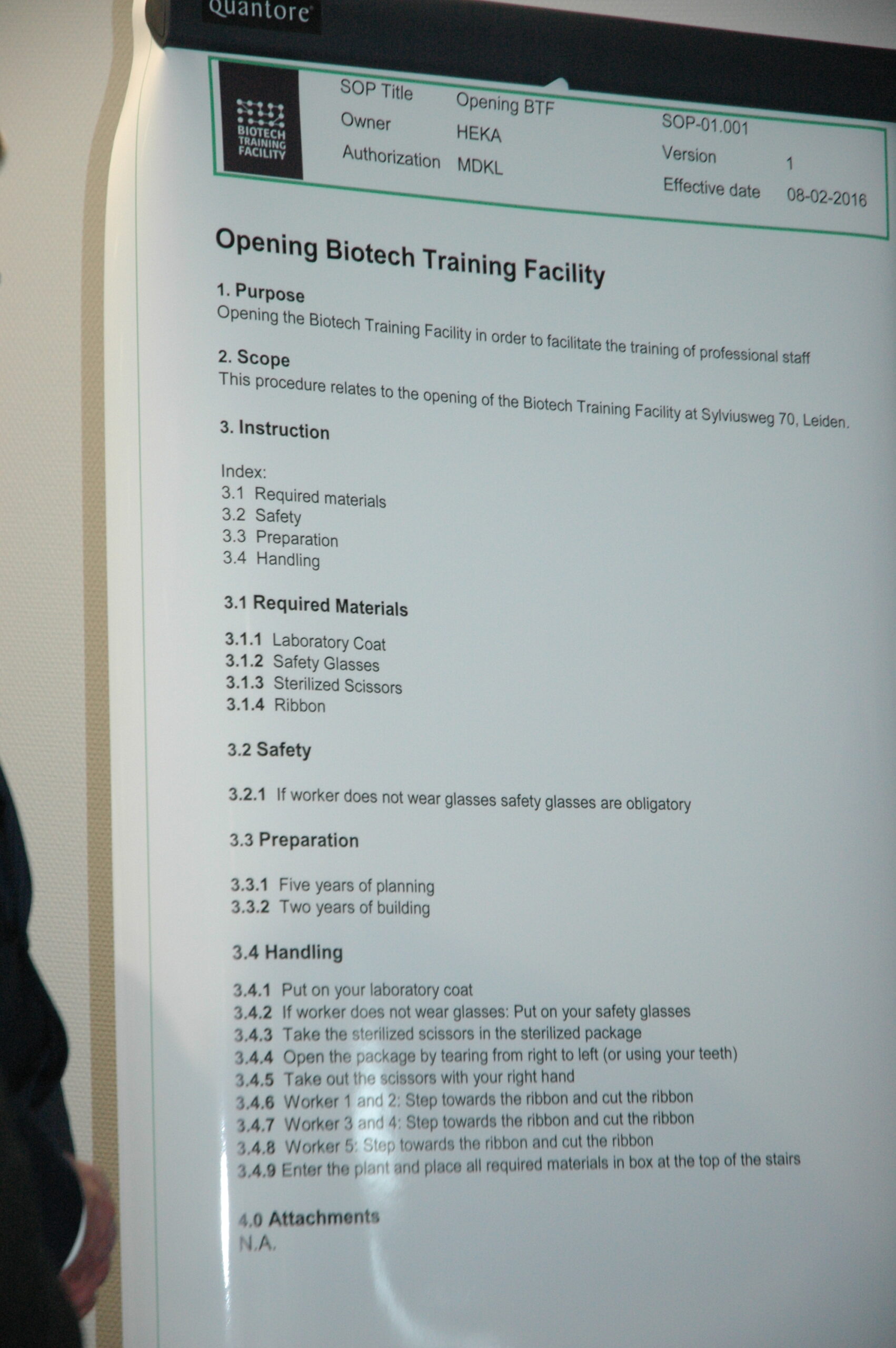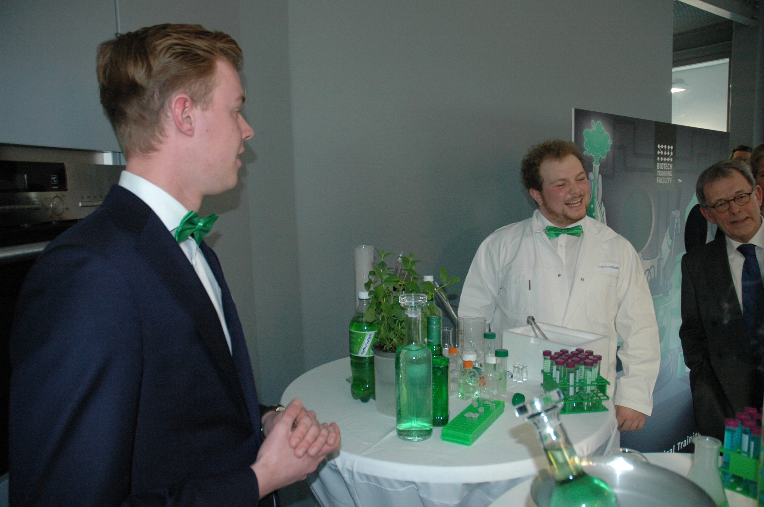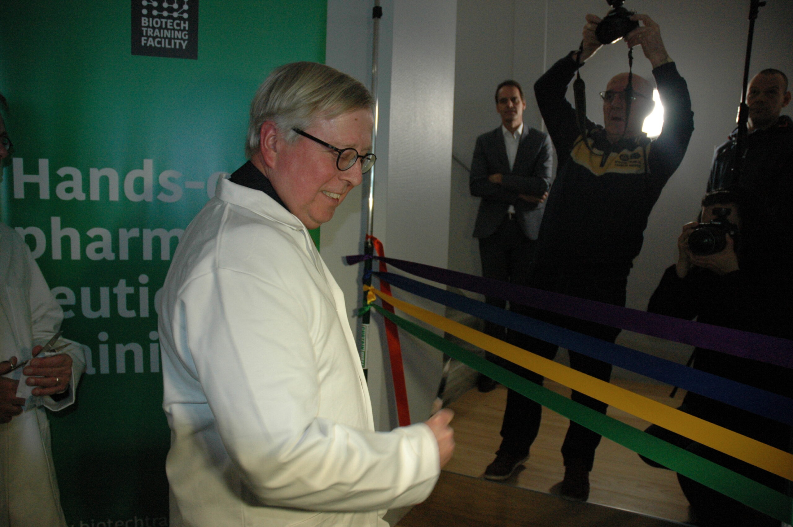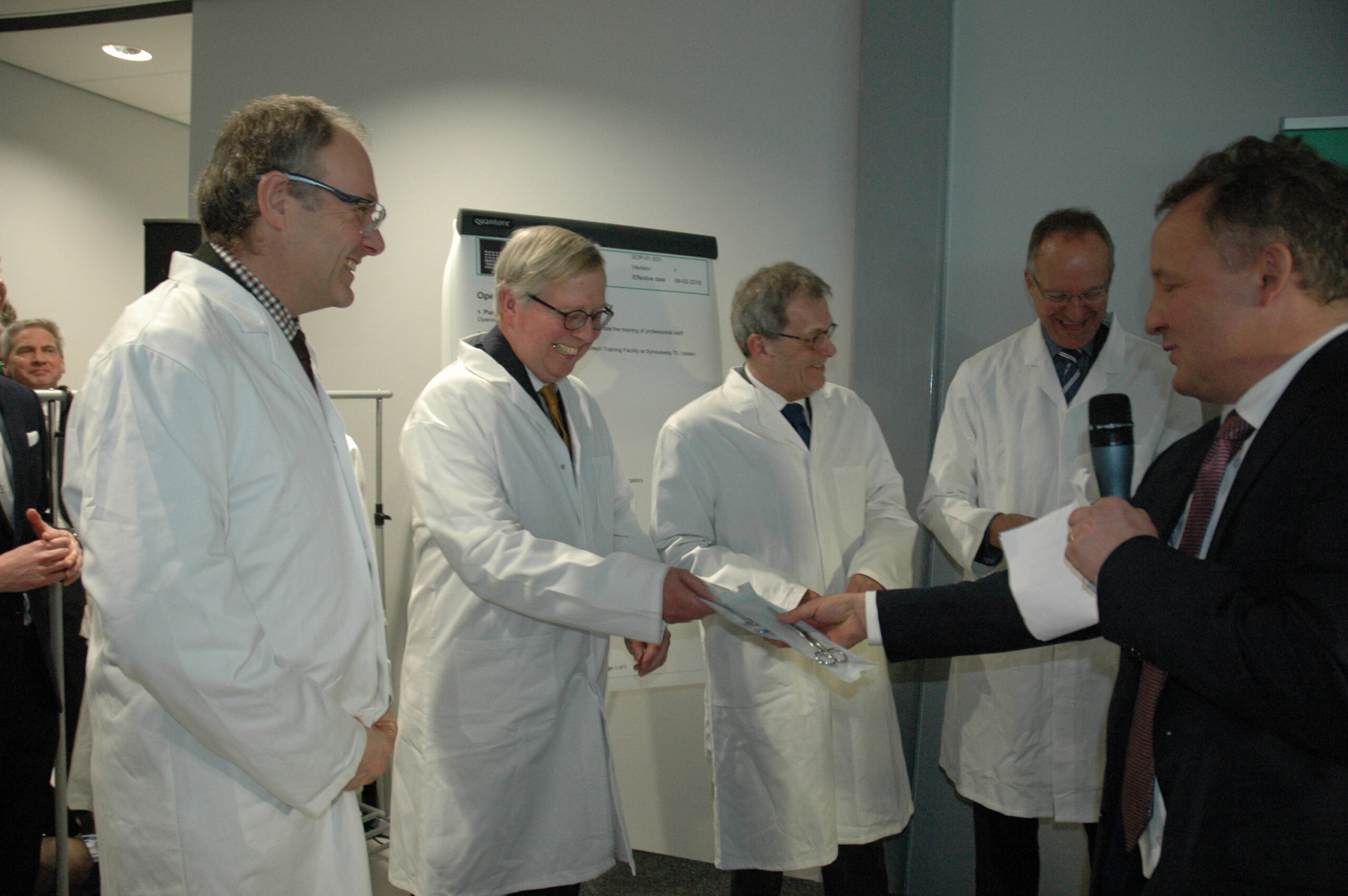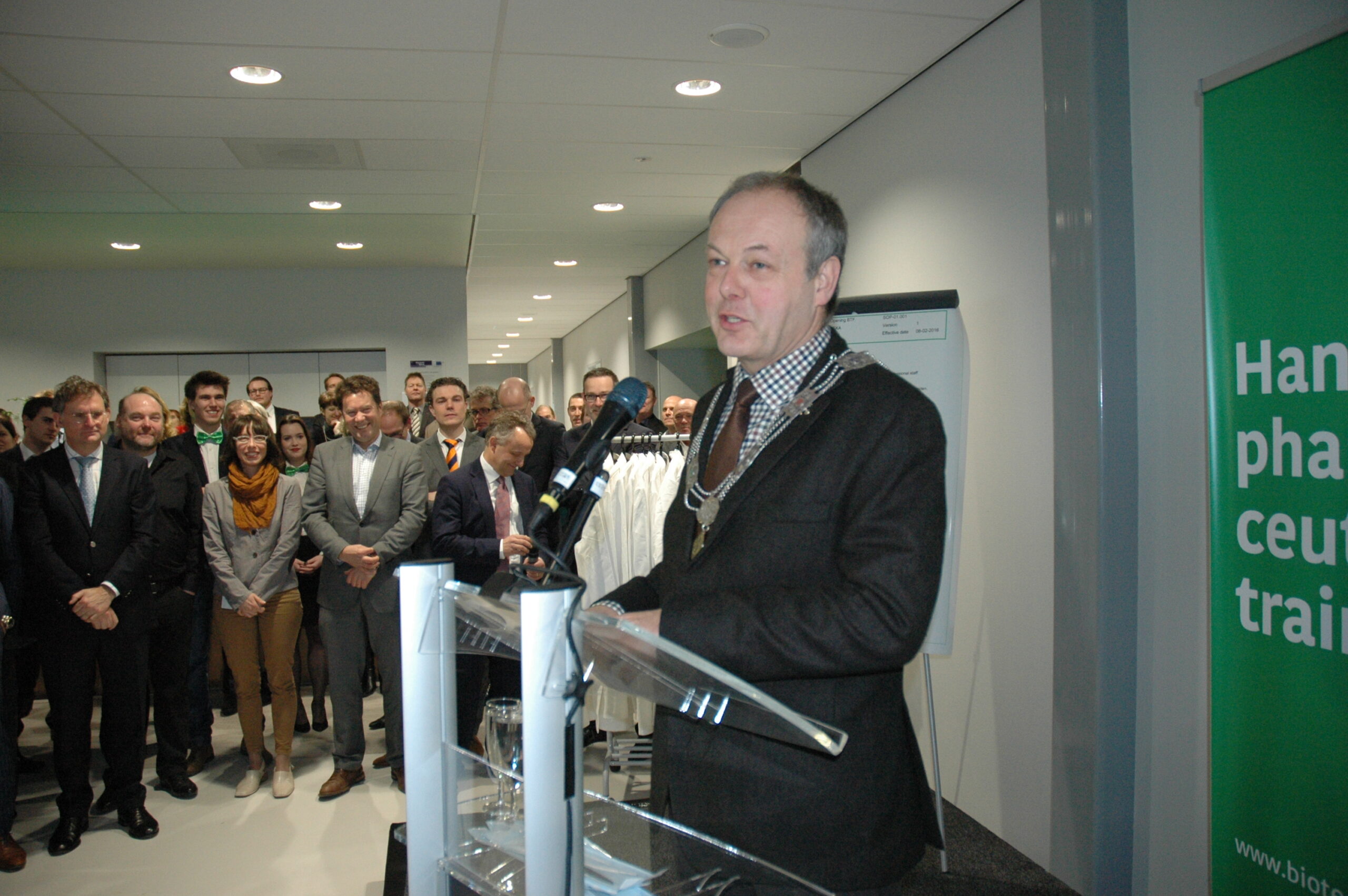 Sinds vandaag staat het enige opleidingscentrum voor laboranten dat Nederland telt in Leiden. Ook in Europa de trainingsfaciliteit uniek. Alleen Ierland heeft ook een dergelijk centrum. Onder enorme belangstelling openden vertegenwoordigers van de vijf initiatiefnemers vanmiddag de Biotech Training Facility. Dat waren Minister Kamp van Economische Zaken, voorzitter Gerrit Zalm van de Raad van Bestuur van de ABN AMRO Bank, dat het unieke centrum mede financierde, burgemeester Lenferink, vice-voorzitter Willem te Beest van de universiteit Leiden en voorzitter Harry Flore van de Ondernemersvereniging Bio Science Park.