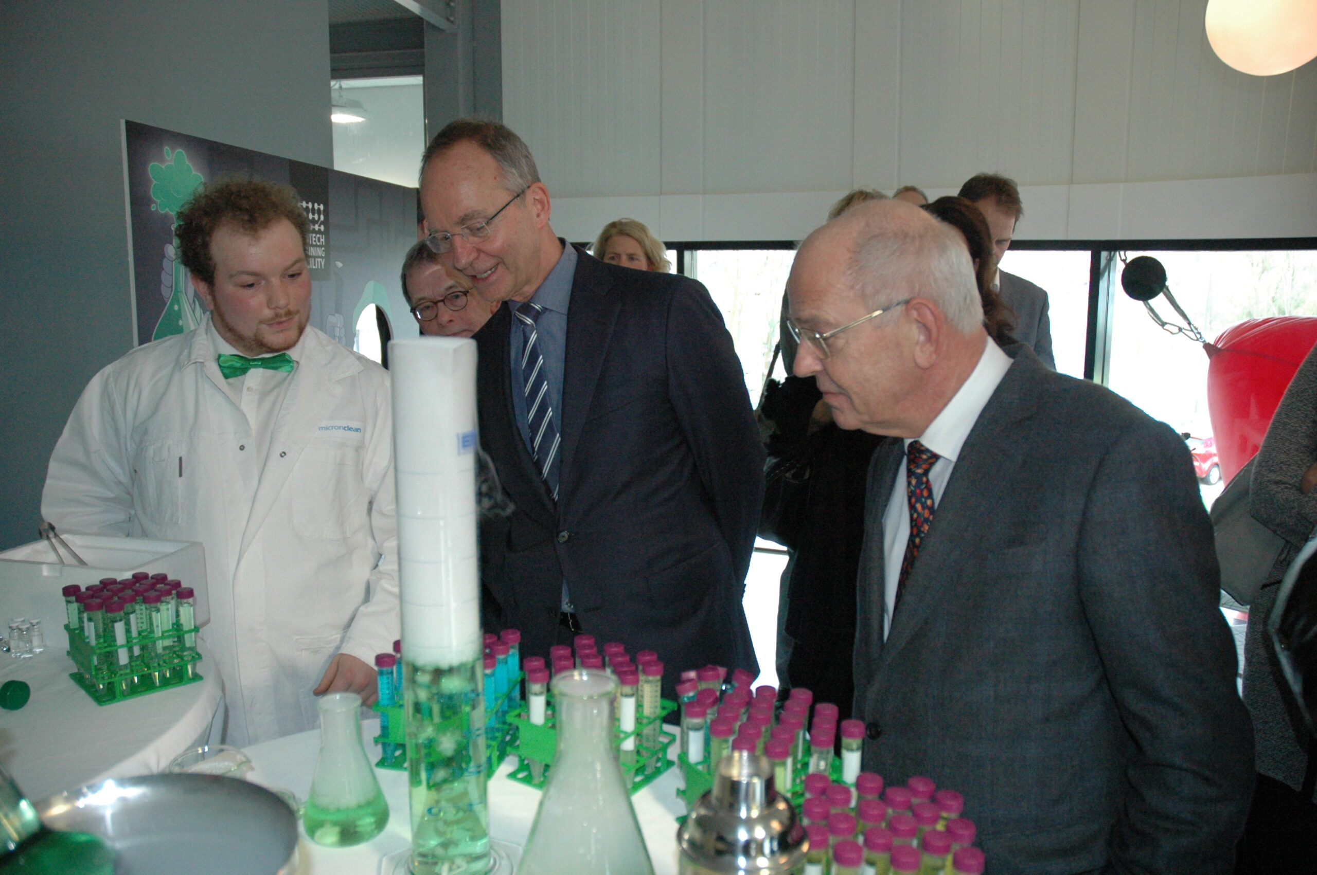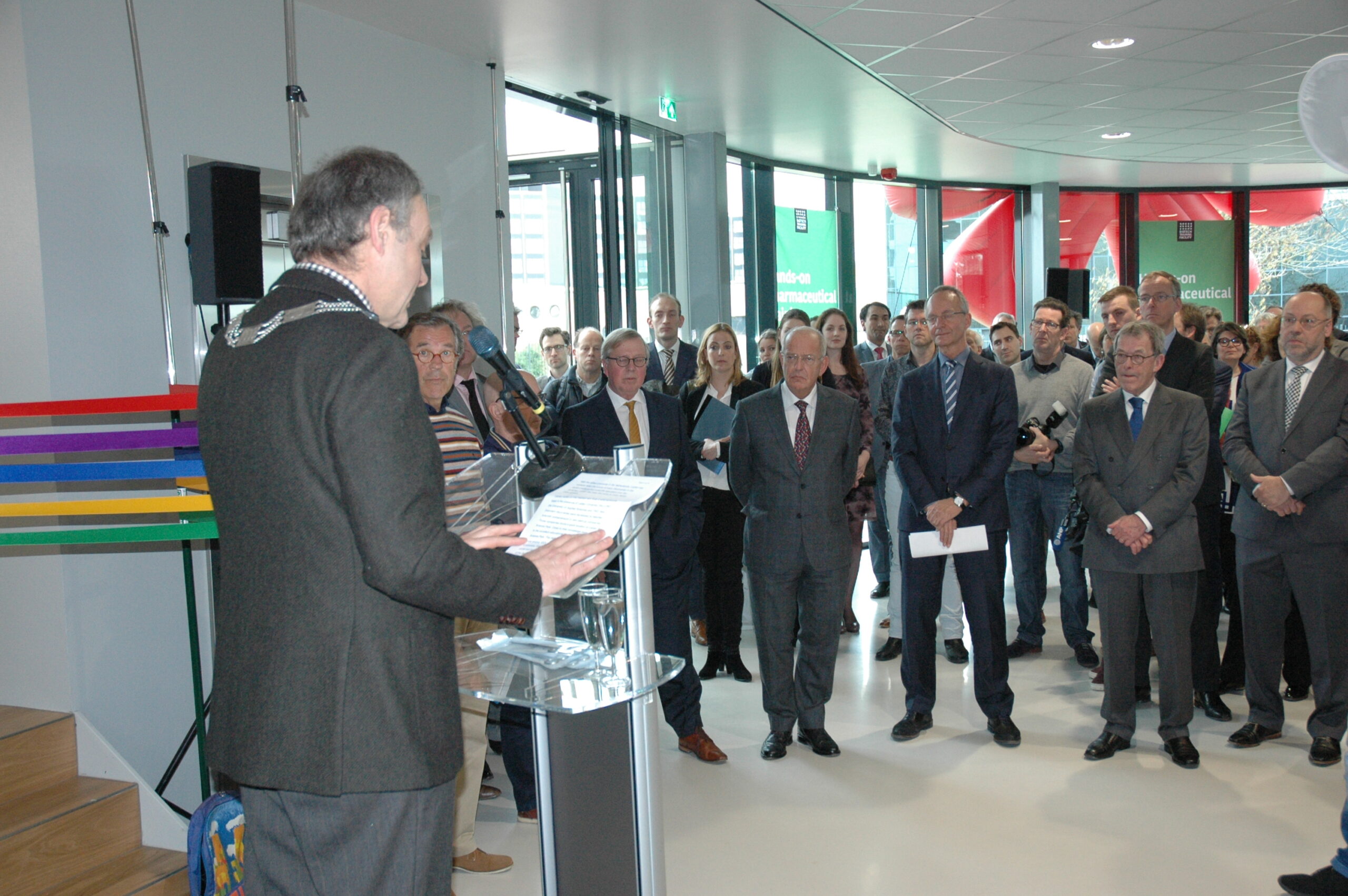 Na toespraken van de burgemeester en de minister en het knippen van maar liefst vijf gekleurde linten volgde er een korte rondleiding door het gebouw. Aansluitend maakte het hele gezelschap per touringcar een rondje over het Bio Science Park. “Vroeger kon dat te voet, nu hebben we een bus nodig”, zo typeerde burgemeester Lenferink het succes van het LBSP in zijn toespraak.