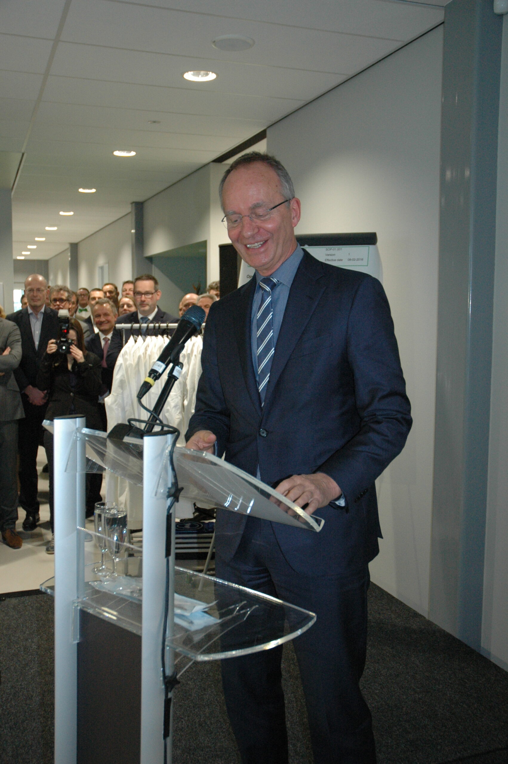 Thijs de Kleer is directeur van het nieuwe trainingscentrum waar laboranten het vak leren en periodiek bijgeschoold worden en certificaten halen die nodig zijn om in de laboratoria te mogen werken. Hij verwacht veel van het nieuwe centrum. De eerste, ook grote, klanten hebben zich al gemeld. Belangstelling zal er niet alleen vanuit Leiden zelf zijn. Hoewel het voor de hand ligt dat veel bedrijven op het Leiden Bio Science Park zelf de weg naar het nieuwe trainingscentrum snel zullen weten te vinden, is het ook voor andere regio’s en zelf landen interessant. “Opleiding in eigen laboratoria is veel duurder voor die bedrijven,” legt wethouder Strijk uit. Dan moet immers de productie stilgelegd worden.”