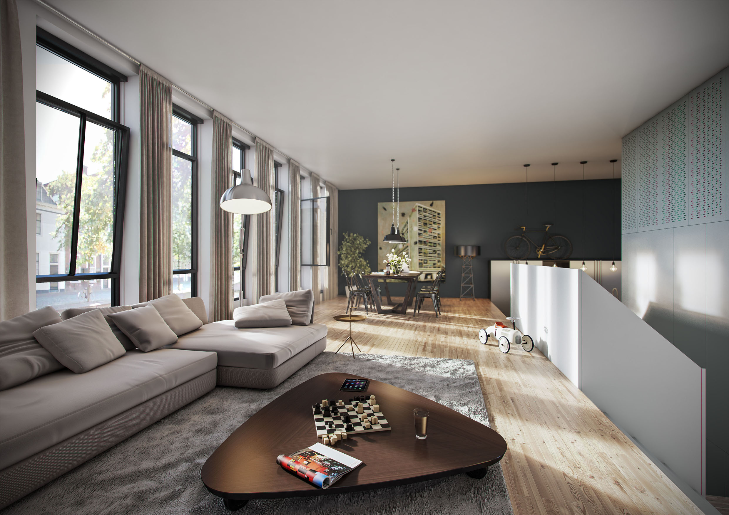 Aan het Rapenburg komen twee appartementen. Een 7 kamerappartement van 317 m2 en een 6 kamer appartement van 194 m2 met lift, dakterras en trappenhuis. Aan de Groenhazengracht worden 14 appartementen gemaakt variërend in oppervlakte van 77 m2 tot 152 m2. Ook de binnentuin wordt in oude glorie hersteld.