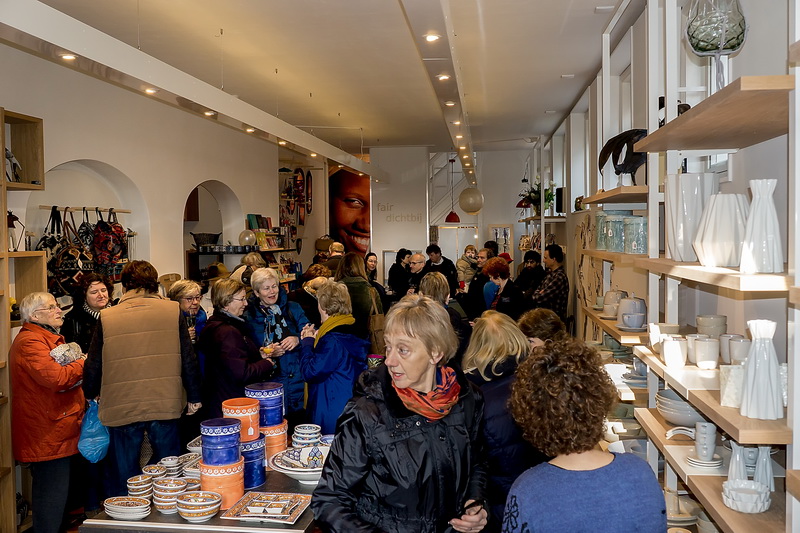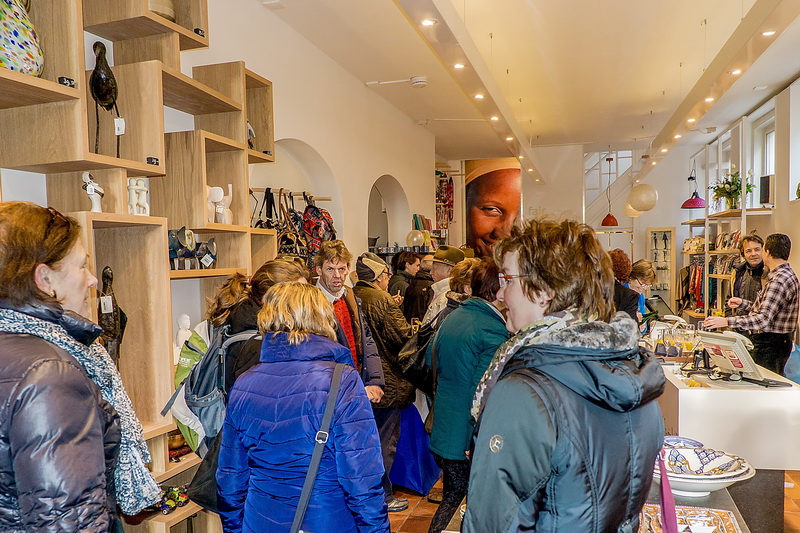 Wethouder Roos van Gelderen heropende zaterdagochtend de Wereldwinkel in de Burchtsteeg. De wereldwinkel werd verbouwd en opende op zaterdag weer haar deuren.
