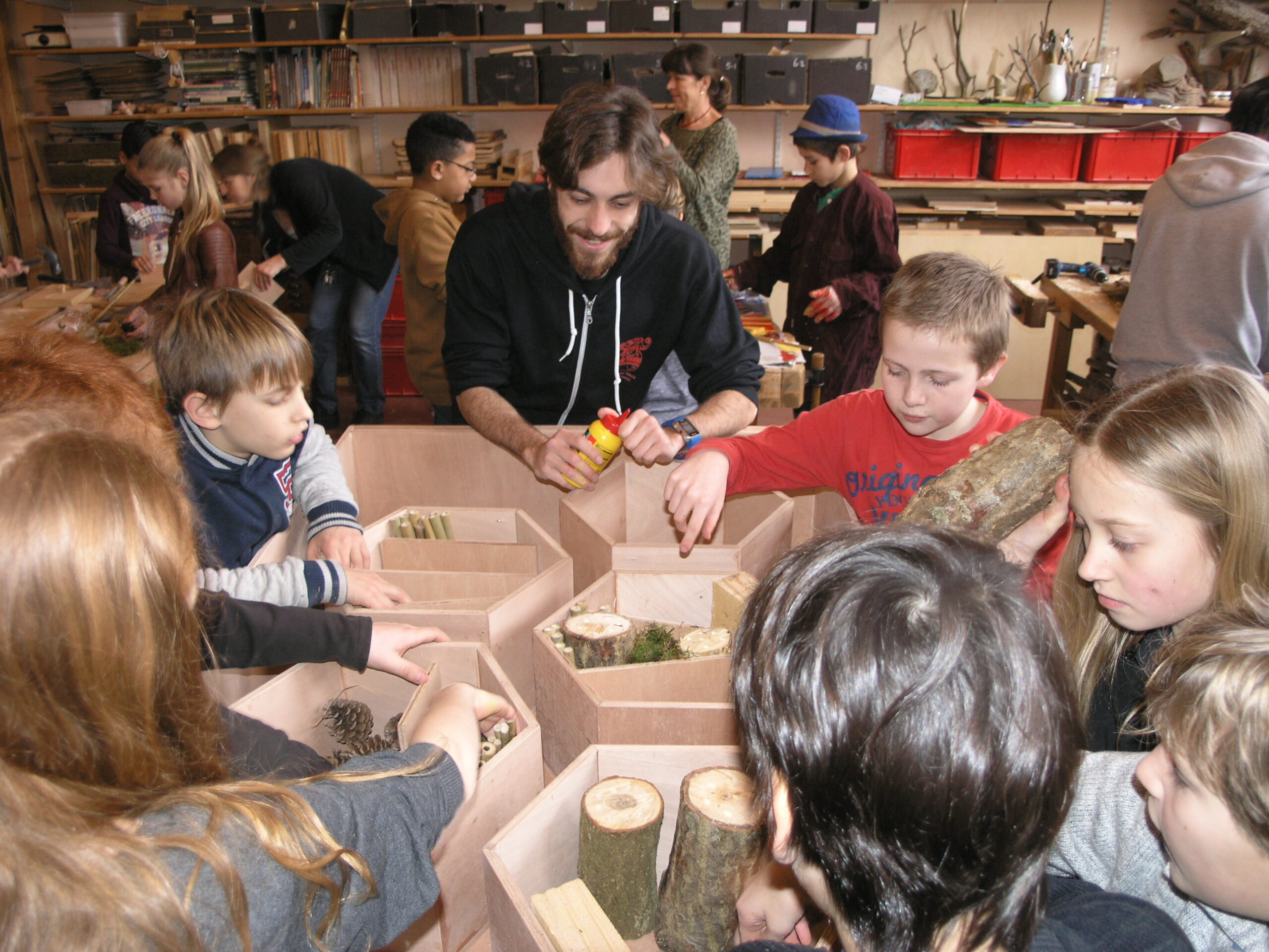 Tijdens de laatste les gingen de leerlingen van de Vrije School aan het werk aan het daadwerkelijke insectenhotel. De leerlingen waren verdeeld in 5 groepen en kregen allemaal hun eigen kamertje dat ze mochten inrichten. Binnenkort wordt het insectenhotel geplaatst op het schoolplein.