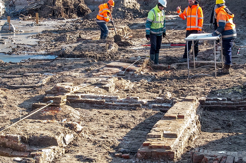Afgelopen maandag zijn archeologen van het bureau IDDS Archeologie begonnen aan een opgraving bij ’t Huis op de Waard aan de Kaarsenmakersstraat. Vorig jaar bleek na onderzoek dat daar resten te vinden zijn van 17e eeuwse bebouwing. Het gaat onder meer om de fundamenten van honderden jaren oude huisjes aan de Oranjegracht en de Waardgracht.
