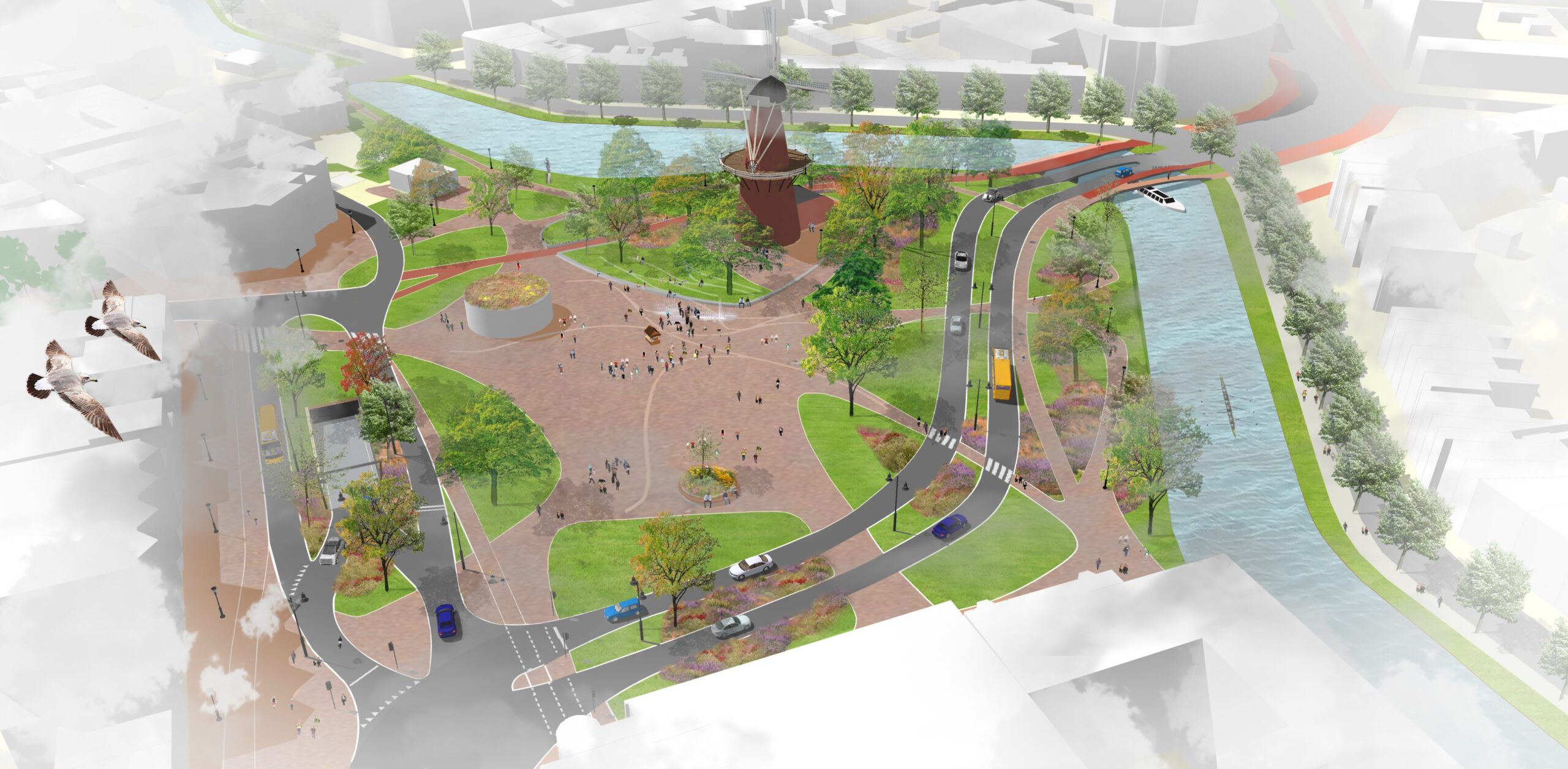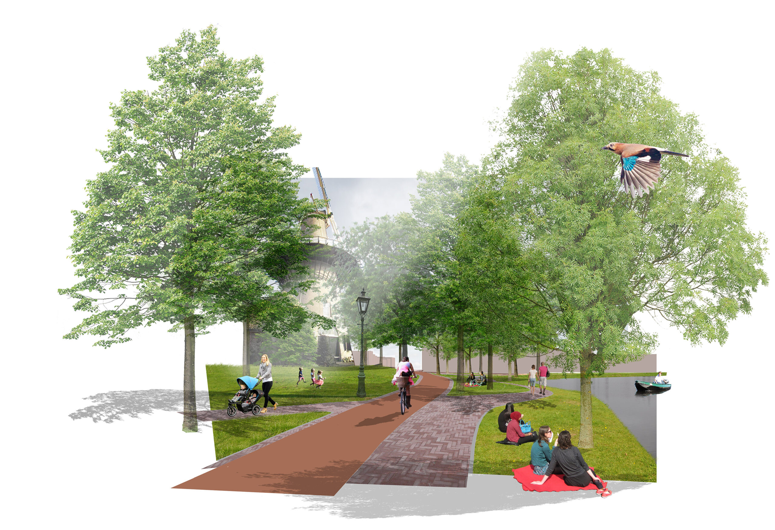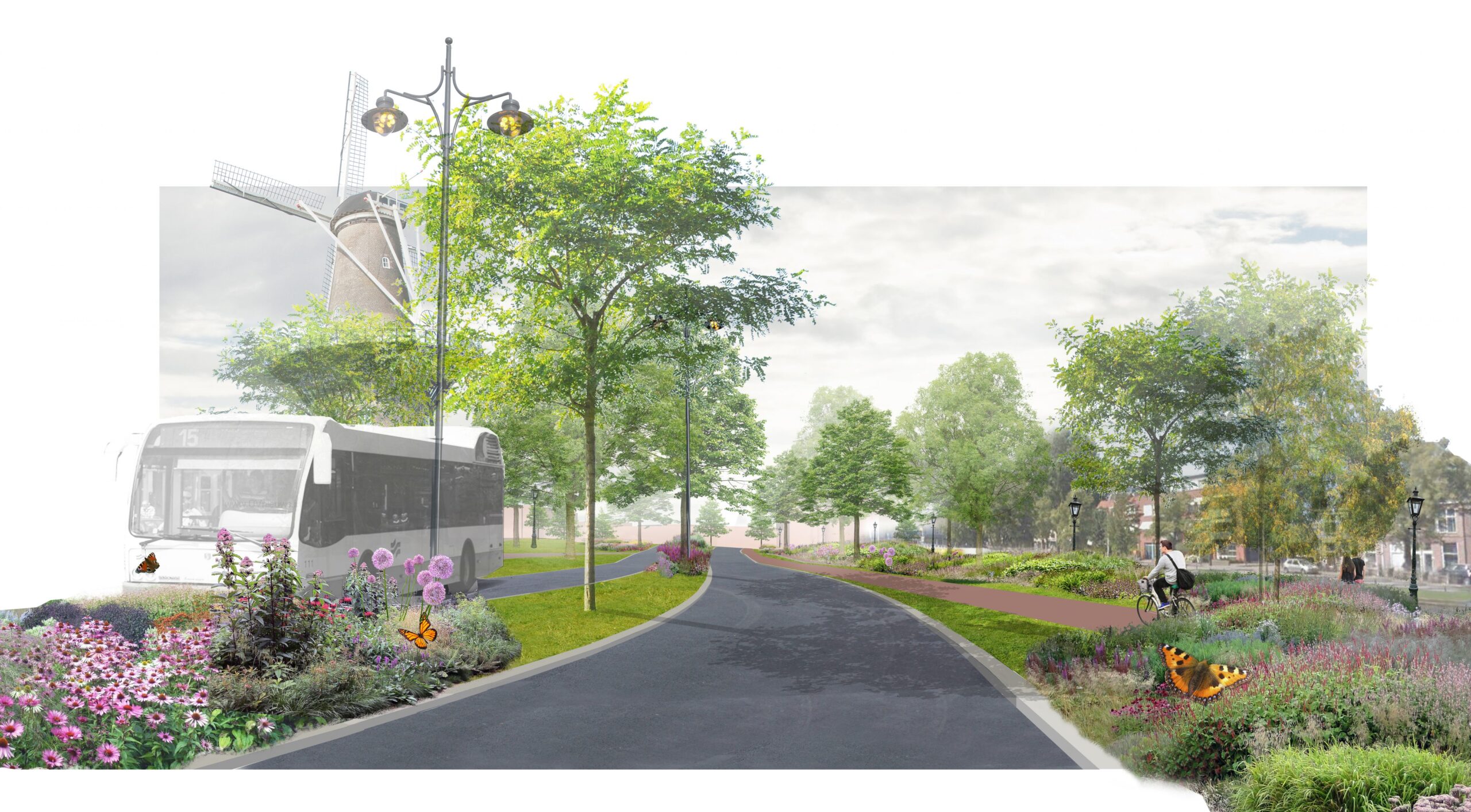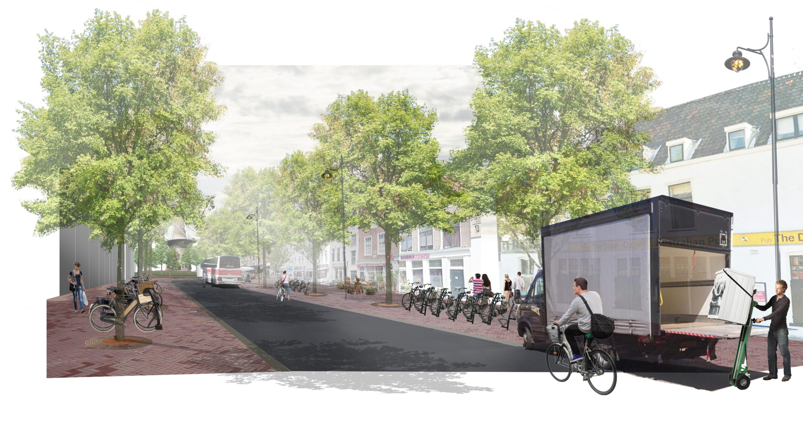 De nieuwe brug krijgt, net als de Molenwerf die door het Lammermarktpark blijft lopen, verschillende losse rijbanen en fietspaden.