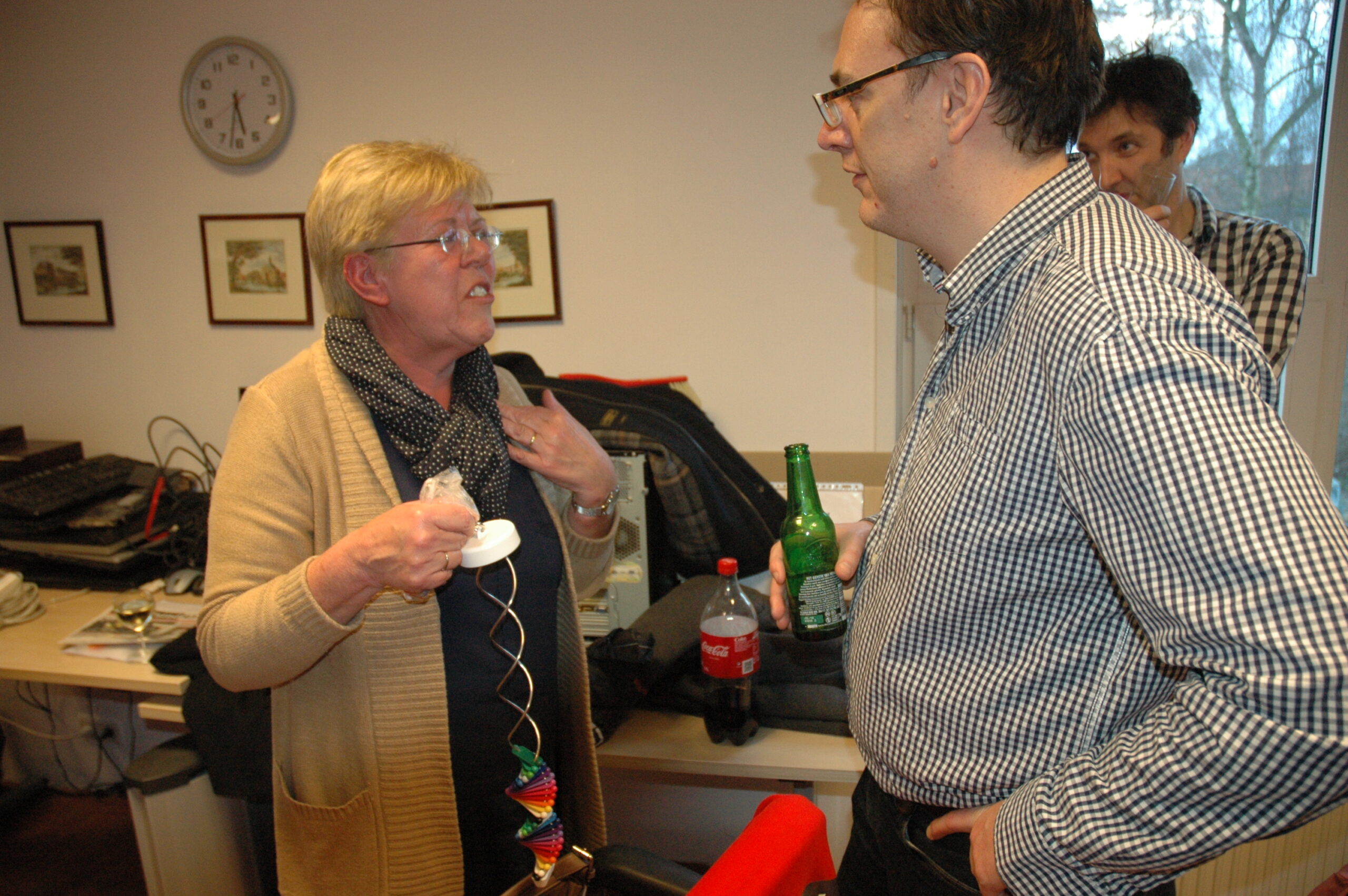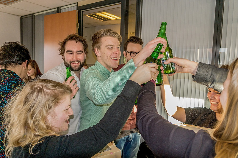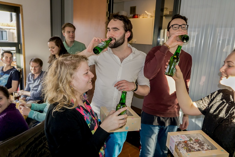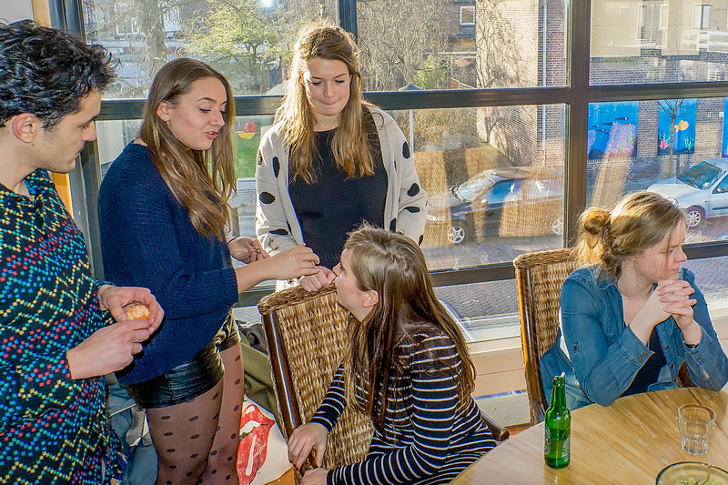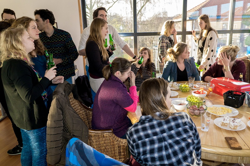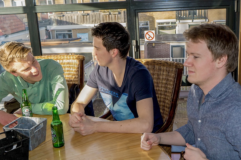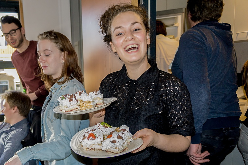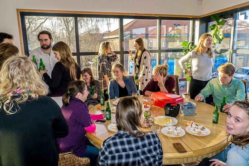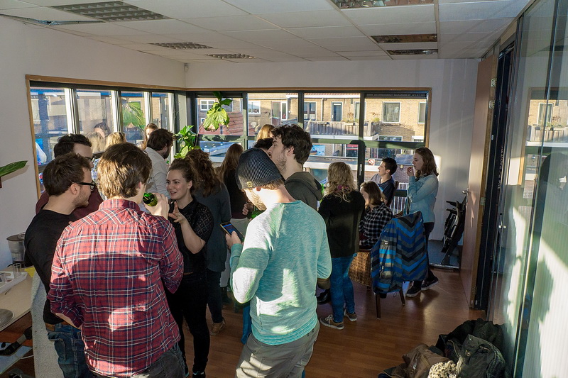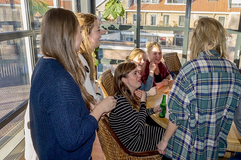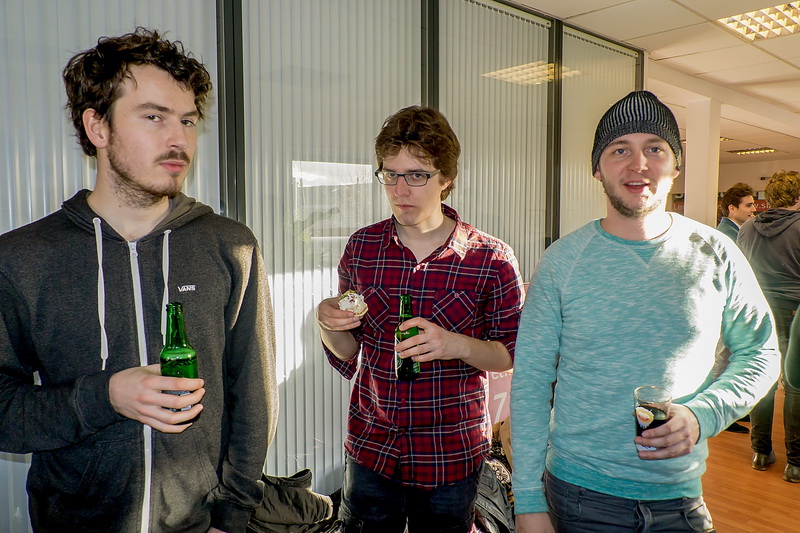 Aan het eind van de week waren de interviews opgenomen en gemonteerd en konden bijna alle studenten relaxen in de redactieruimte van Sleutelstad. Behalve Rick. die moest nog een live interview afnemen, Hieronder een impressie van een bijzondere vrijmibo.