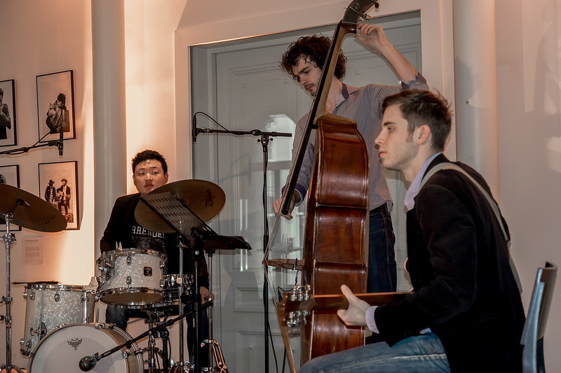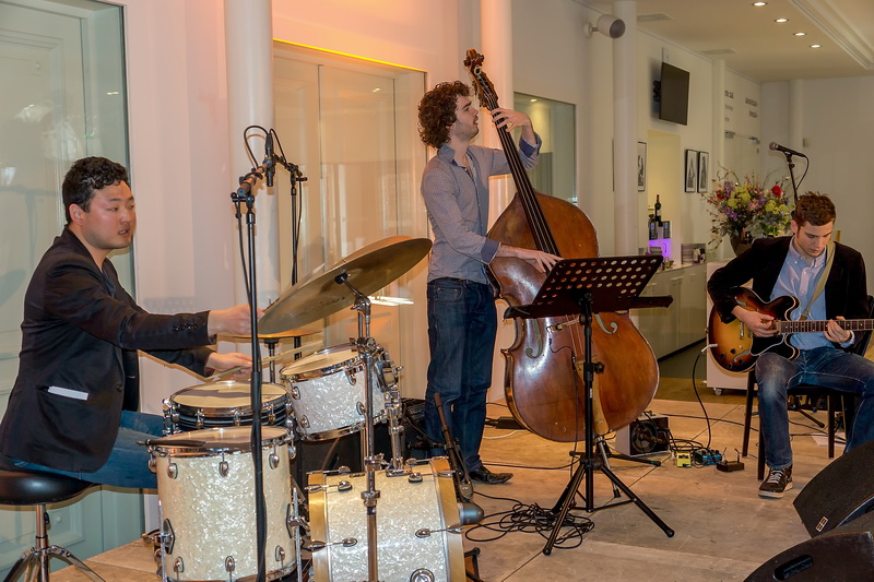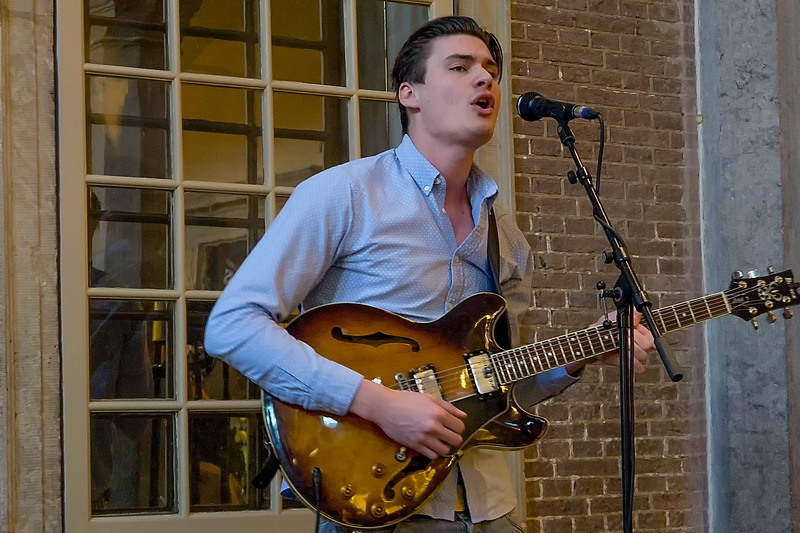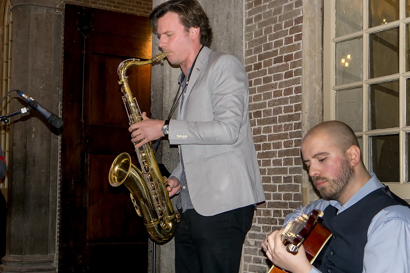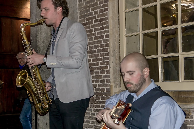 Dominant aanwezig is de jazz in de Stadsgehoorzaal. De foyer daar is geen restaurant, geen café, geen lunchroom-achtige. Het is een foyer. “Een kale bedoening daar, als ik eerlijk mag zijn” volgens een dame die op de Koornbrug naar Brasta La Vista stond te luisteren. Dat mag zo zijn, maar de bands maakten er wel wat van. Zoltan Polgar wordt beschreven in het programma als ‘opkomende getalenteerde jazzgitarist’. Als dat betekent dat hij lekkere jazz speelt met z’n band, dan klopt het als een bus.