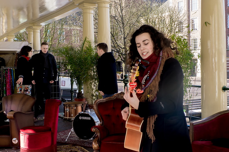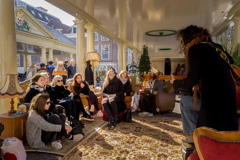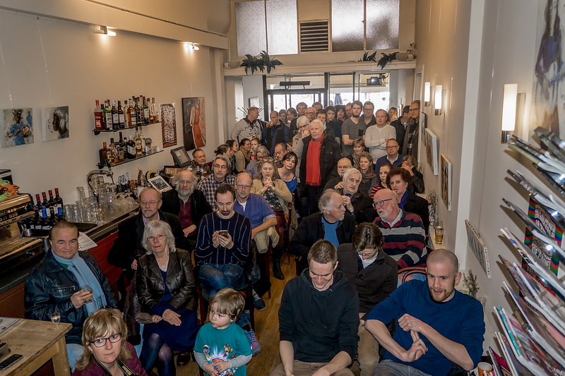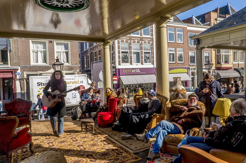 Ook in De Waag is min of meer hetzelfde geluid te horen “Nee, voor extra omzet hebben we dit niet nodig. Maar het is toch gewoon gezellig zo?”. Dat valt te beamen. De Waag zit helemaal vol met lunchgasten. Of dat prettig optreden is voor achtereenvolgens Toine Scholten, Birnie en Anoek van V valt niet goed te beoordelen. Wel dat beleefd wordt geapplaudisseerd. Ook hier overigens gasten die speciaal voor de muziek komen; en dan tellen we trotse moeders even niet mee. De muziek is hier minder prominent dan op andere locaties, maar dat maakt hoogstens een iets andere sfeer; meer (easy) listening. Gemoedelijk.