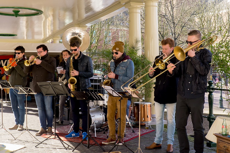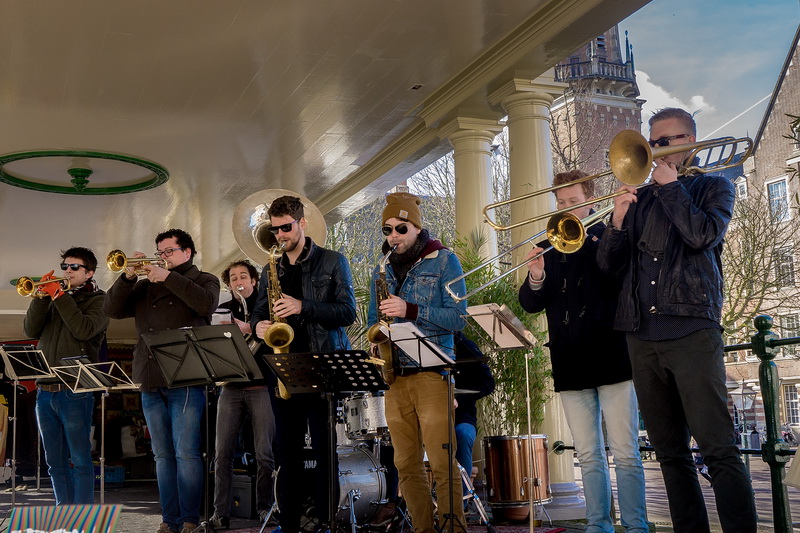 Open. Leiden is eens per maand Open. Het blijft een ietwat curieuze slagzin, maar de laatste zondag van februari was Leiden Open voor Jazz. Stralende zon en zelfs vrij volle terrassen. 28 Februari: niemand had gerekend op mooi weer en dus waren de meeste optredens binnen geprogrammeerd. Da’s jammer, want dan schiet Open z’n doel voorbij. Want in de woorden van Jeroen Sprangers “Open is gericht op de openbare ruimte”. Eigenlijk richt Open zich dus op het zichtbaar laten bruisen van de stad. Deze zondag werd dat eigenlijk alleen gedaan door Brasta La Vista die in de openlucht er op los bliezen dat het een lieve lust was. Maar ook binnen was zat te vinden, zij het dat het altijd méér kan.