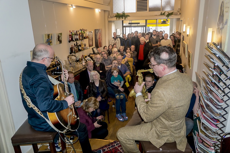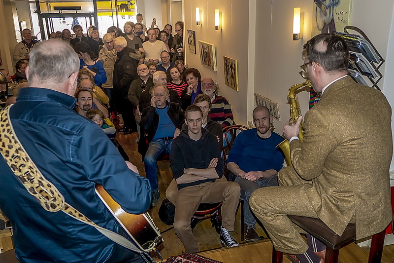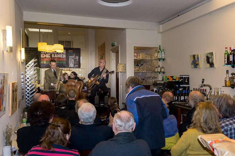 Over de kwaliteit van het gebodene kun je kort zijn: topklasse. Bij Vooraf En Toe was het zó druk tijdens het optreden van Benjamin Herman en Anton Goudsmit dat van drank bestellen niets terecht kwam. “Maar het gaat me ook niet om extra omzet. Het is gewoon leuk. Het is goed voor de naambekendheid. En, ach, misschien blijft er zometeen toch weer iemand hangen voor een biertje”, zo verklaart Hadi zijn deelname aan Open, en vanwege het ‘Jazz in de Kamer’concept. Dat zijn kleinschalige optredens waarbij je bijna letterlijk op de schoot van de muzikant zit. Want Open voor Jazz is ook de aanloop naar het Rhythm Groove and Bass Festival, RGB.