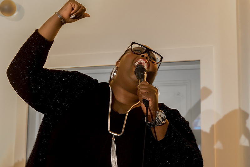 En Shirma Rouse en band dan? Alhoewel Wikipedia beweert dat ze vanaf Curaçao naar Rotterdam kwam op haar negentiende, blijkt ze eigenlijk eerst in Leiden te zijn beland. Preciezer: in De Mors. Ze kent de stad vooral uit haar studietijd. “The Duke, toen jazzcafé, nu niet meer hè? En de Pelikaan. Studentenplekken. Ik kom nog steeds af en toe in Leiden”. Het is dankzij het nieuwe initiatief Jazztalks dat de aanwezigen met haar in gesprek konden “ik werk nog steeds net zo hard als toen mensen me nog niet kenden”. Dat is nog even wennen, want wát vraag je? Nou, volgens Rouse moet je dóen. Staat er dus plots een organisator van Jazztalks mee te spelen. Of Rouse ‘commandeerde’ een paar keer leden van haar band naar voren om iets te laten hóren, laten vóelen. Vooral het moment dat eigenlijk de héle band stond te spelen bracht iets teweeg: elektriciteit in de foyer. Het was niet te missen. De hele foyer voelde de muziek. Dat belooft wat als de Jazztalks in het najaar geregelder gaan plaatsvinden (voor informatie: vooralsnog via Sumerjazz).