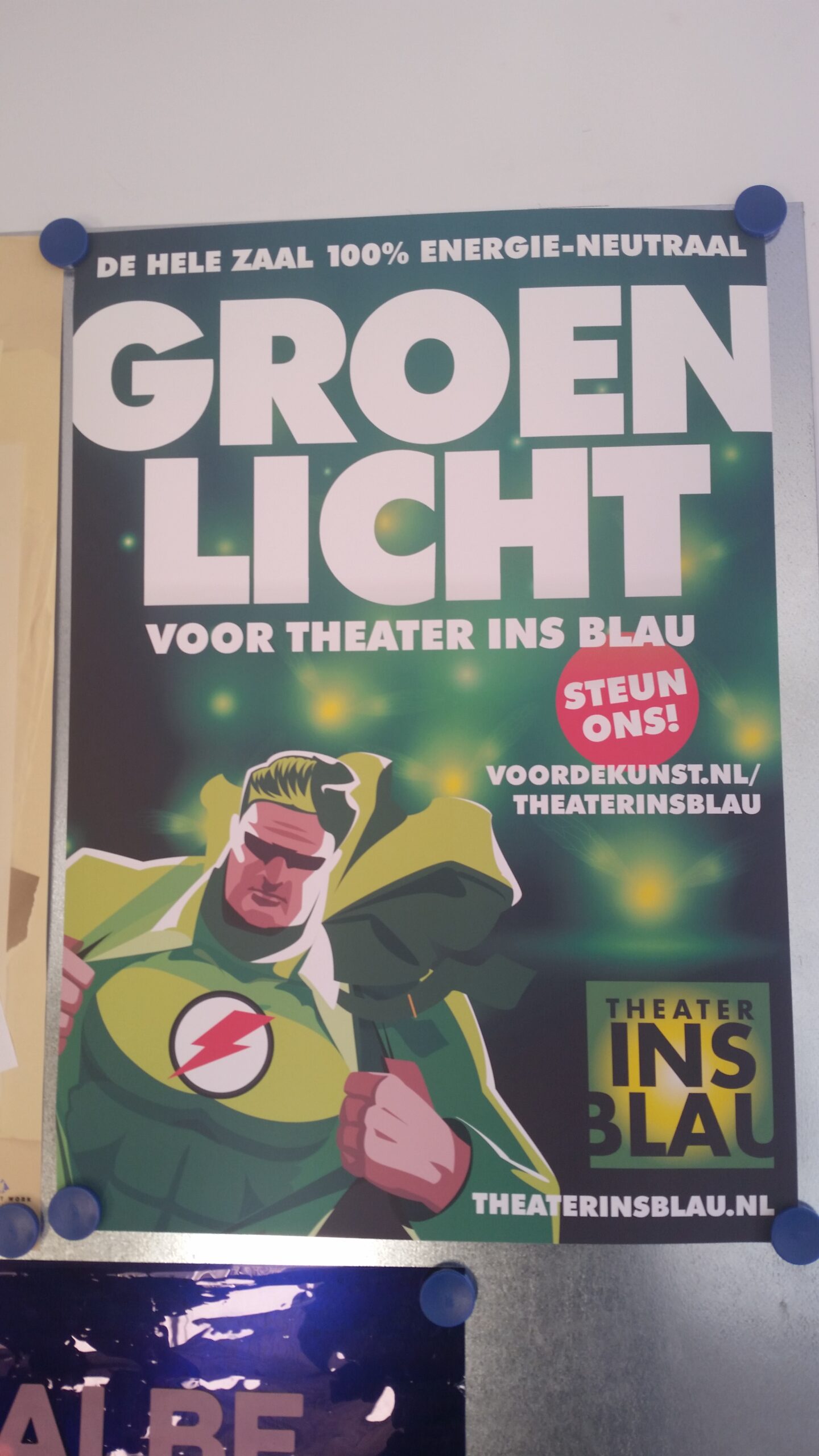 Theater Ins Blau heeft de ambitie het eerste vlakke vloer theater in Nederland te worden dat energieneutraal is. Een mooie ambitie die haalbaar lijkt, mits ook de grootste energieslurpers in een theater, de theaterspots, zuinig worden. LEDverlichting is dat. Probleempje is dat Ins Blau geen geld meer heeft om die lampen aan te schaffen. En dus wordt de hulp van het publiek ingeroepen. In moderne termen, Ins Blau start een crowdfunding campagne: Groen Licht voor Ins Blau. Maandag trapten zakelijk leider Van Leeuwen en wethouder Frank de Wit die af, sober en snel.