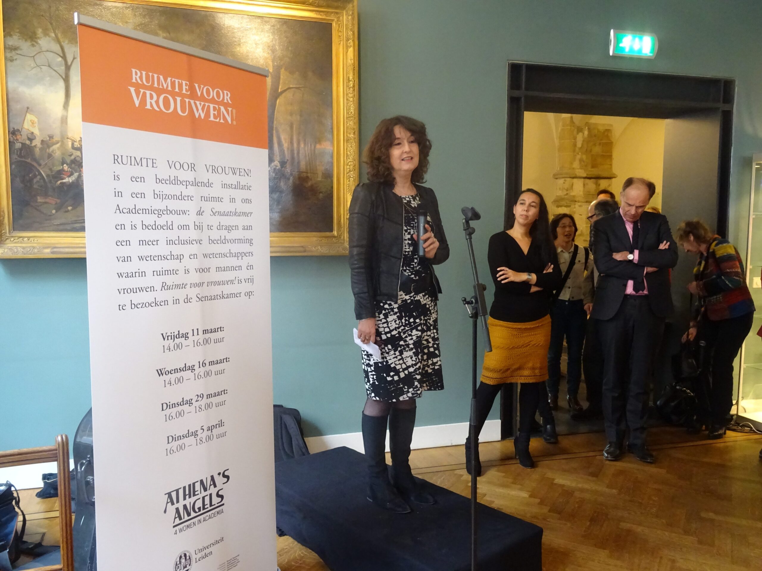 Maaike Lek was aanwezig bij de opening van ‘Ruimte voor vrouwen!’ en sprak met Judi Mesman,onderdeel van Athena’s Angels en hooggeleerde aan de faculteit van Sociale Wetenschappen, Ingrid van Biezen, hoogleraar aan de faculteit van Sociale Wetenschappen, Wille Otterspeer, hoogleraar Universiteitsgeschiedenis en beheerder van het Universiteits Museum, en Speer Bentall, van het ontwerpbureau Bentall_Bommeltjé.
