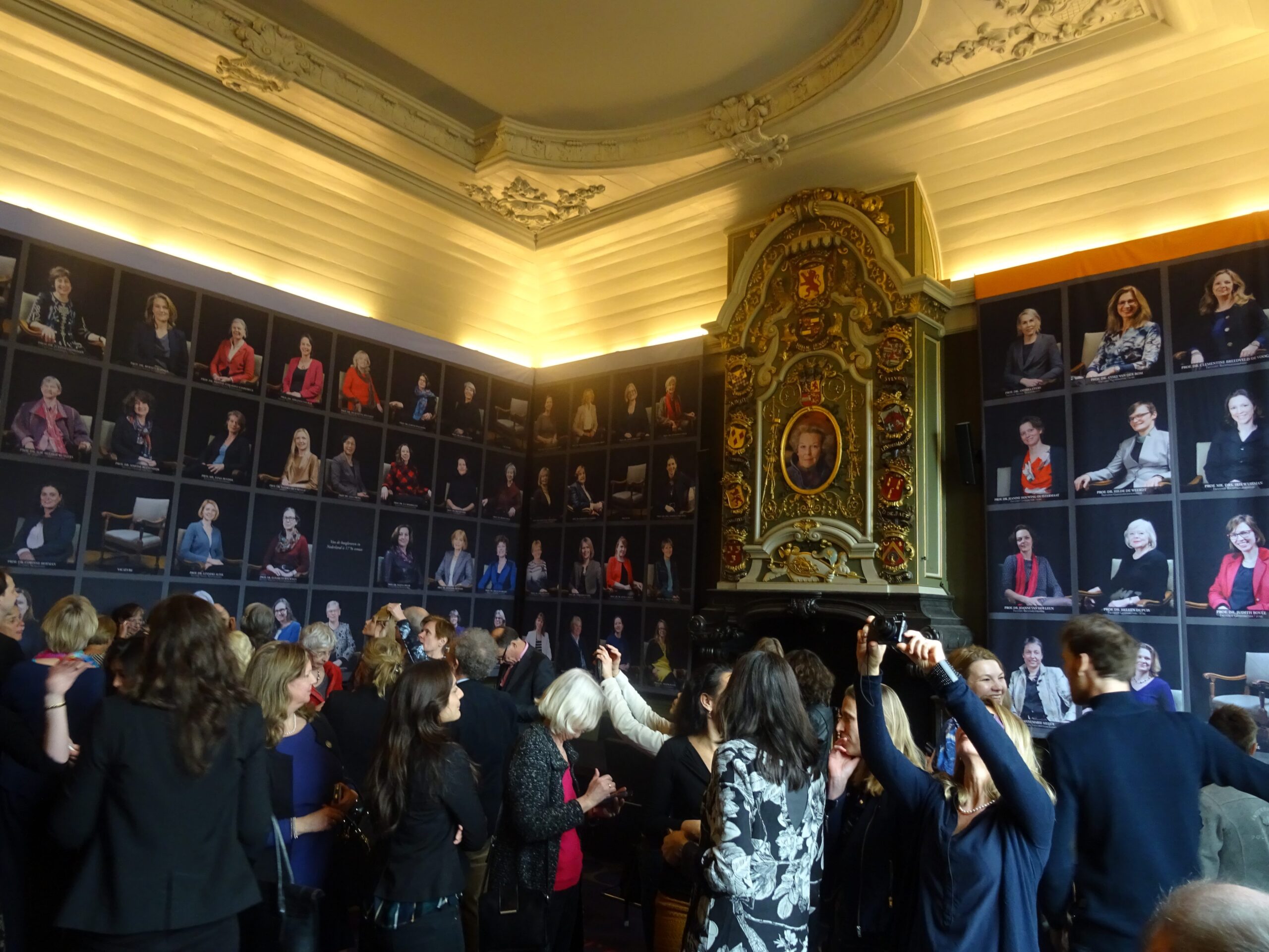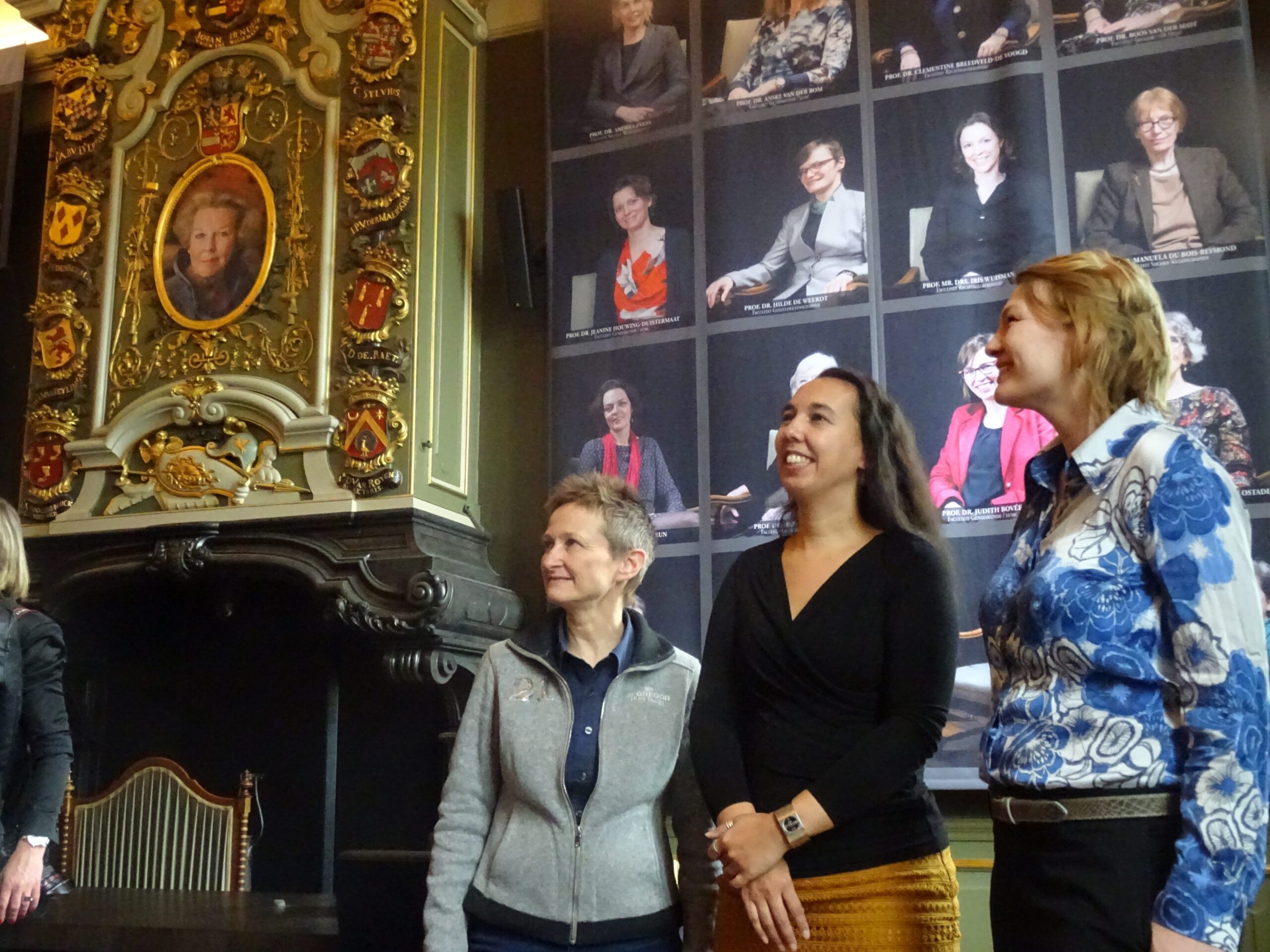 In de Senaatskamer in het Academiegebouw van de Universiteit Leiden hangt normaal maar één portret van een vrouwelijke hooggeleerde. In het kader van de Internationale vrouwendag opende de deuren naar een Senaatskamer met 99 portretten van vrouwelijke hooggeleerde van de Universiteit Leiden. De portretten zijn nog de komende maand te zien in de Senaatskamer aan het Rapenburg.