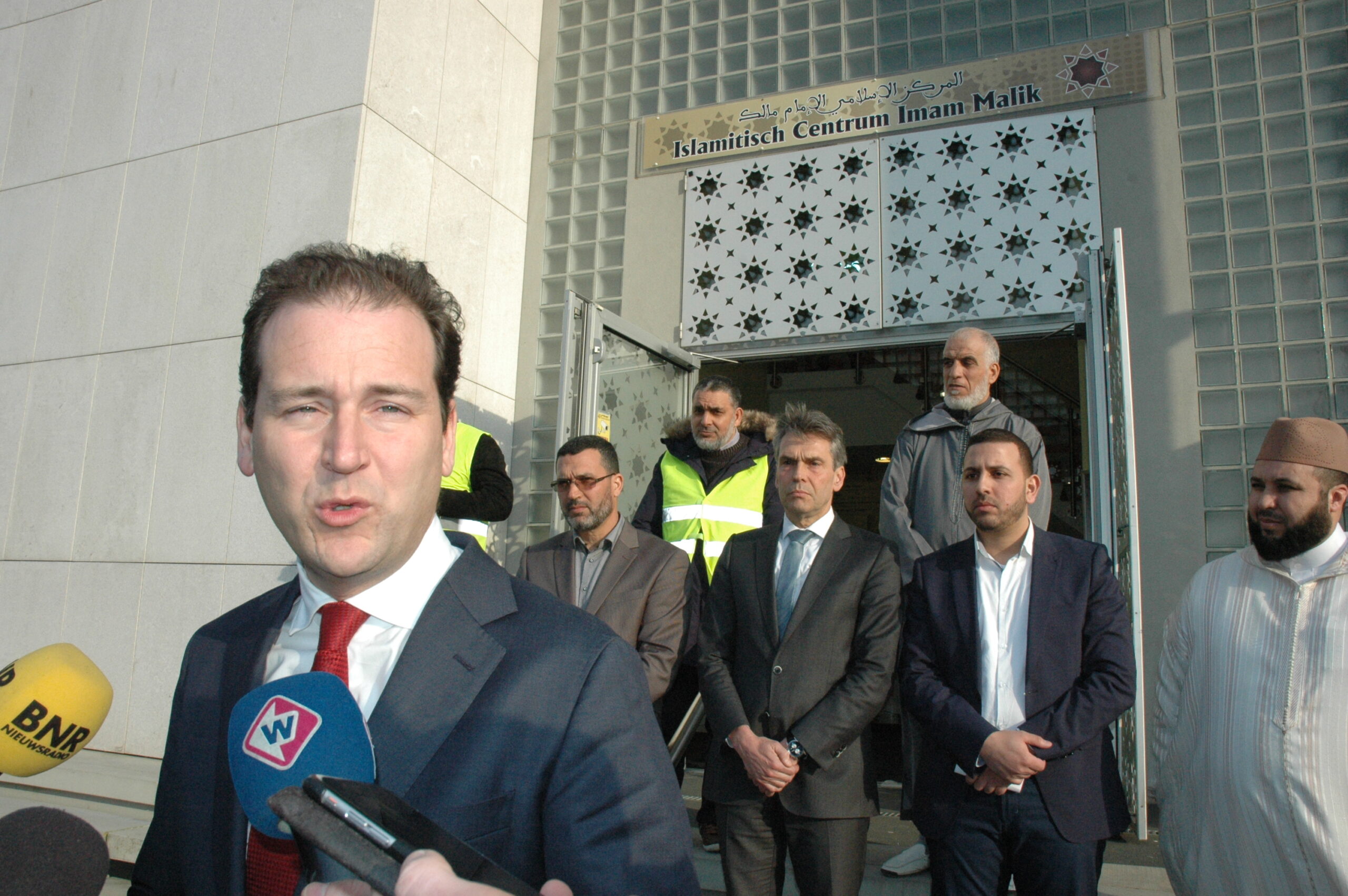 Minister Lodewijk Asscher van sociale zaken bezoekt op dit moment het islamitisch centrum Imam Malik in Leiden. Dat doet hij naar aanleiding van een dreigbrief die daar twee weken geleden op de deurmat plofte. Ook is de Nationaal Coördinator Terrorismebestrijding en Veiligheid (NCTV) Dick Schoof met de minister mee om te spreken met de Imam en anderen van de Leidse Islamitische gebedshuizen die werden bedreigd. Ook spreken zij met wethouder Marleen Damen.