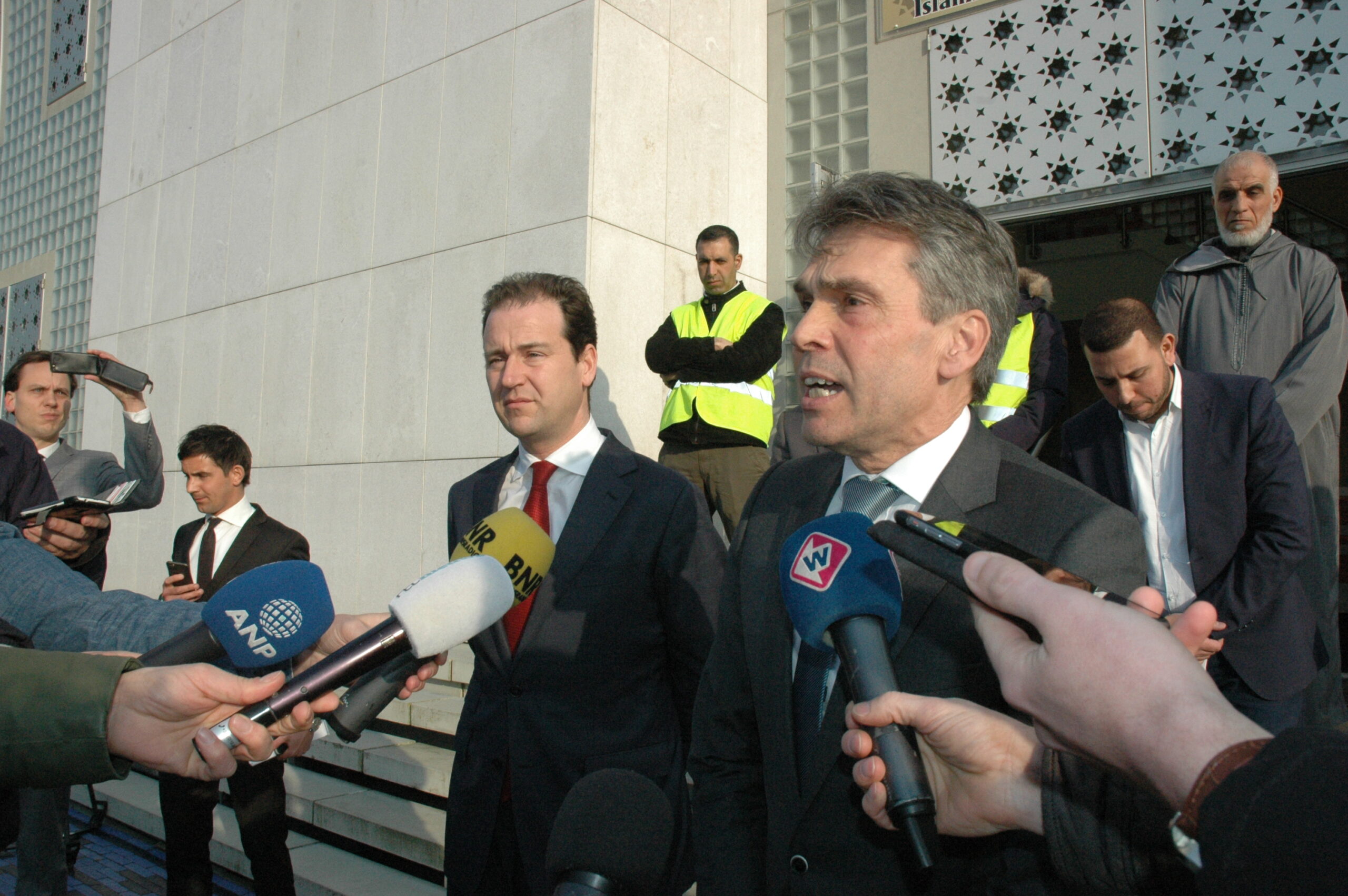 Na afloop van het bezoek legden minister Asscher, NCTV Dick Schoof en moskeebestuurder Abdelhamid Bouzzit een verklaring af.
