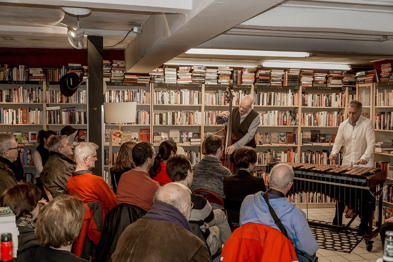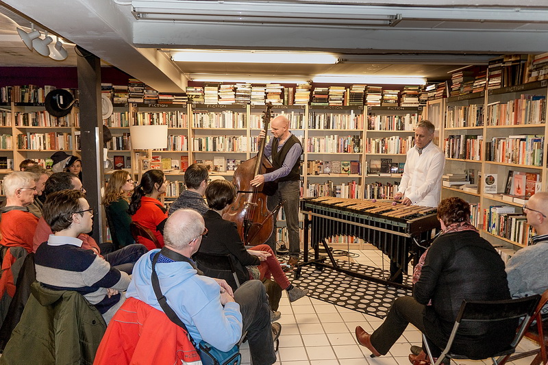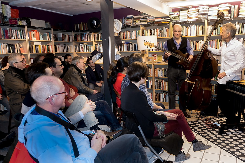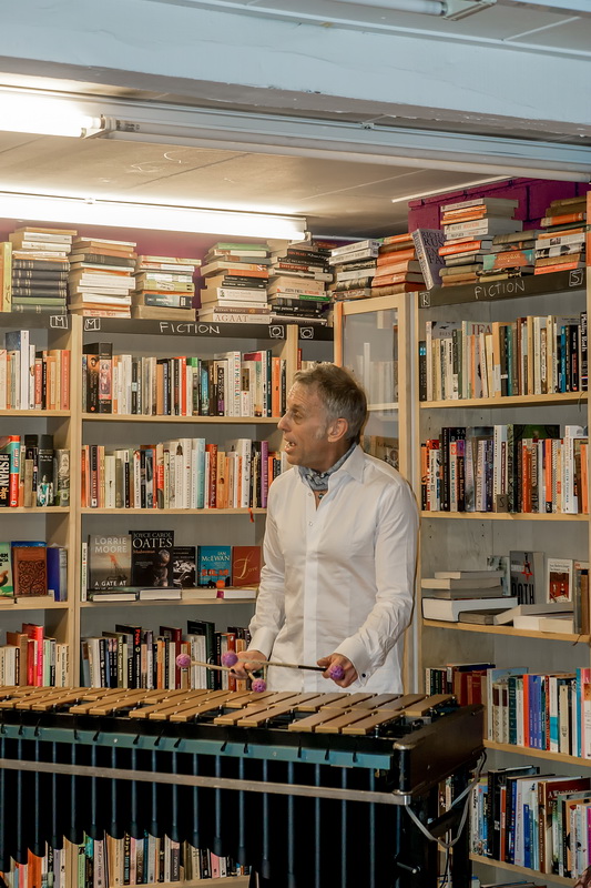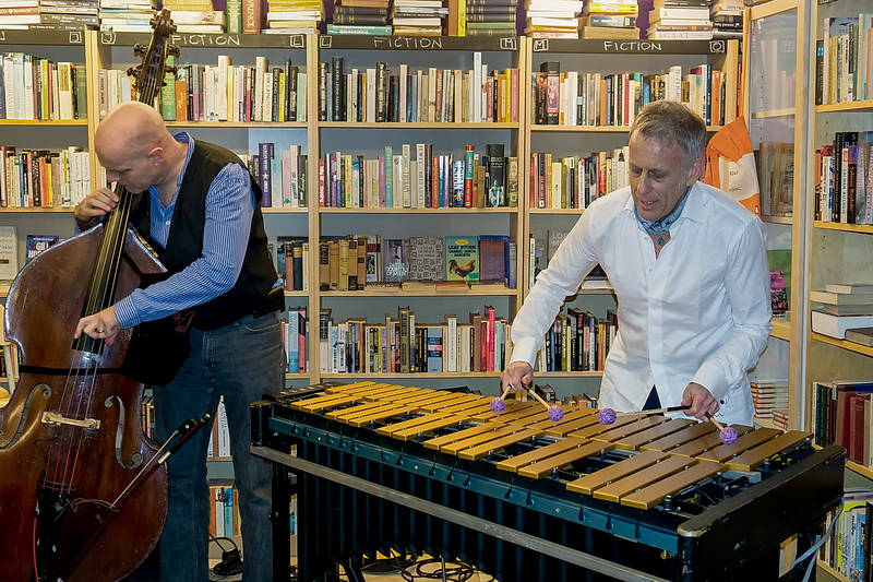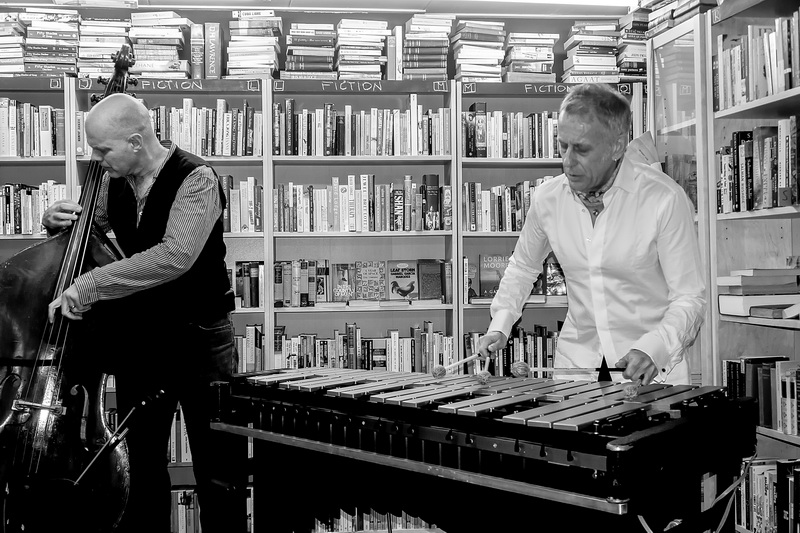 The Mayflower Bookshop is zo’n ongrijpbare boekwinkel. Het ís een boekwinkel, maar er heerst de sfeer van een huiskamer of een huisbibliotheek, en er staat een vleugel want die worden er ook verkocht. Misschien letterlijk genomen geen huiskamer, maar wel een prima plek voor een akoestisch jazzconcert van een half uur door Teepe en Locke. Bewerkingen van werk van onder andere Wayne Shorter en een mee-hummende Locke passeerden de revue. Dat de heren plezier hadden, was te horen en te zien “we’re a comic duo” “he looks góód with the electric bass”. Maar vooral in de muzikale grappen die ze voor elkaar uithaalden – maar voor het publiek inside jokes bleven – en het massaal laten meeklappen van het dertig man grote publiek.