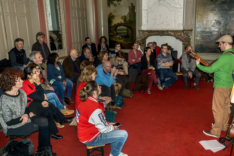 Waarom stel je je ruimte beschikbaar? In Leiden is het booming, de festivals in kamers. Voor de eigenaar van The Mayflower Bookshop is dat vanzelfsprekend: “het is leuk, en donderdagavond is toch een erg rustige avond”. Het kost ‘m geld, maar levert naamsbekendheid, plezier en mogelijk nieuwe klanten op. Voor de kamerbewoners geldt dat niet. Vieira trad op in een kamer die inmiddels tot het vaste bestand te gebruiken studentenkamers kan worden gerekend zo vaak als dat daar iets is te doen. Het is dan ook een schitterende kamer (en de bewoner wordt enigszins gecompenseerd, maar of de jonge schildpadkat dat ook voldoende vond?!). En als je de oprichters bent van Hot House Leiden ben je het eigenlijk wel aan je stand verplicht mee te doen. De aanmelding van kamers gaat, volgens de organisatie, soepel “we krijgen nog steeds méér aanmeldingen dan we kunnen gebruiken”.