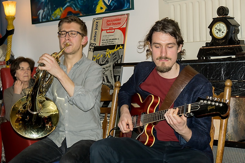 Even rekenen: 5 routes x 3 acts = 15 acts. En dat maal twee, want er was een ronde om 20.00 uur en een om 21.00 uur. Dat zijn toch mooi wel 30 optredens. Onderschat Jazz in de Kamer dus niet: in één gebouw zou het een fors festival zijn geweest met vijftien bands. Maar dan had je alleen naar een podium kunnen kijken en luisteren op minimaal vijf meter afstand. Bij Jazz in de Kamer is die afstand veel kleiner. De blazer van Kapok toetert vlakbij je hoofd. Shirma Rouse staat voor je neus. En Wouter Hamel is binnen handbereik. Dat heten intieme huiskamerconcerten en ze waren geweldig.
