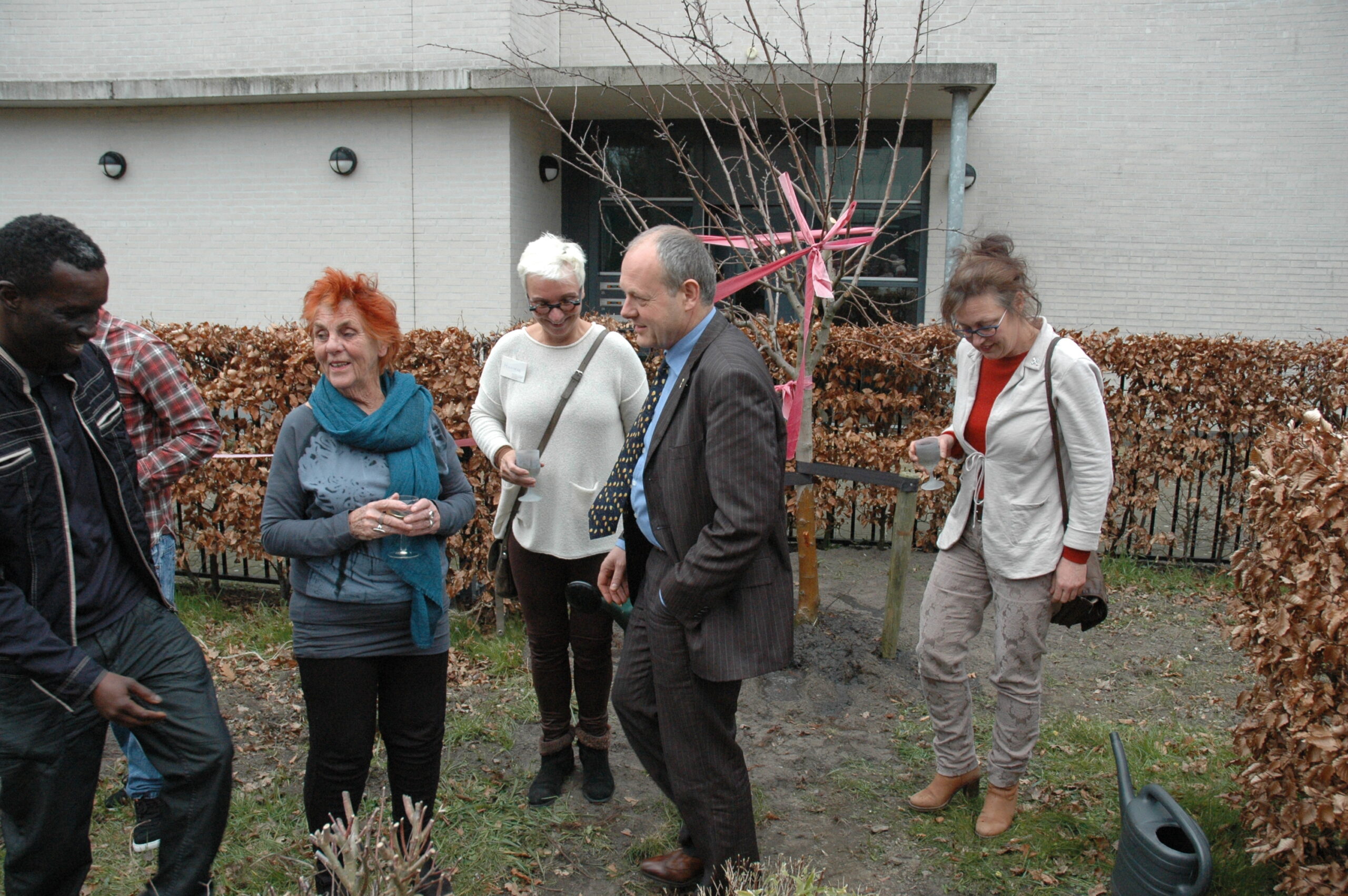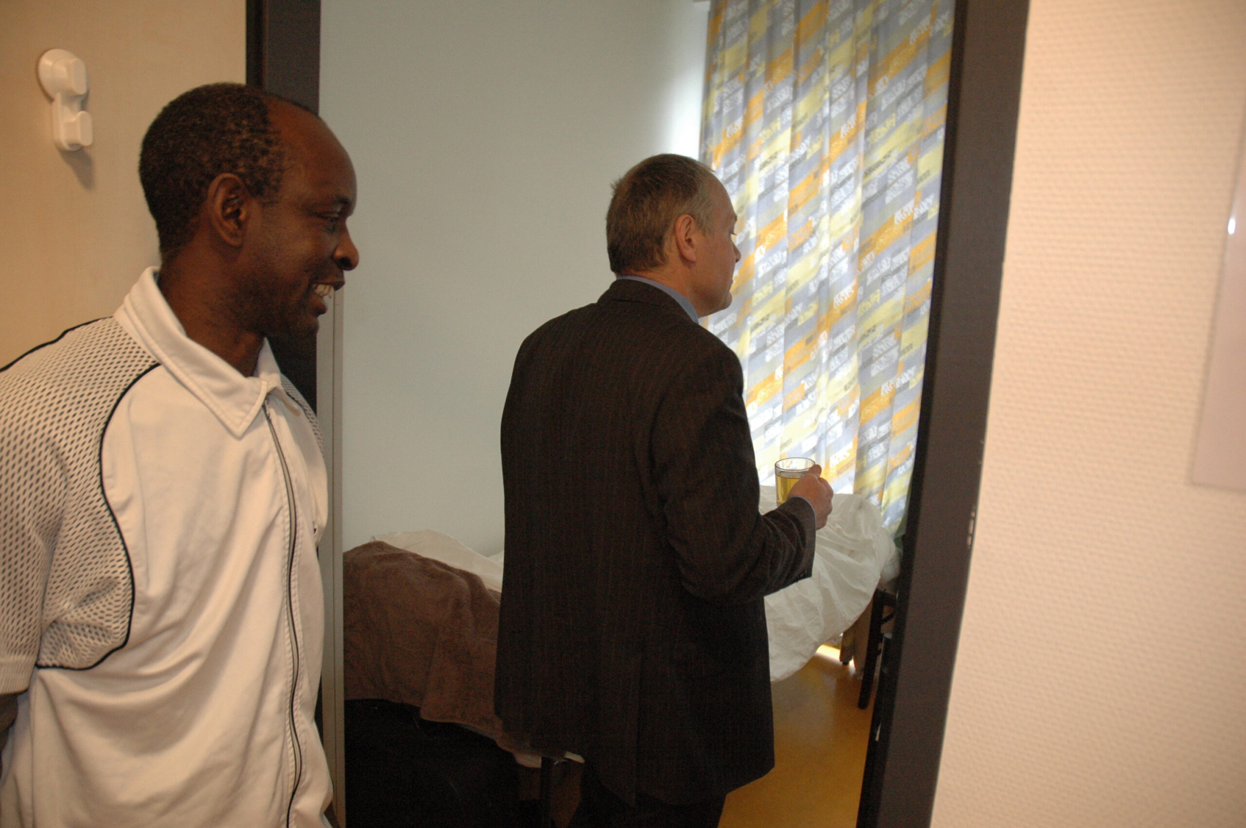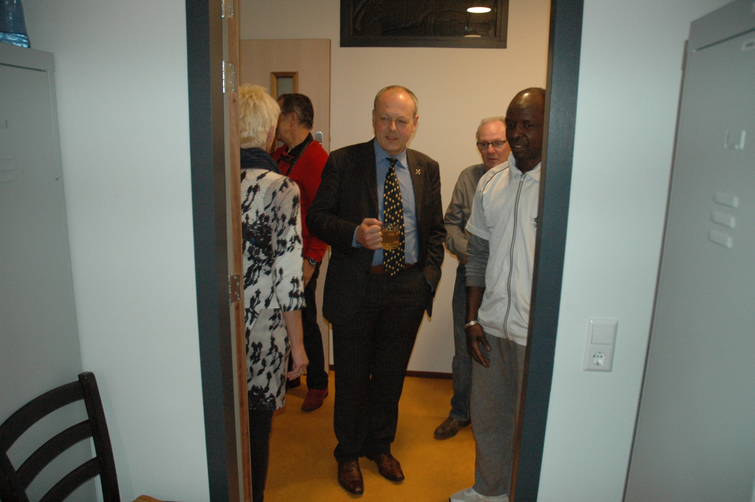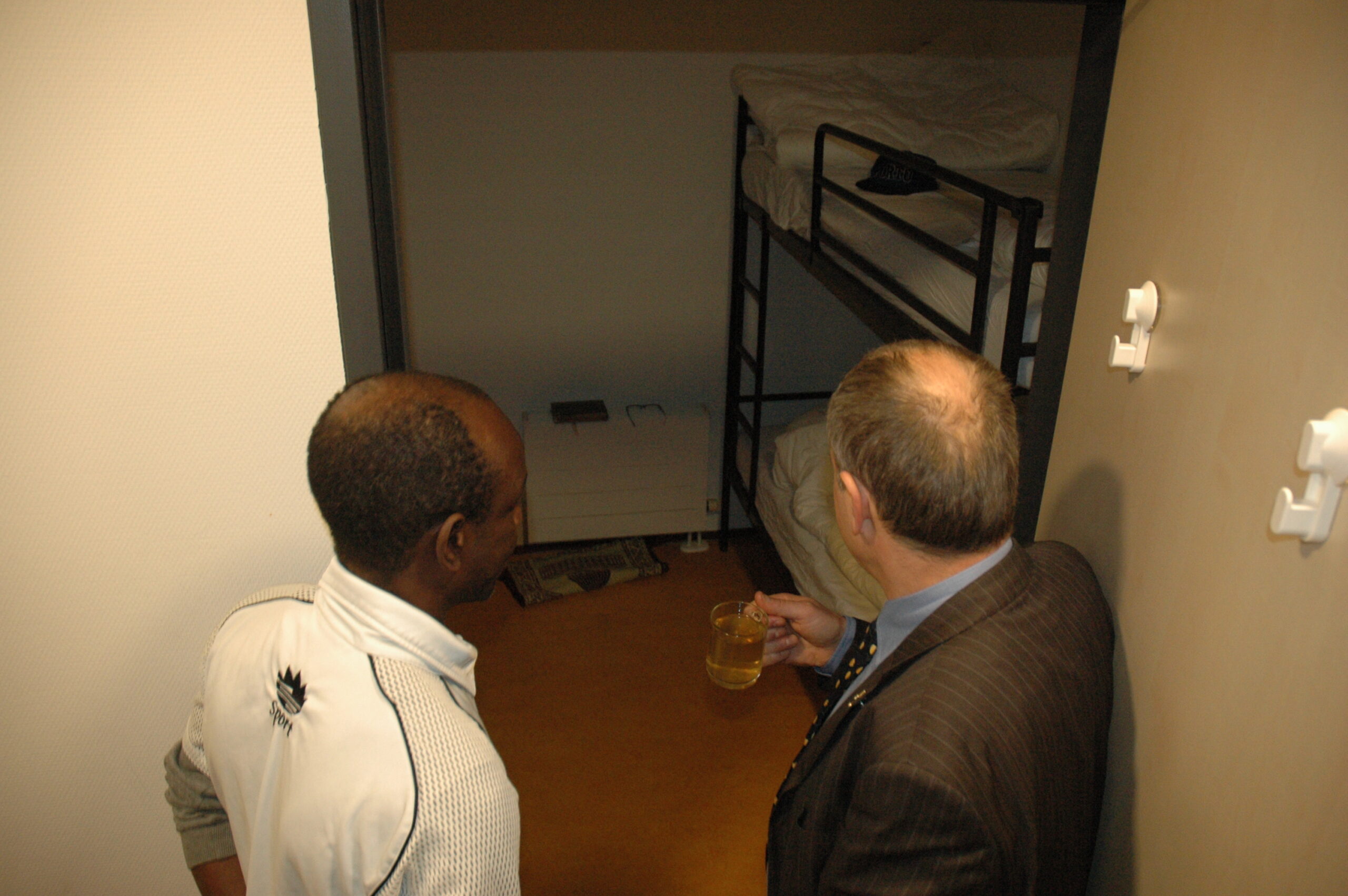 Tijdens het werkbezoek kregen Lenferink en Van Gelderen een rondleiding door het gebouw. Op de begane grond zijn de algemene ruimtes, een centrale keuken waar de bewoners kun eigen kostje kunnen klaarmaken en de werkplekken van het personeel. Boven zijn de slaapvertrekken. De bewering dat het hier gaat om een sobere opvang blijkt niet overdreven. In de kleine tweepersoonskamertjes slapen de bewoners in stapelbedden. Sommige ruimtes hebben geen daglicht omdat er geen ramen zijn. De ruiten boven de deuren zijn afgeplakt met vuilniszakken om het licht in de gang tegen te houden. Dat blijft altijd branden. Het bezoek werd afgesloten met het planten van twee bomen in de tuin van de opvanglocatie.