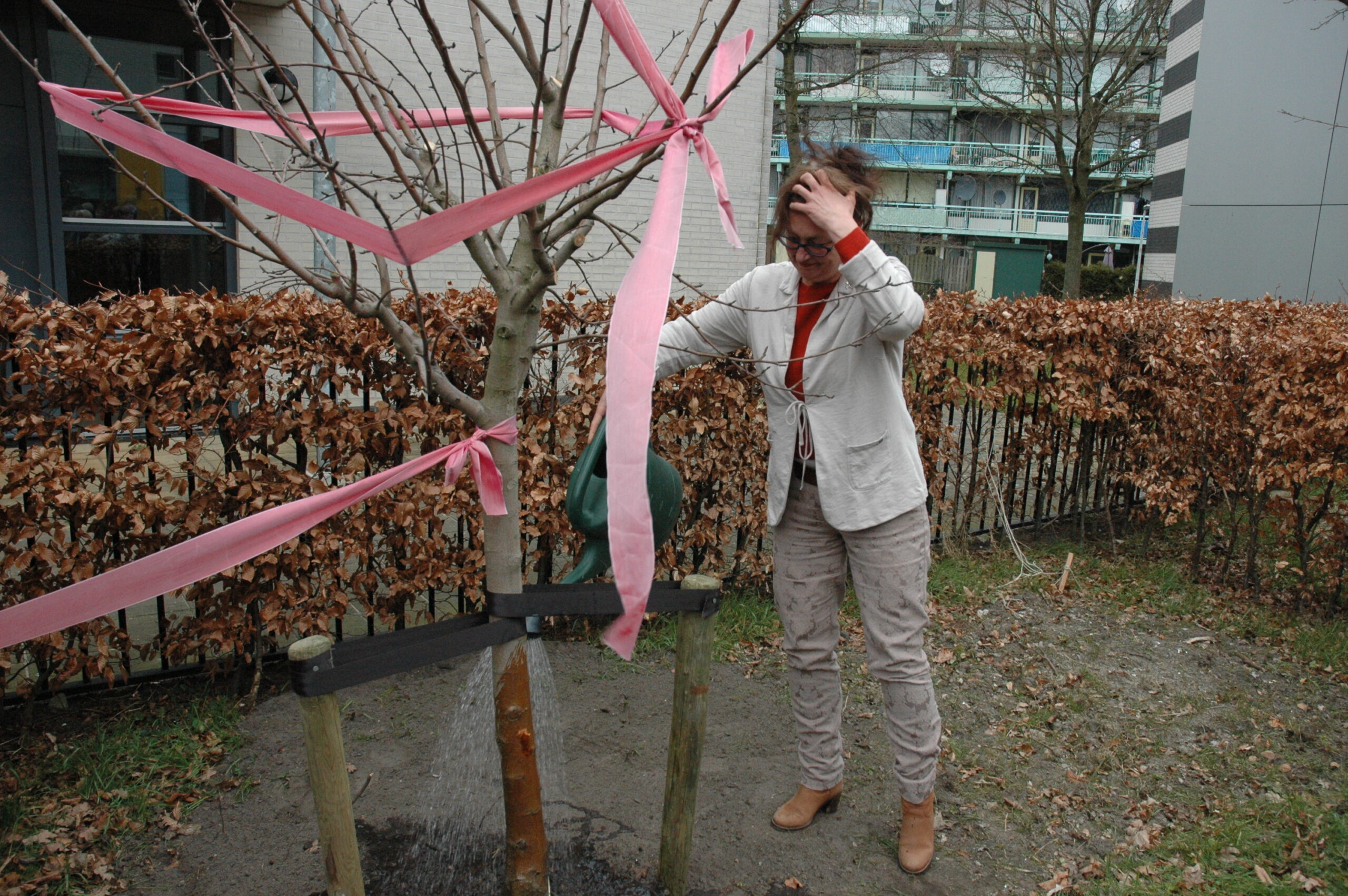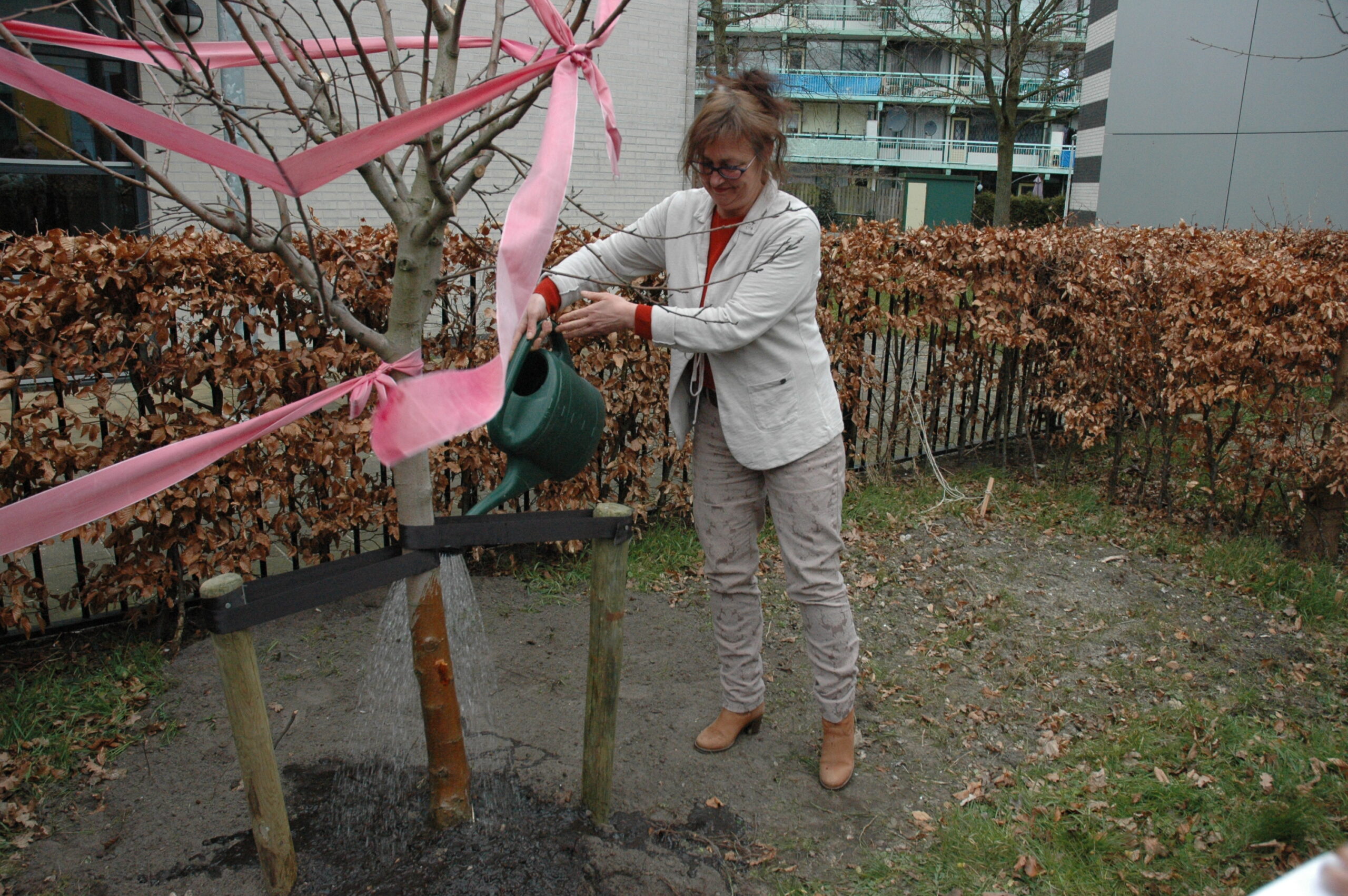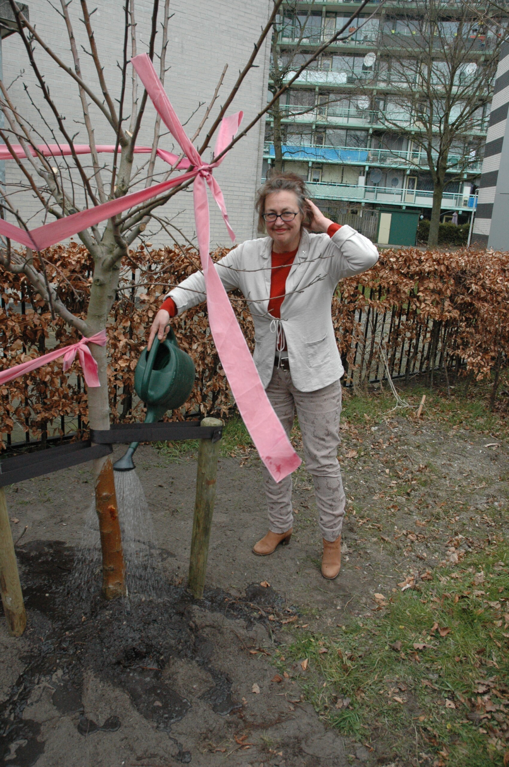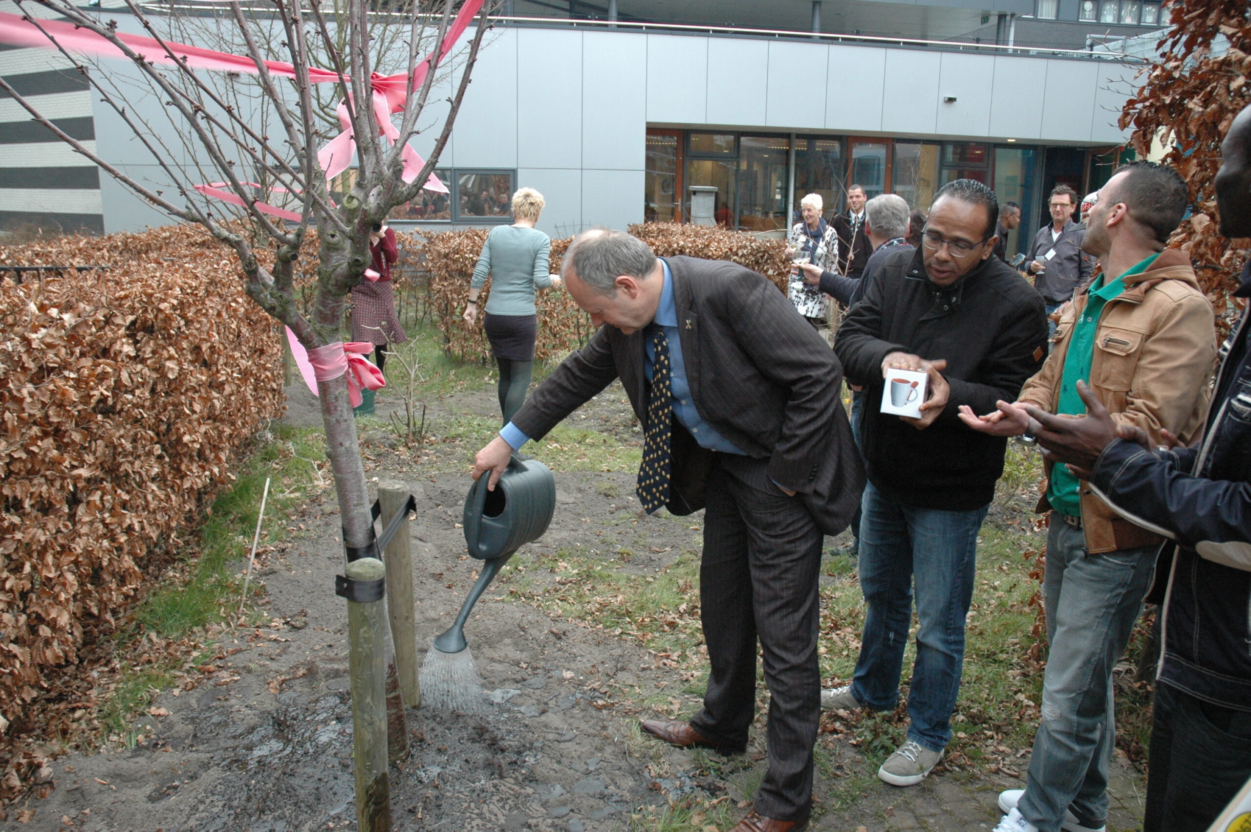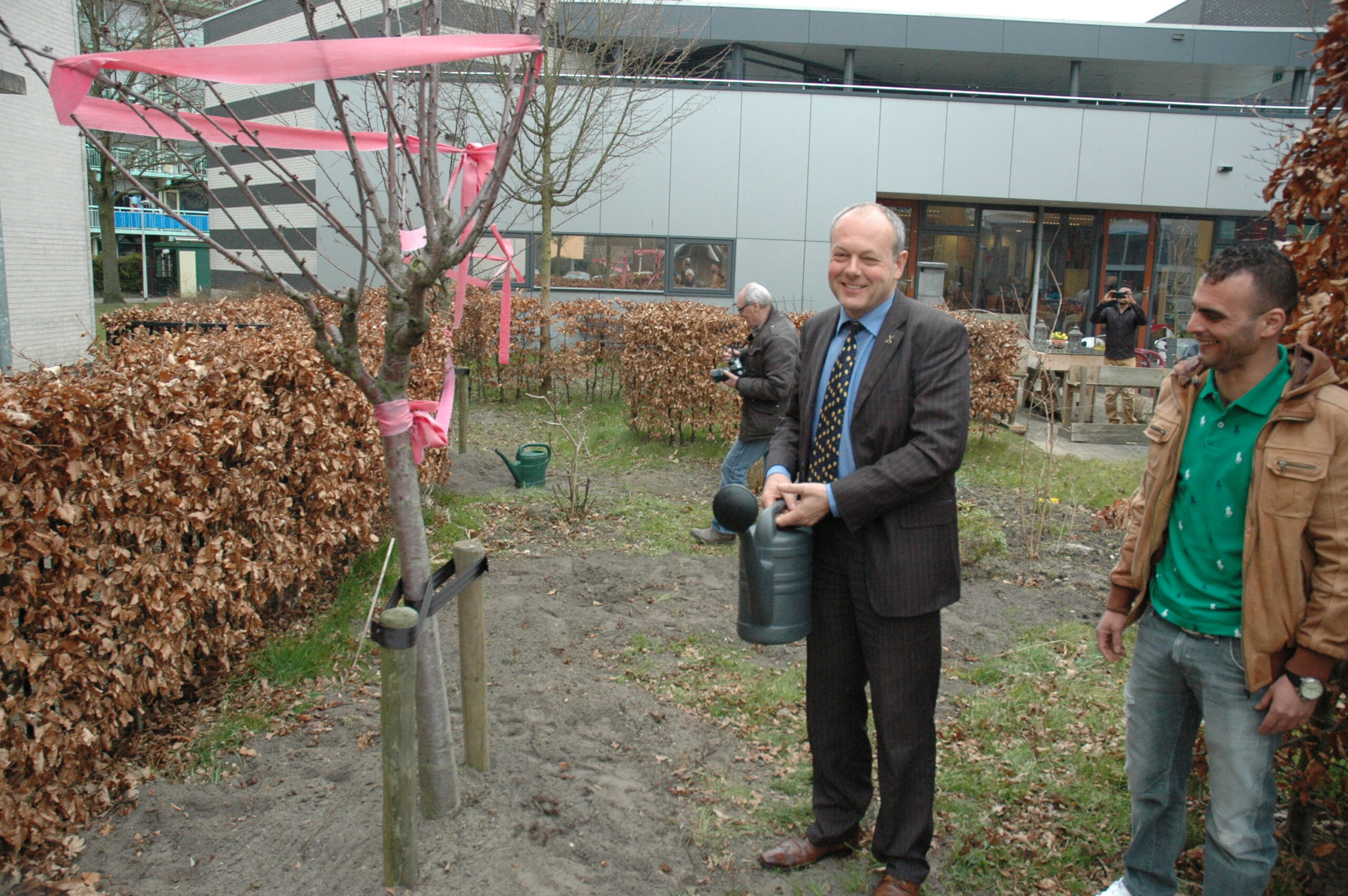 Tijdens het werkbezoek kregen Lenferink en Van Gelderen een rondleiding door het gebouw. Op de begane grond zijn de algemene ruimtes, een centrale keuken waar de bewoners kun eigen kostje kunnen klaarmaken en de werkplekken van het personeel. Boven zijn de slaapvertrekken. De bewering dat het hier gaat om een sobere opvang blijkt niet overdreven. In de kleine tweepersoonskamertjes slapen de bewoners in stapelbedden. Sommige ruimtes hebben geen daglicht omdat er geen ramen zijn. De ruiten boven de deuren zijn afgeplakt met vuilniszakken om het licht in de gang tegen te houden. Dat blijft altijd branden. Het bezoek werd afgesloten met het planten van twee bomen in de tuin van de opvanglocatie.