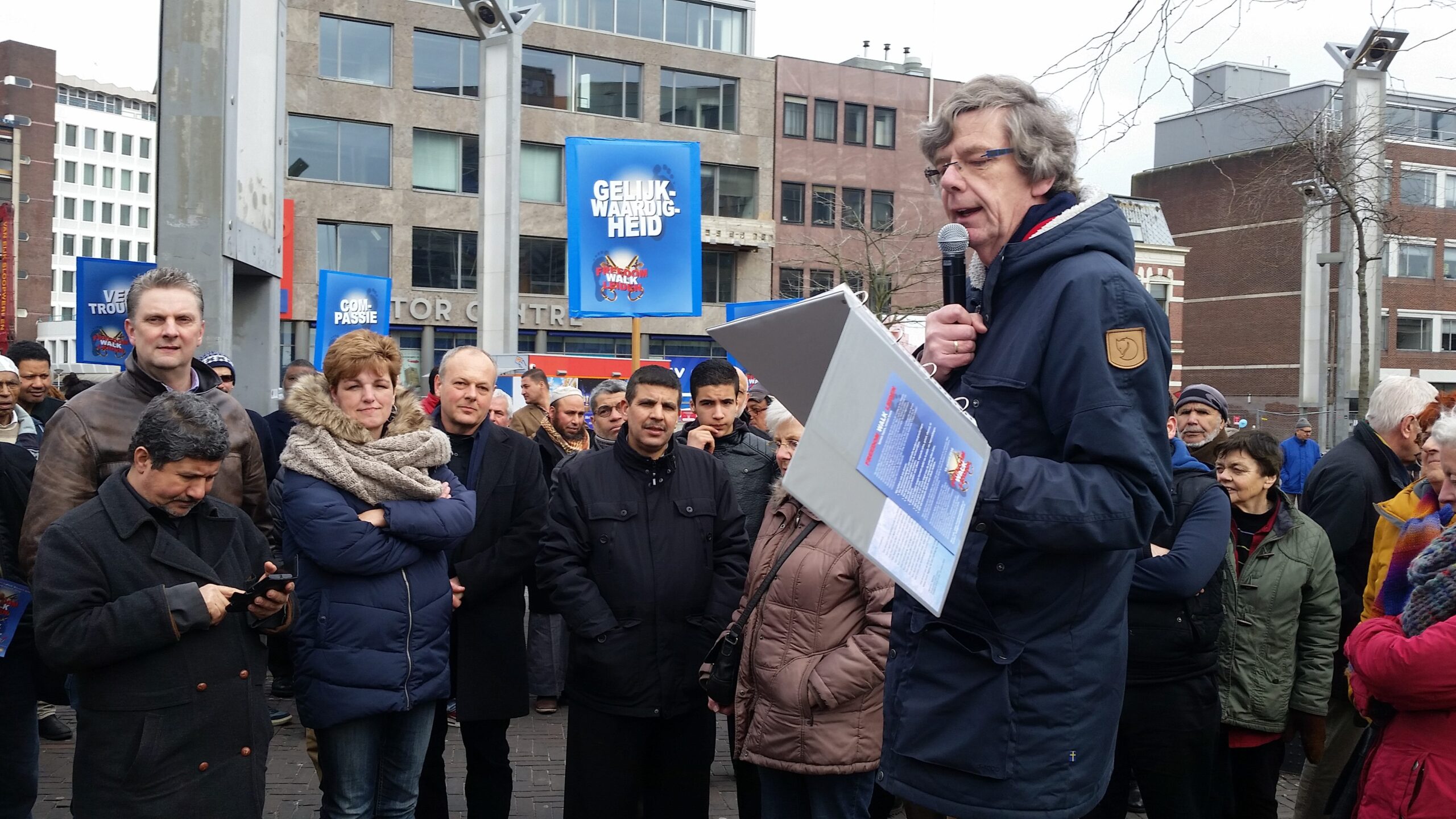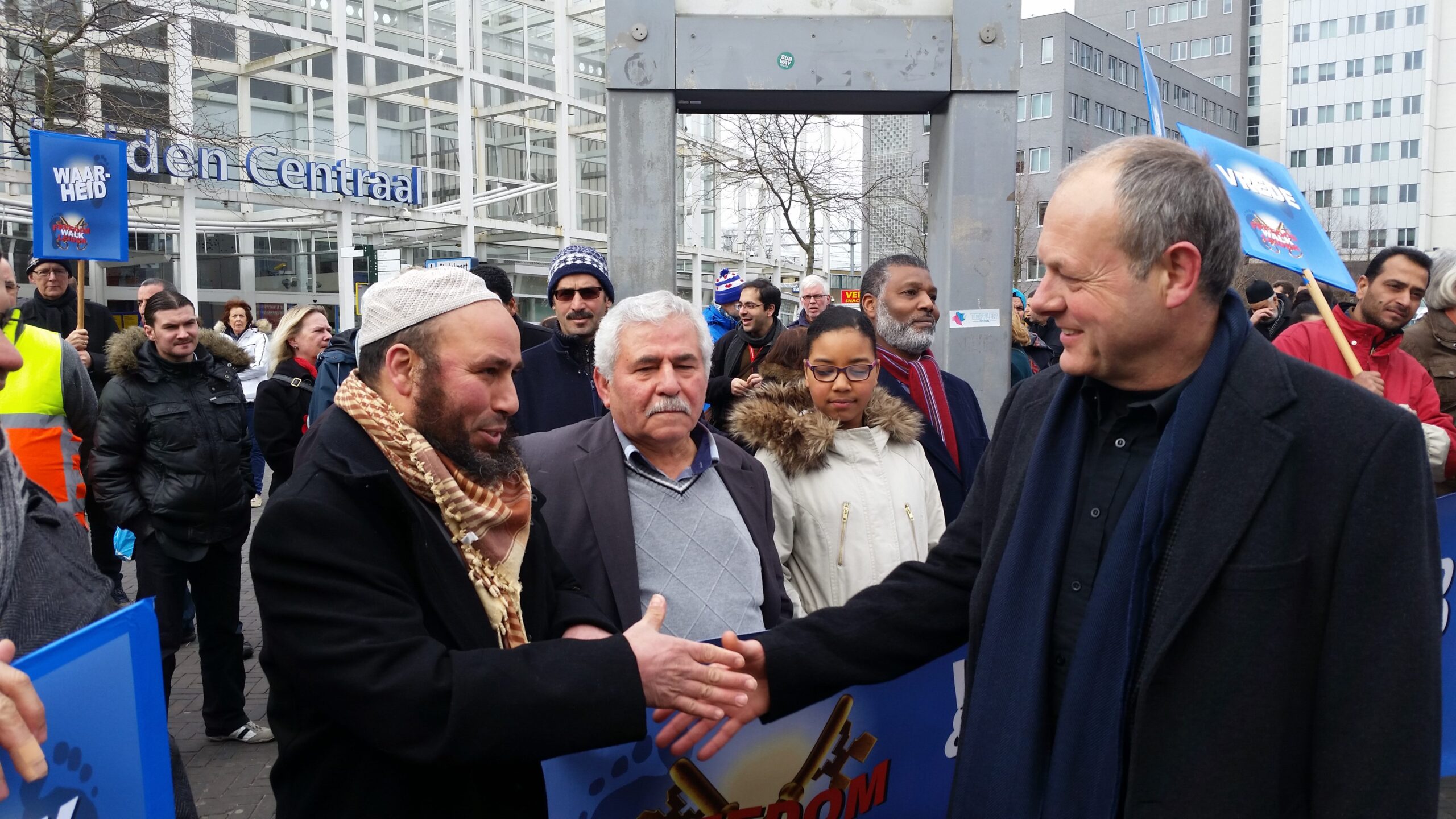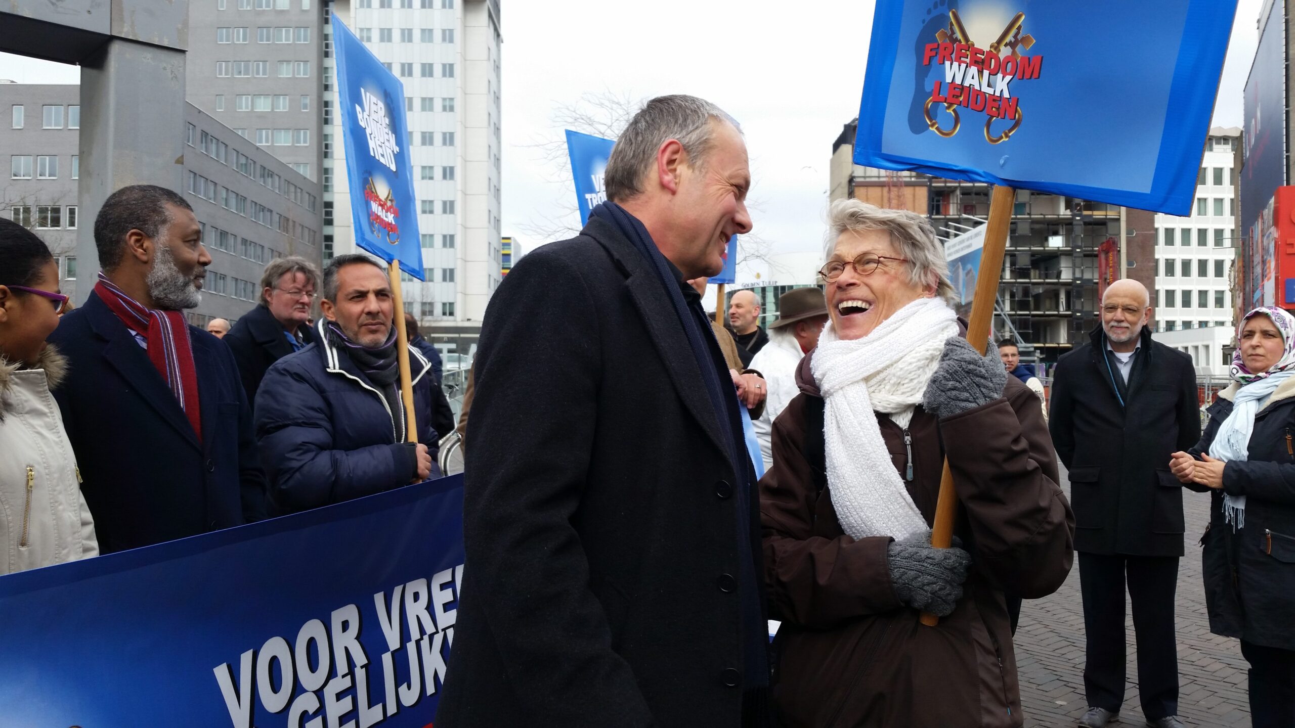 Zaterdagmiddag trok een flinke stoet door de stad. Vanaf station Leiden Centraal liepen enkele honderden mensen via de Beestenmarkt naar het stadhuis tijdens de Leidse Freedomwalk die werd georganiseerd door het Charter for Compassion Leiden en het Levensbeschouwelijk Platform Leiden. Daar veranderde de Freedomwalk Leiden in een Freedomtalk met onder andere toespraken van burgemeester Lenferink en dominee Alblas.