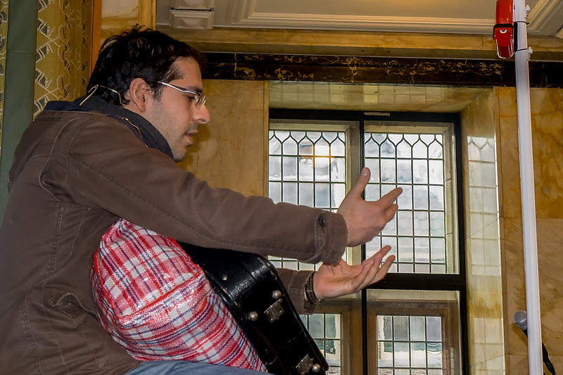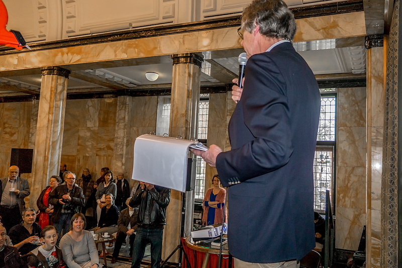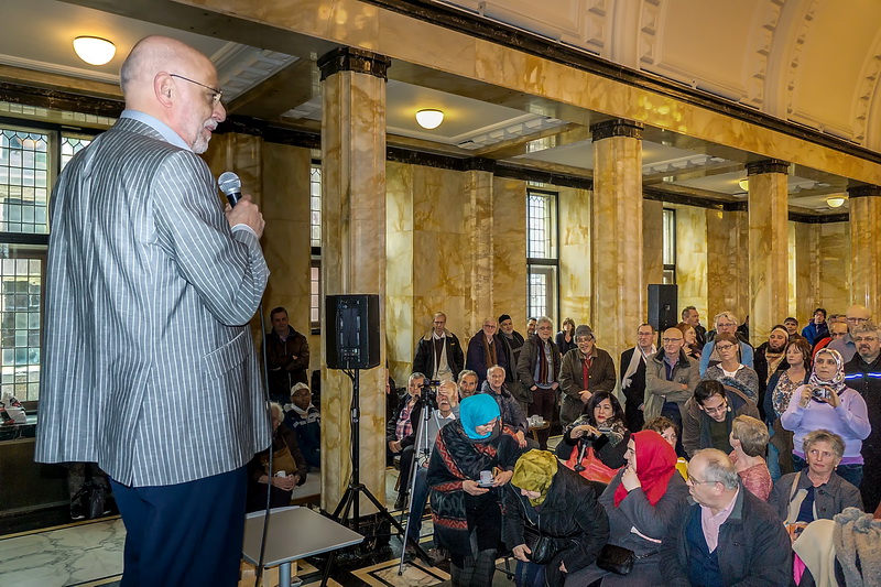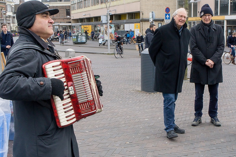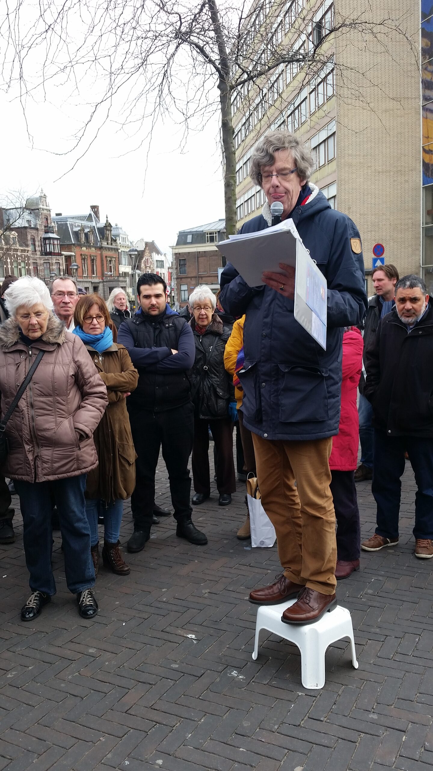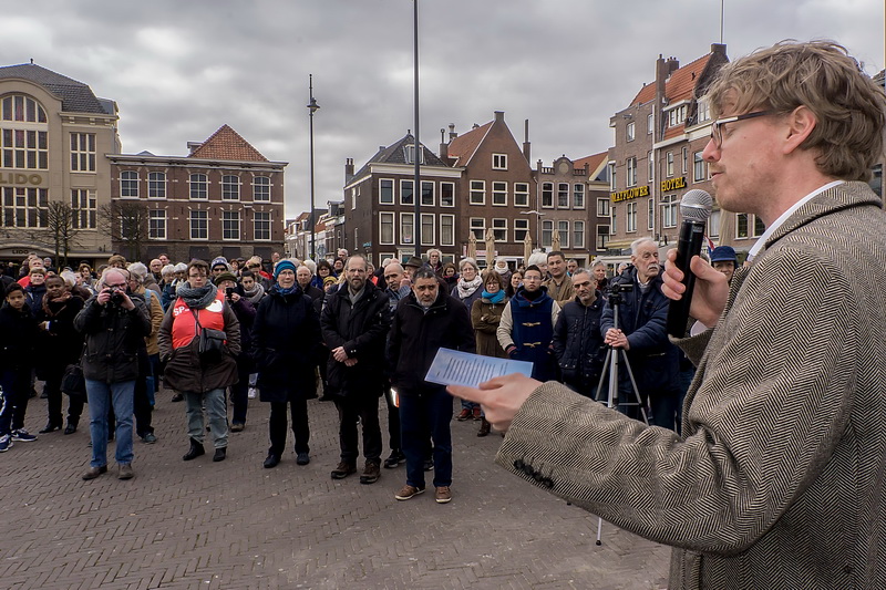 Bij de Beestenmarkt werd gestopt een een minuut stilte en en voordracht van stadsdichter Wouter Ydema die speciaal voor deze dag een gedicht had geschreven over compassie.