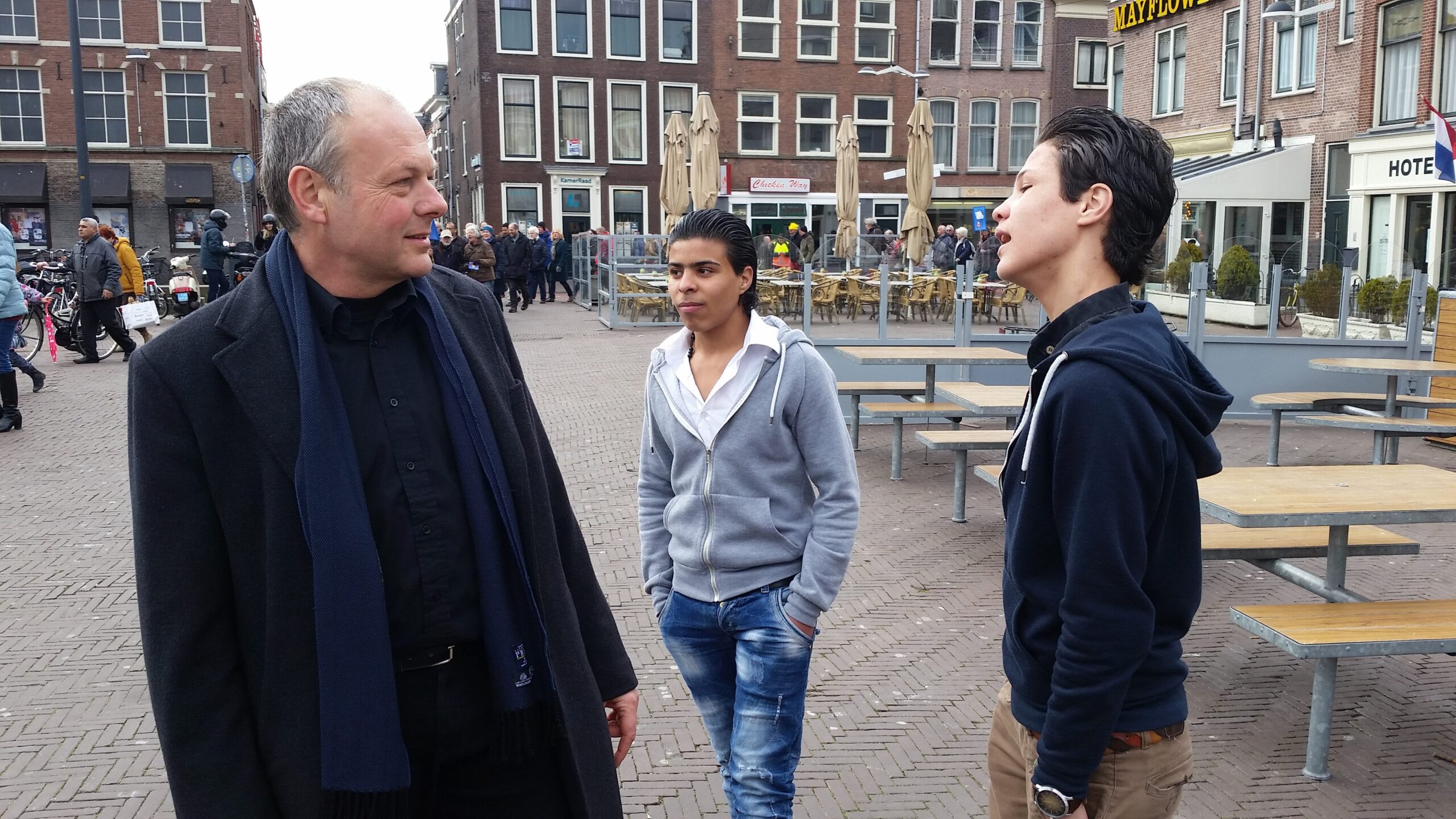 Chris de Waard liep ook mee en sprak onderweg met verschillende betrokkenen en deelnemers aan de Freedomwalk Leiden.