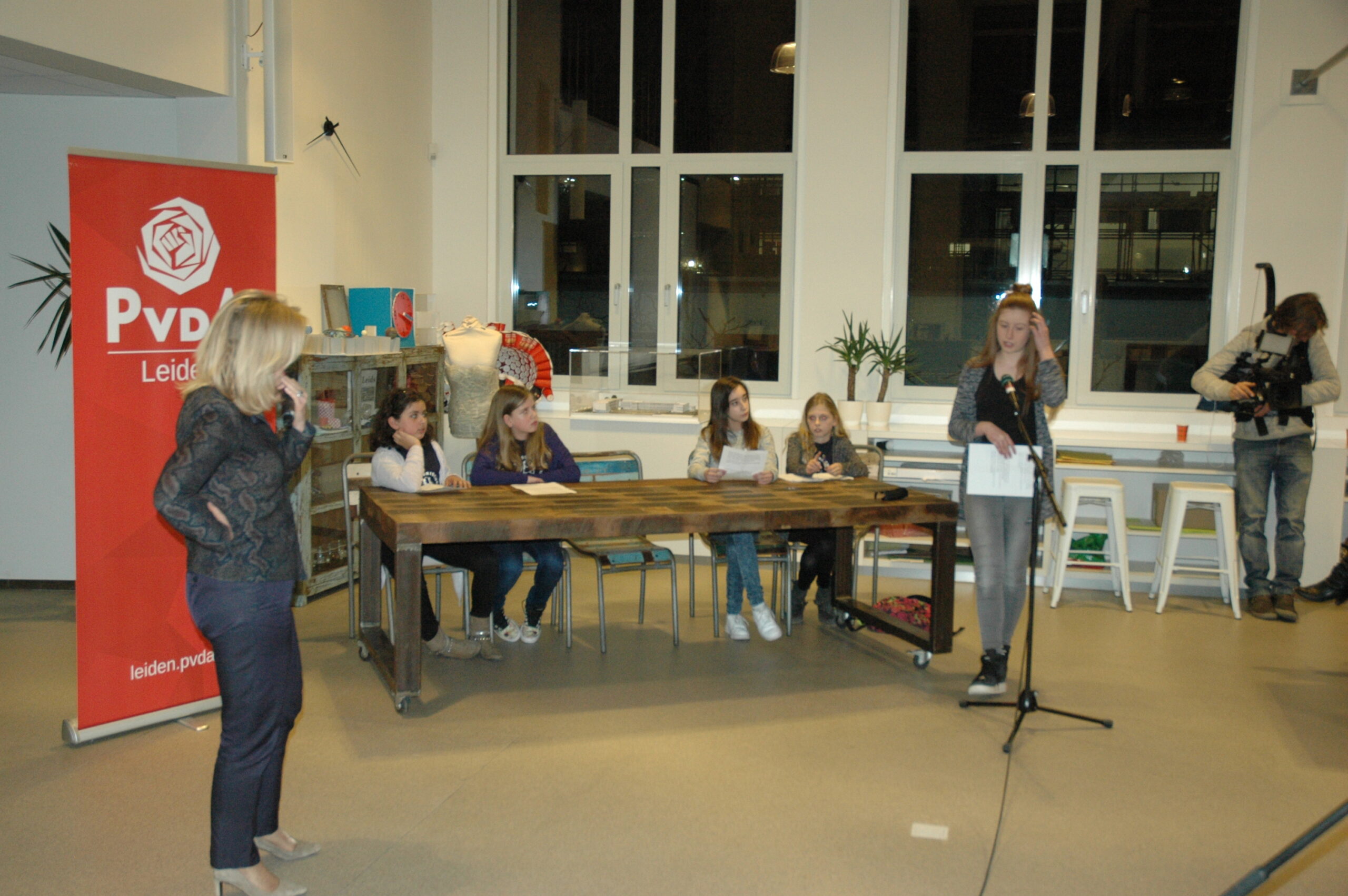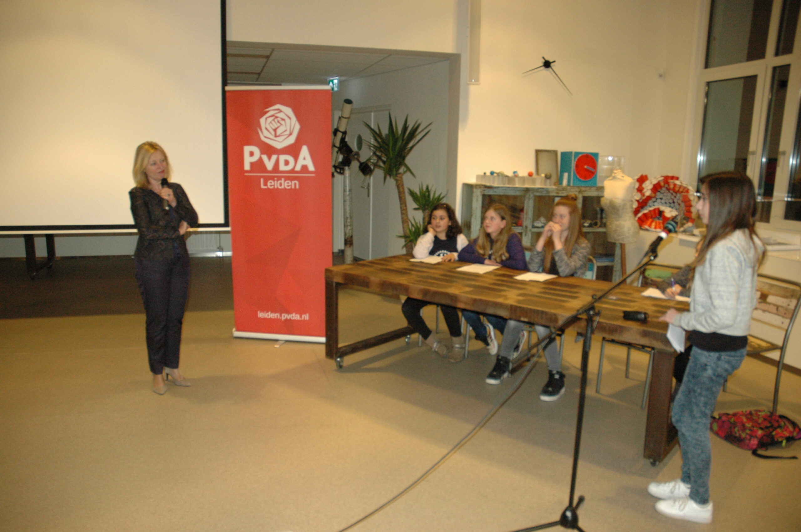 Vijf leerlingen van de Montessori School Apollo stelden vragen aan de minister. Vervolgens werd onder meer gesproken over de stand van zaken rond het mbo-onderwijs in Leiden.