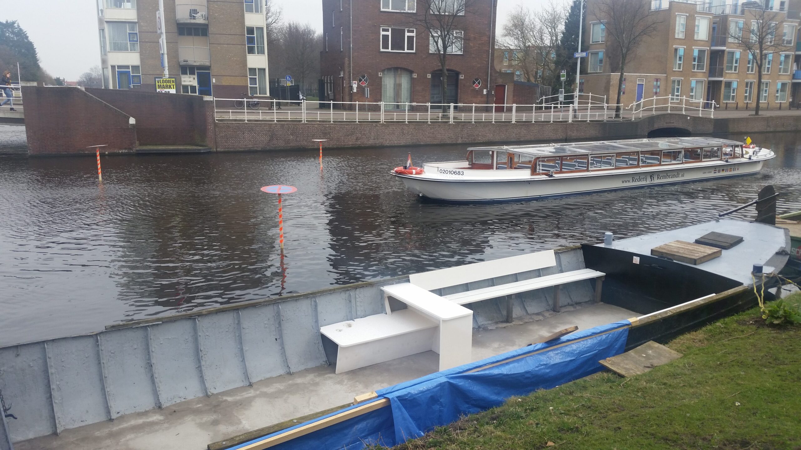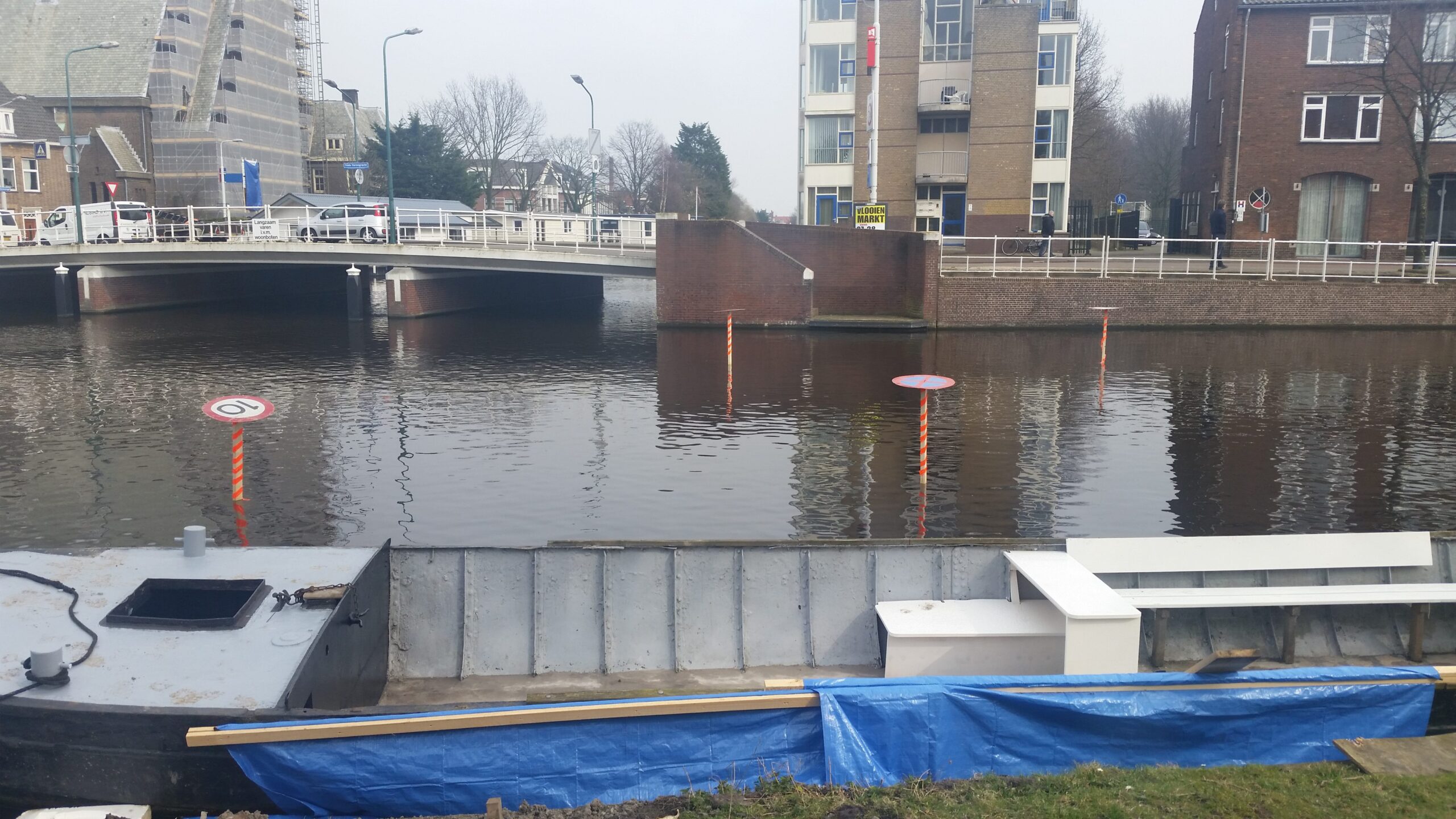 Vanmiddag heeft de gemeente Leiden een bijzondere proef gedaan op het water bij de Oude Herengracht. Op de plek tussen de Oude Herengracht en de Houtmarkt waar in de toekomst de Blekersparkbrug wordt aangelegd, werden vier palen in het water geslagen. Precies op de plekken waar in bij de toekomstige singelparkbrug de meerpalen zijn gepland. Vervolgens mochten de grootste rondvaartboten van Leiden, de Welvaart van de Leidse Rederij en de Saskia van rederij Rembrandt, proefvaren om te kijken of ze straks zonder problemen onder de brug door kunnen.