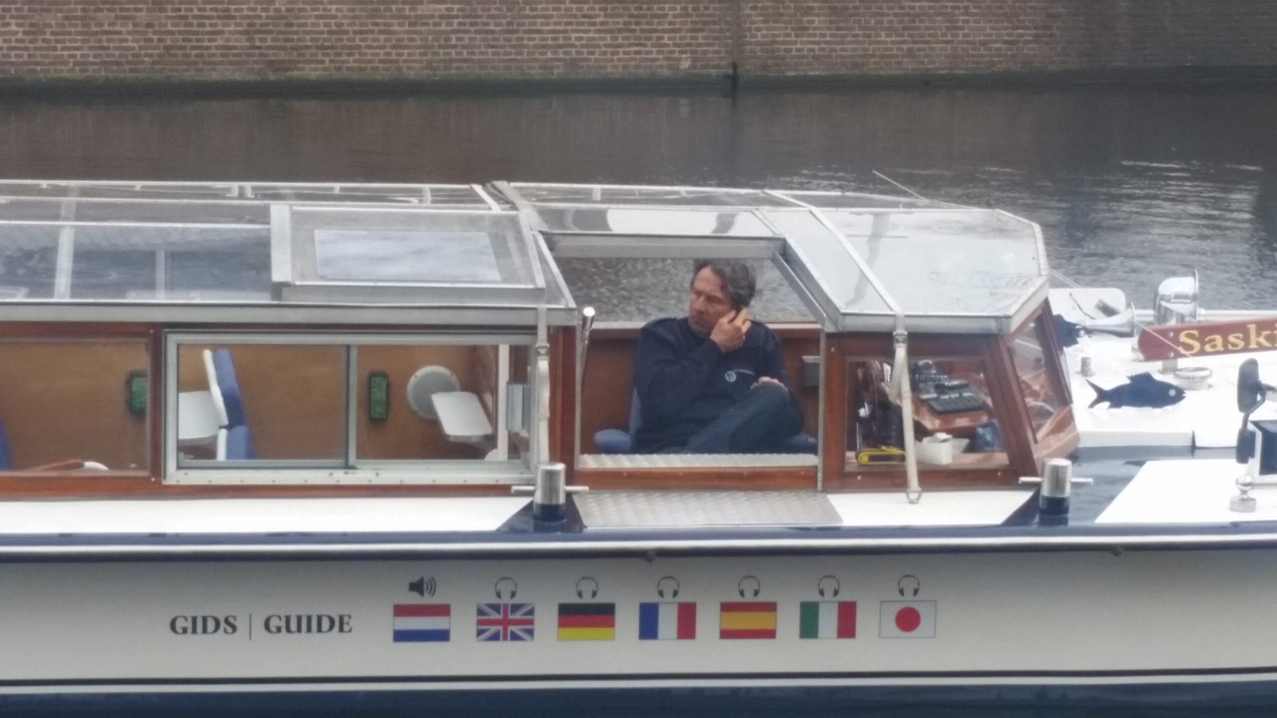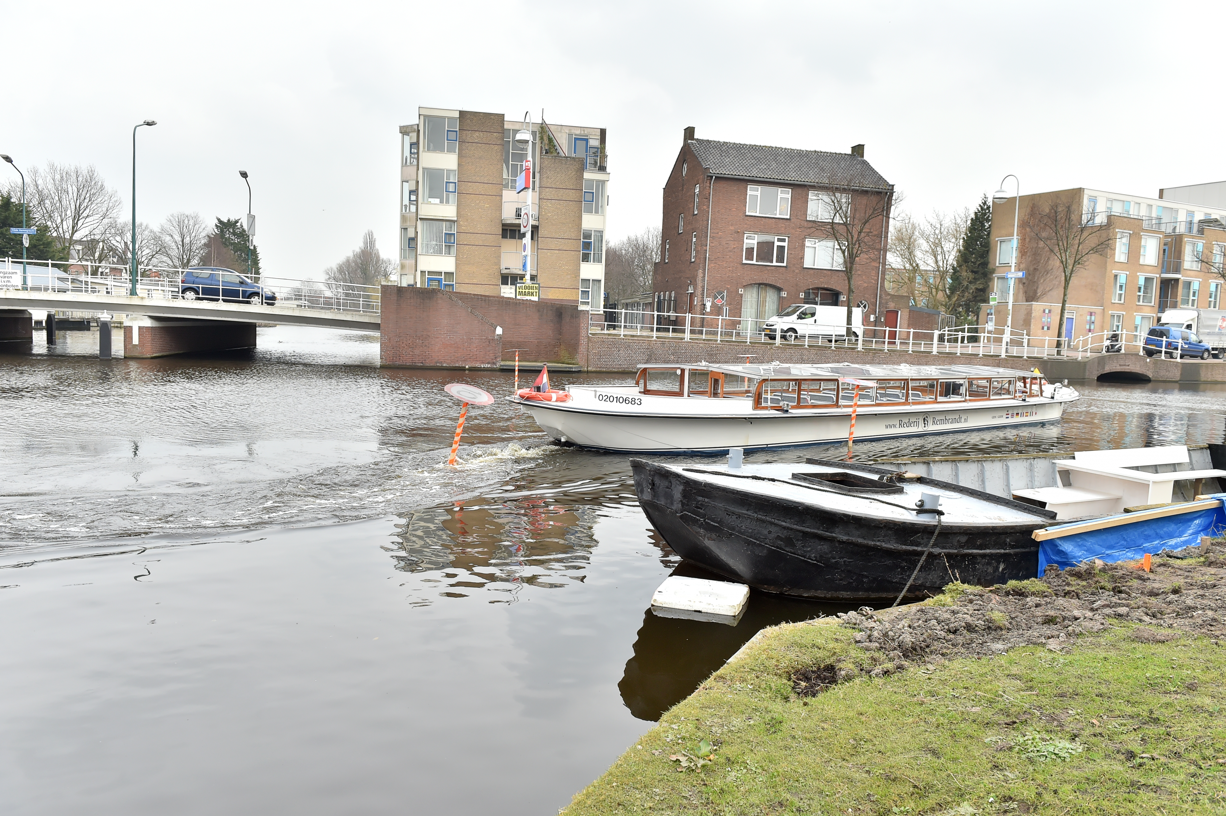 Proefvaren met grote rondvaartboten op een van de toekomstige plekken waar een singelparkbrug komt.
