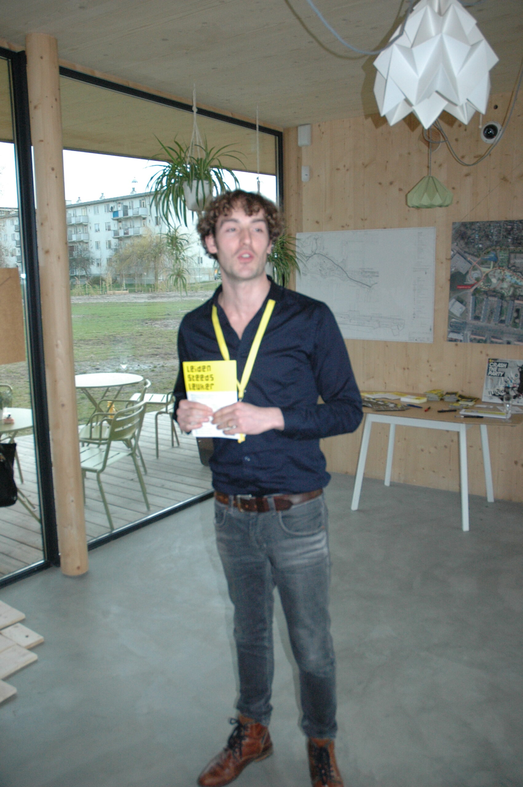 De plannen voor de burgertop werden gisteravond gepresenteerd tijdens de Lenteborrel van Stadslab Leiden in Theehuis de Tuin van Noord. Daar wisselde ook Stadslab van bestuur. Na het afscheid van de aftredende bestuursleden was het de beurt aan het nieuwe bestuur om zich voor te stellen. Dat ging gepaard met een kwinkslag. Een voor een stelden de zeven nieuwe bestuursleden zich voor als de nieuwe voorzitter van Stadslab. “Logisch”, vindt Pepijn Smit die voor de radio maar even optreedt als woordvoerder: “We doen het met z’n allen. Eigenlijk is zeven nog weinig.” Het nieuwe bestuur bestaat uit Tahira Limon, Sigrid Jansen, Marjolein Bakker, Lot Vegter, Pepijn Smit, Aldert de Vries en Lex van Delden.