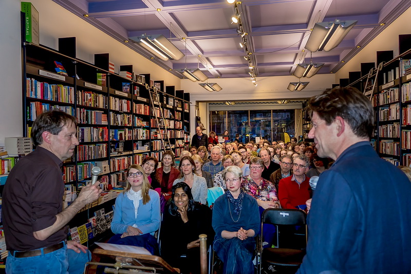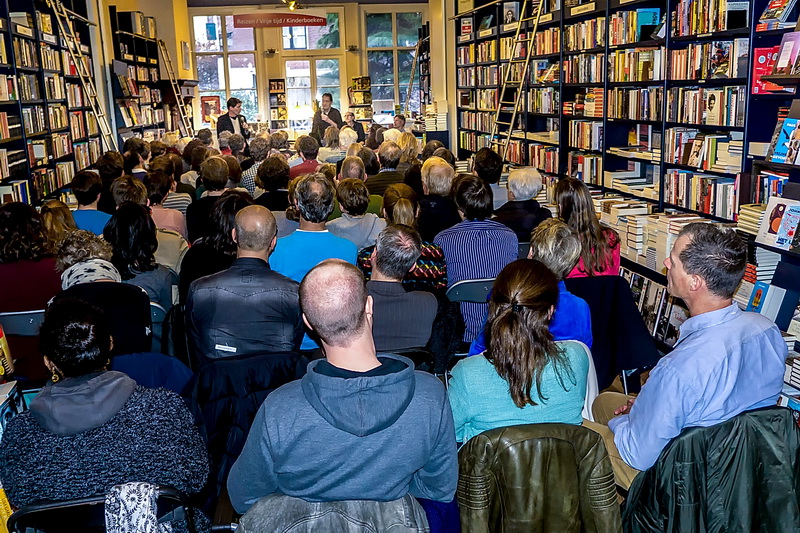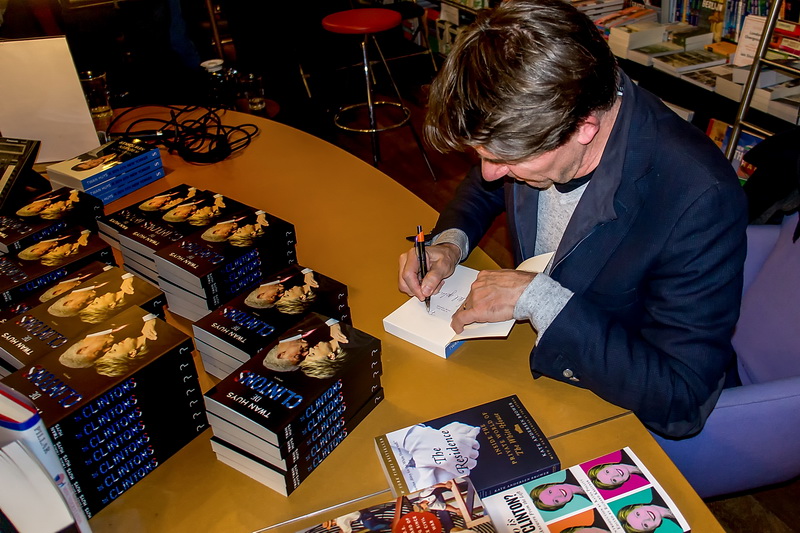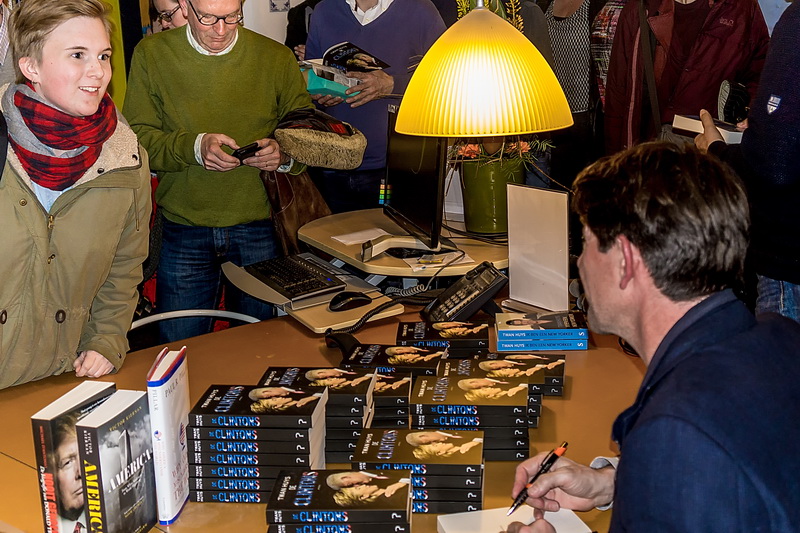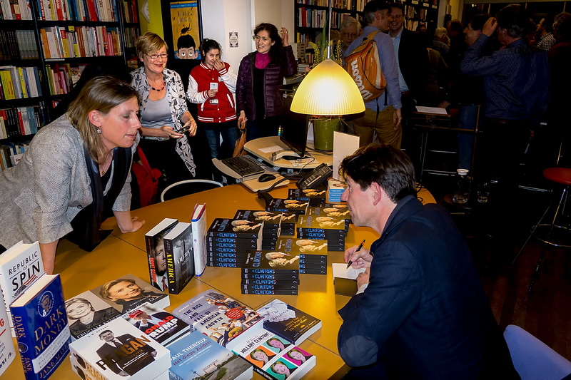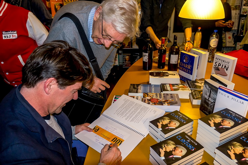 Twan Huys, presentator van Nieuwsuur en bedenker van College Tour, bracht gisteravond een bezoek aan Leiden. In Van Stockum werd hij geïnterviewd en signeerde hij zijn nieuwe boek ‘De Clintons’. Ruim zestig mensen waren hierbij aanwezig.