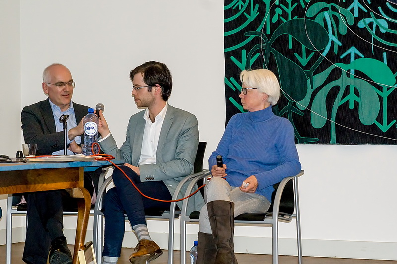 Aan tafel vertelden Leidenaar Chris Oppenheimer, Jori Zijlmans en Nicole Roepers van De Lakenhal, Chris Verplancke (oud-voorzitter Vereniging van Ambulante Handel), historicus Cor Smit, smid Sjaak van de Geijn, Hans van der Meij van uitgeverij Brill, Benjamin Wegman van de Leidse brouwerij Pronck en Anneke Fennema van museum Het Wevershuisje over het heden en verleden van de Leidse markten en ambachten.