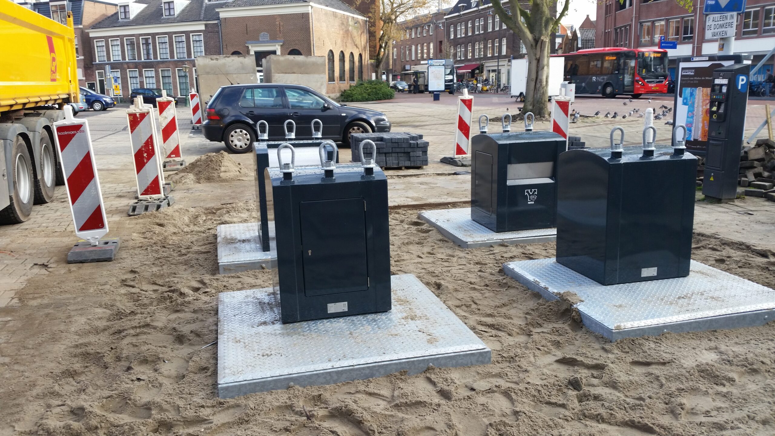 Op één plek in het centrum staat de containers nog bovengronds. Aan de Papengracht is ondergronds geen ruimte voor de containers door een wirwar aan kabels en leidingen. Een oplossing wordt nog gezocht.