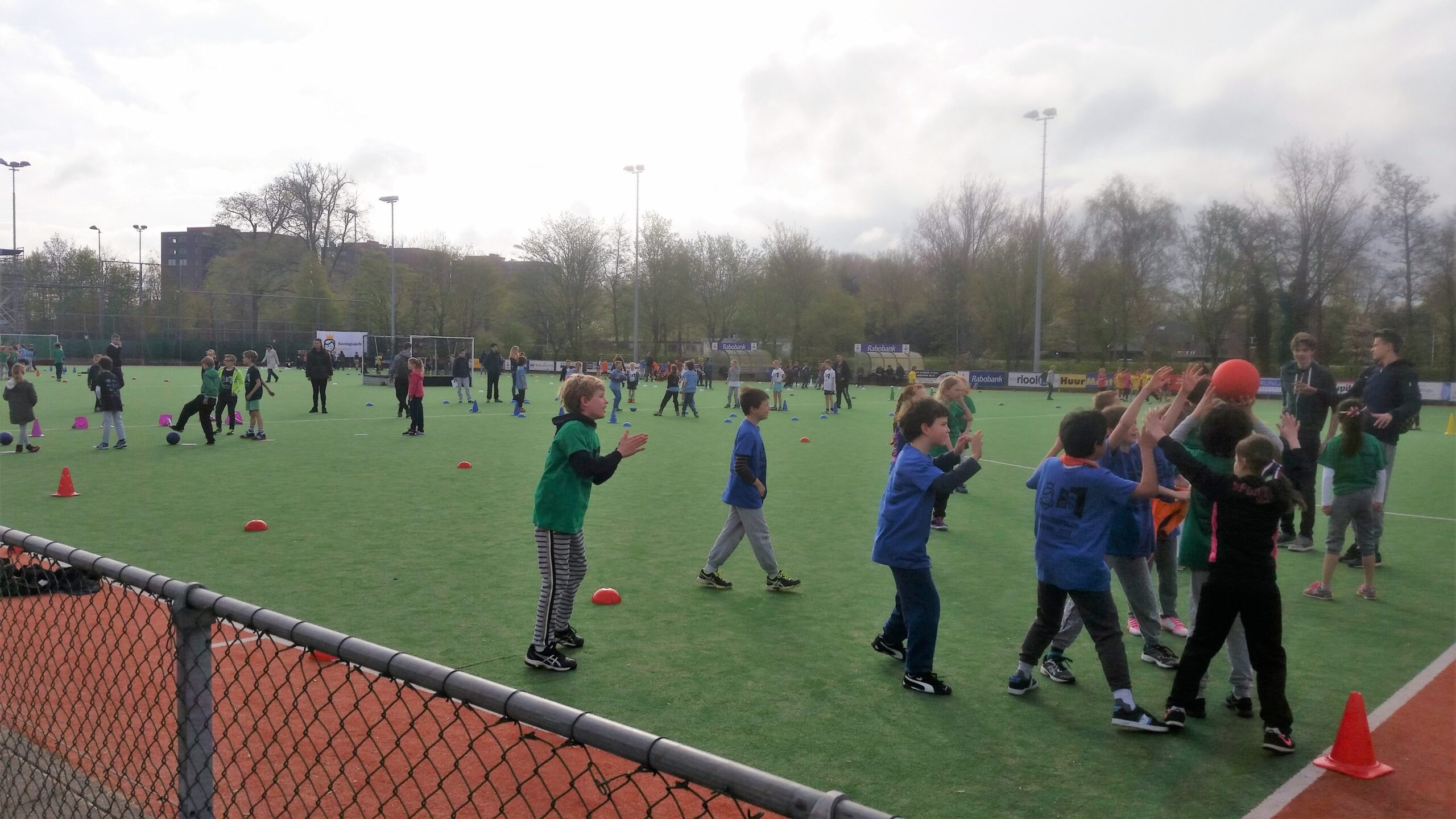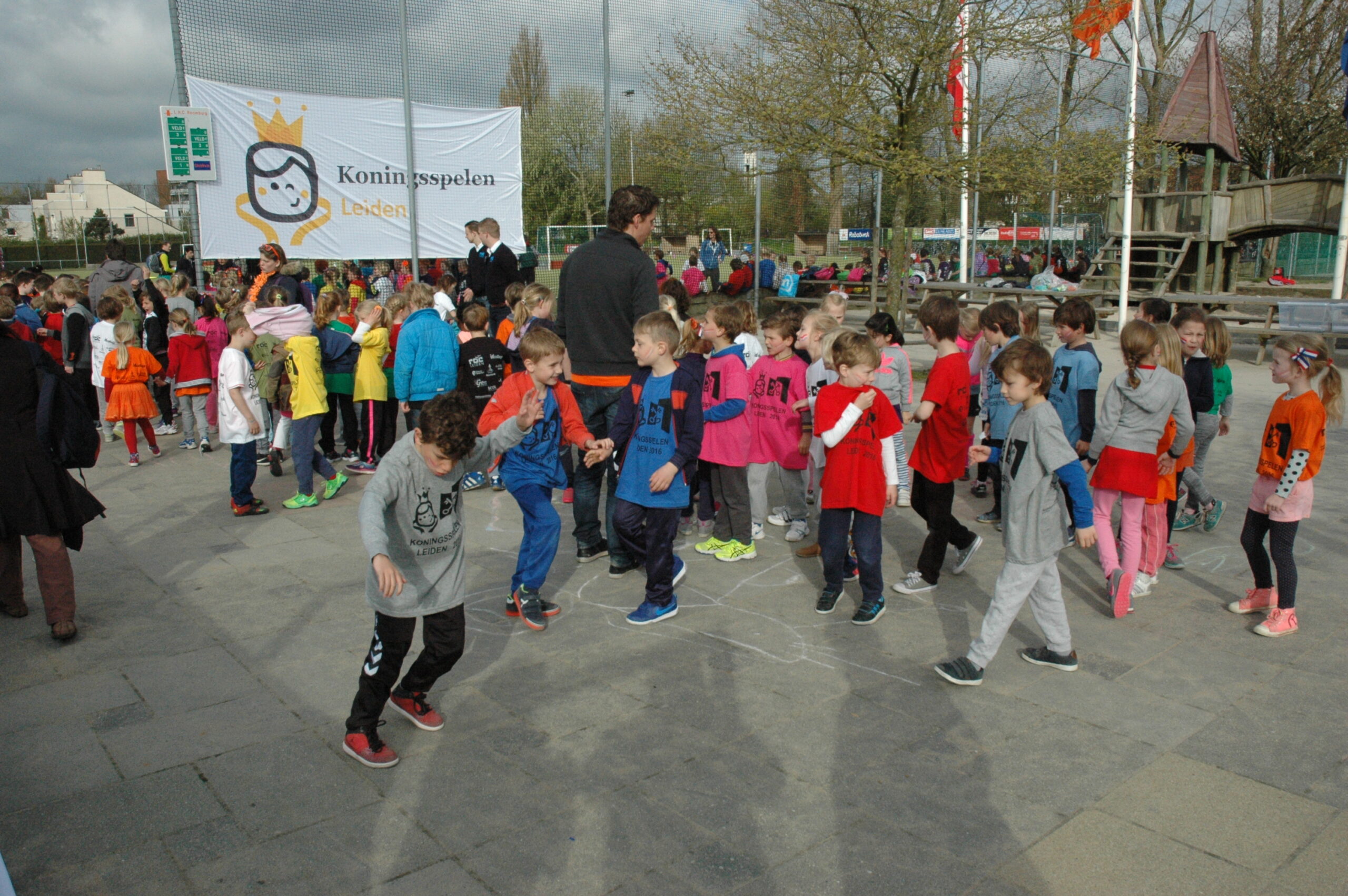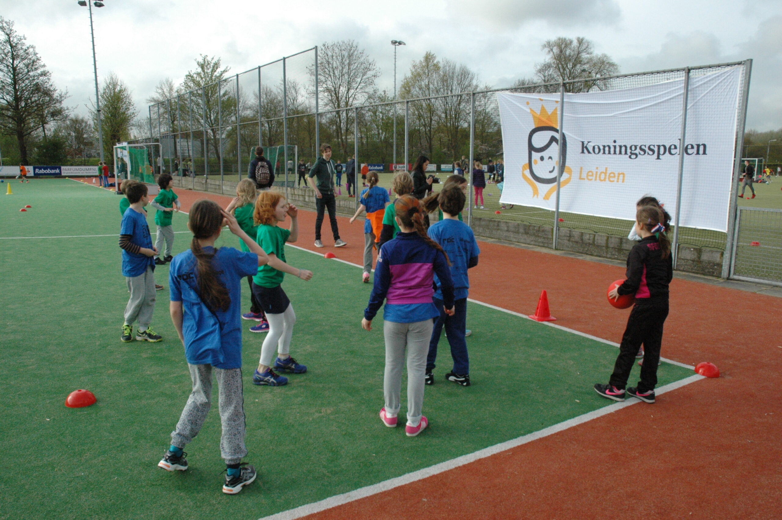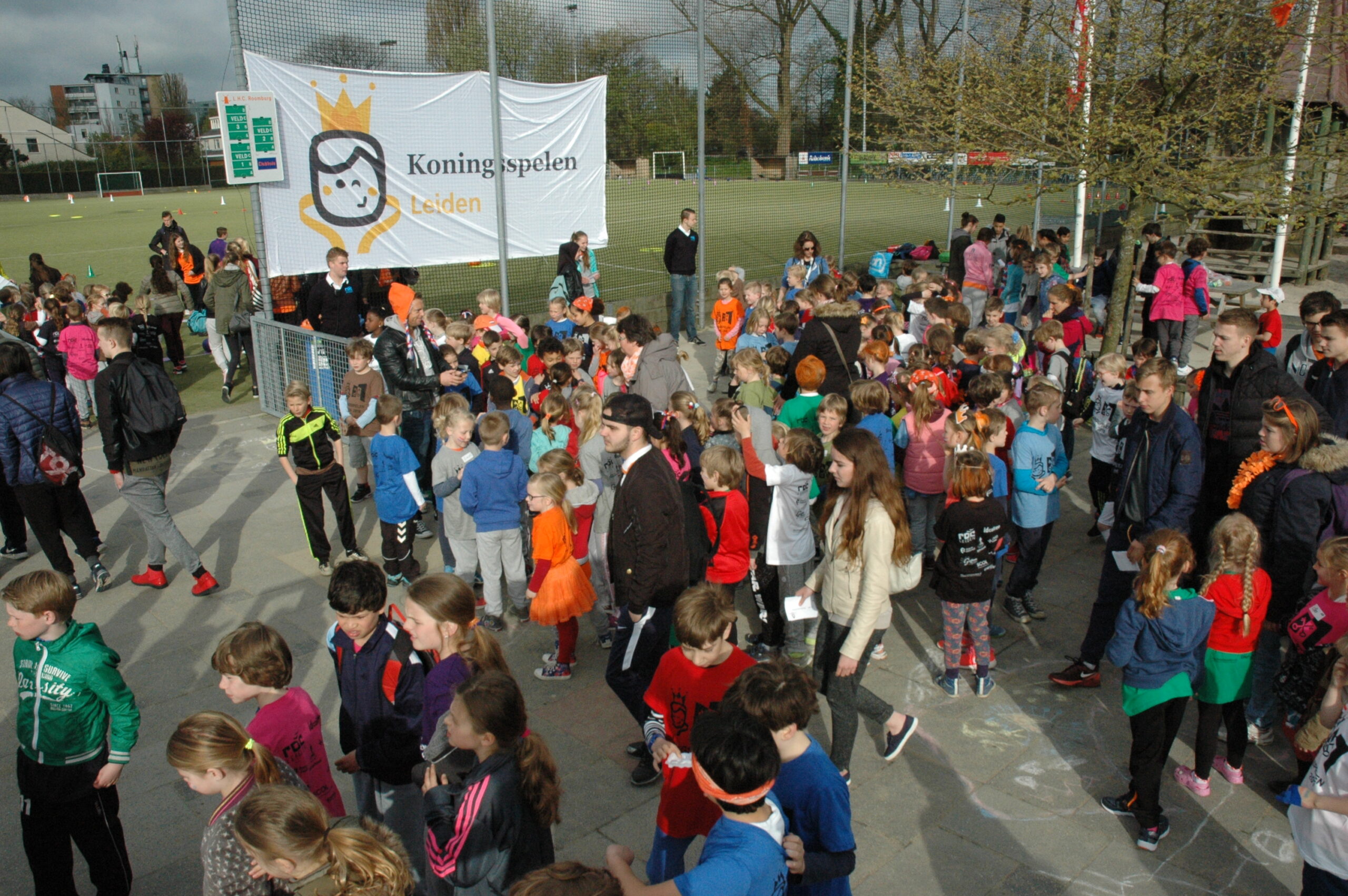 Op maar liefst 40 plekken in Leiden zijn vandaag ongeveer 9.000 basisscholieren aan het sporten tijdens de Koningsspelen Leiden. Die werden vanmorgen om 9.00 uur officieel geopend bij de Leidse Hockeyclub Roomburg aan de Van Vollenhovekade. Alleen al op de sportvelden daar verzamelden tussen de 600 en 700 kinderen.