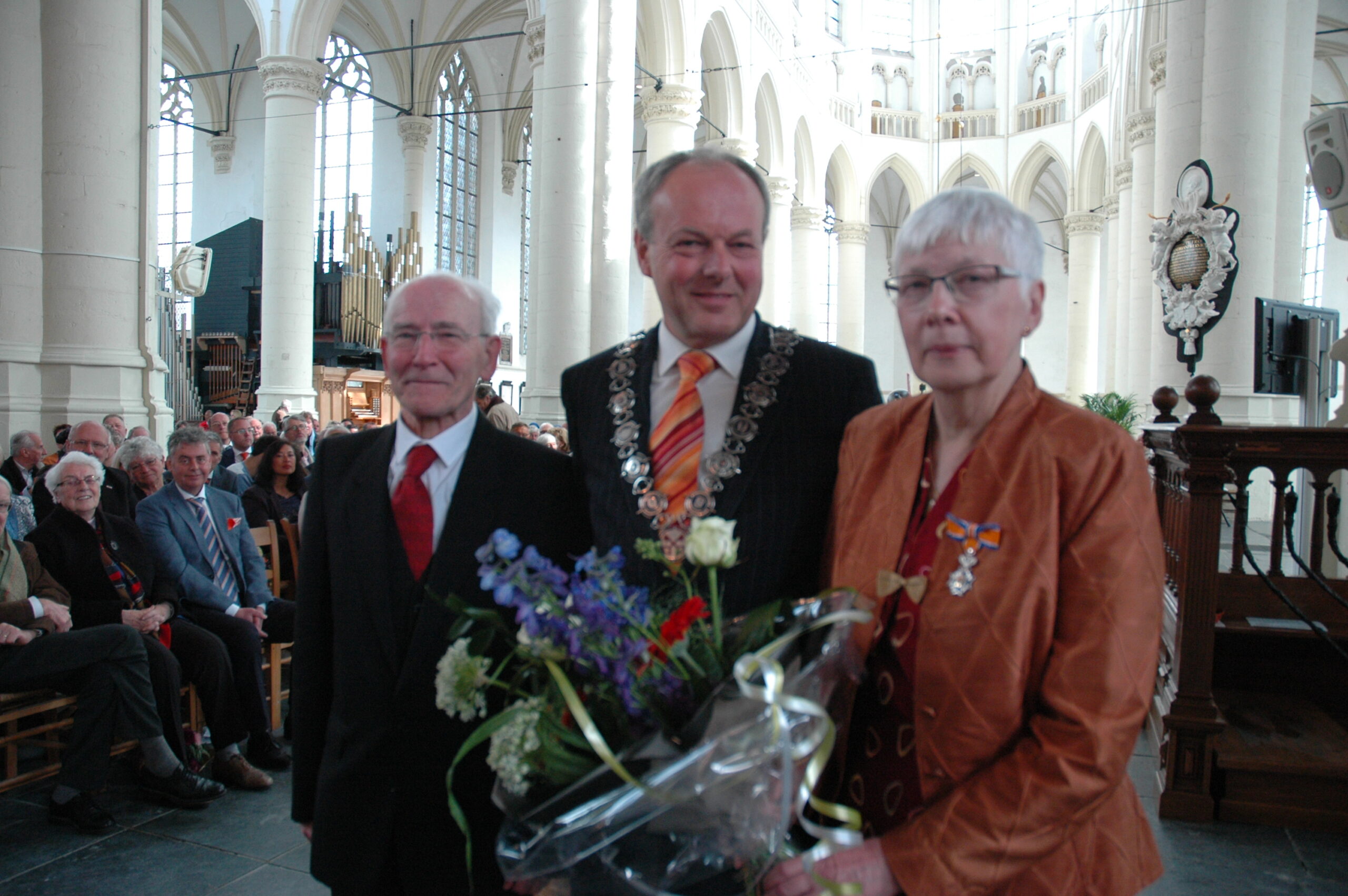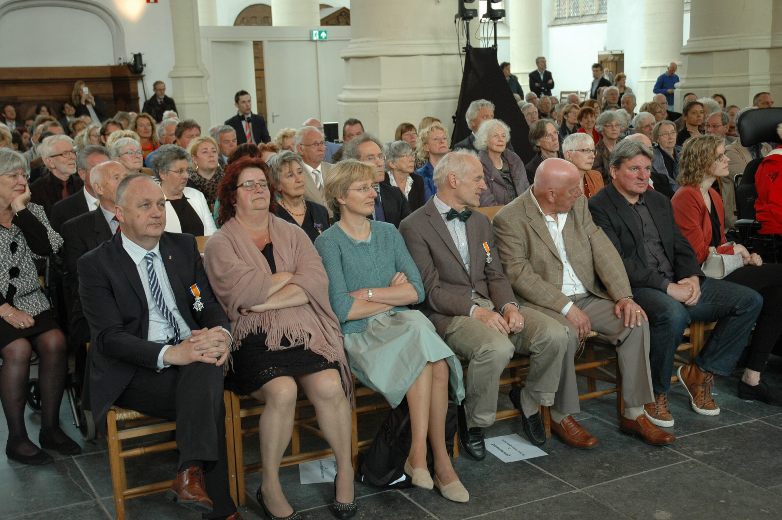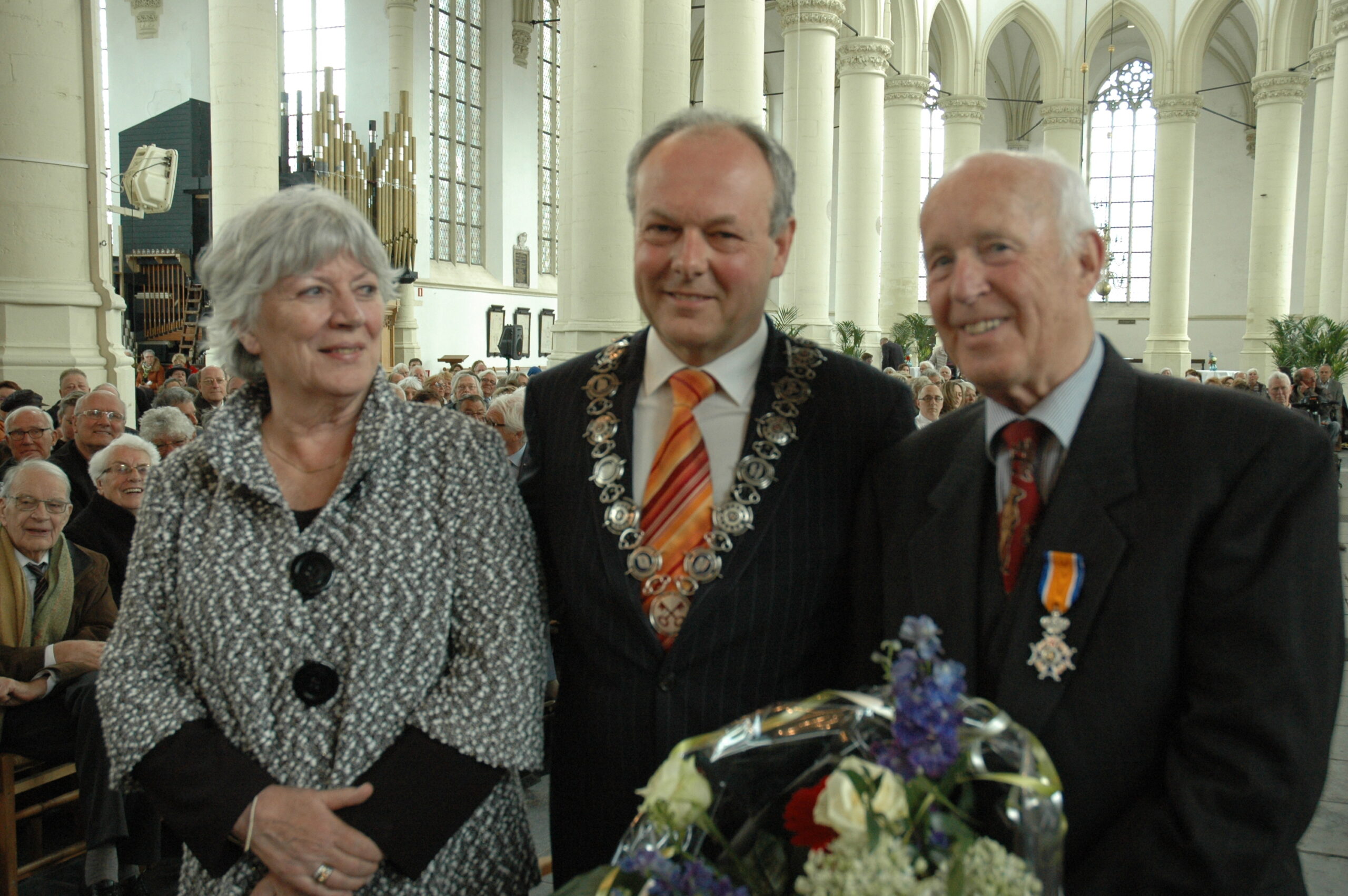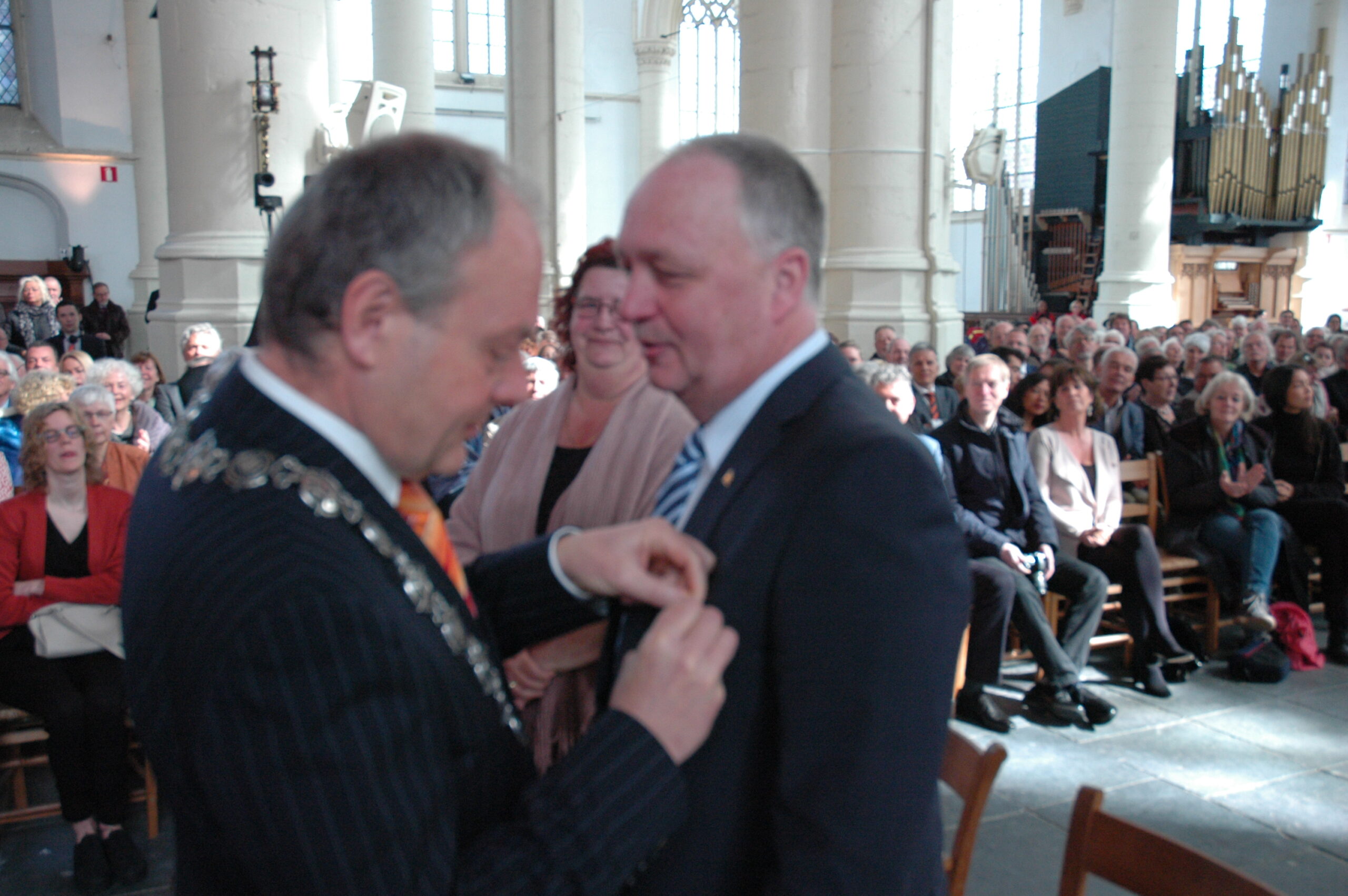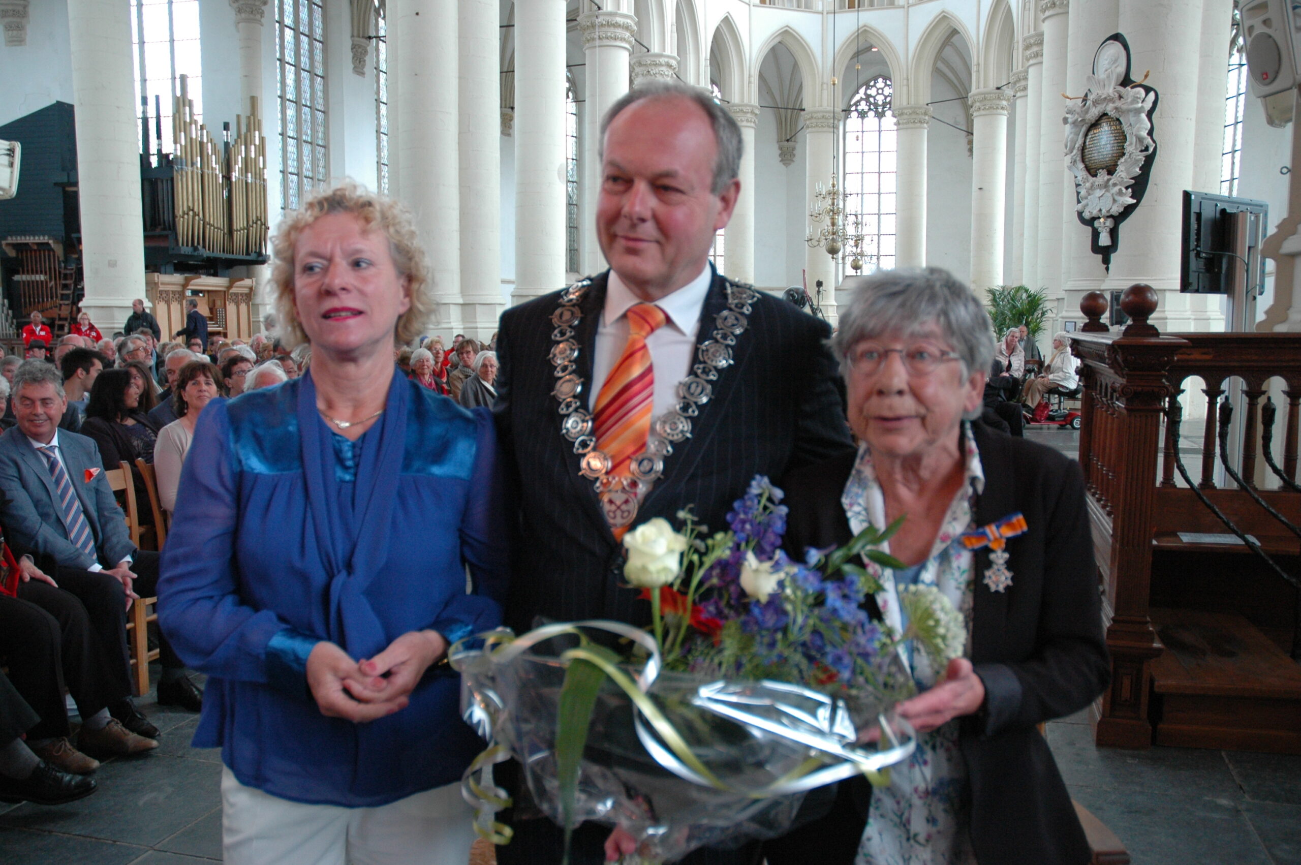 Chris de Waard ging vanmorgen naar de Hooglandse Kerk en sprak na de toespraken met drie gedecoreerden, Cor Arnoldus, Wils Spies en Kees Botermans, en met burgemeester Lenferink.