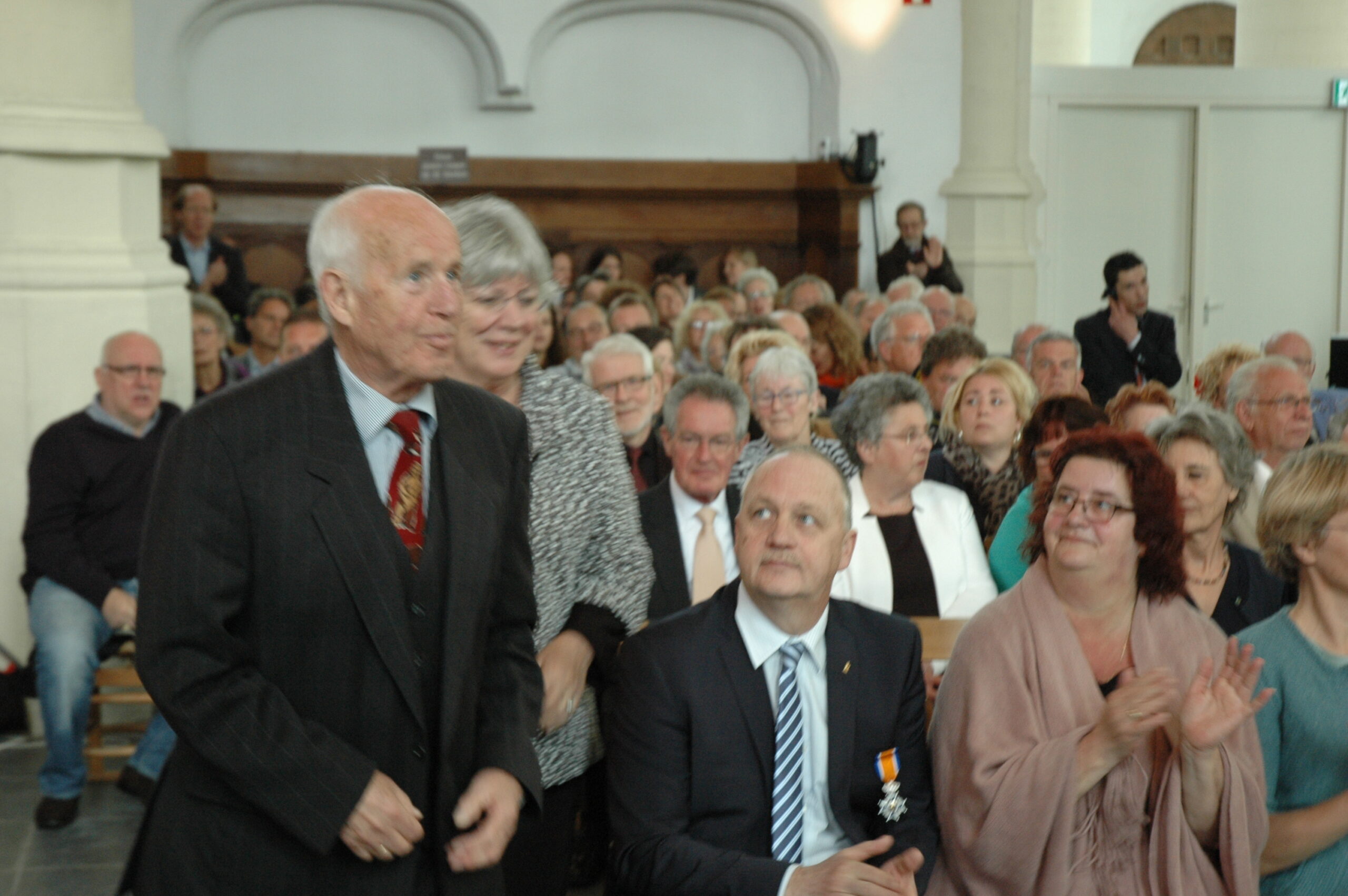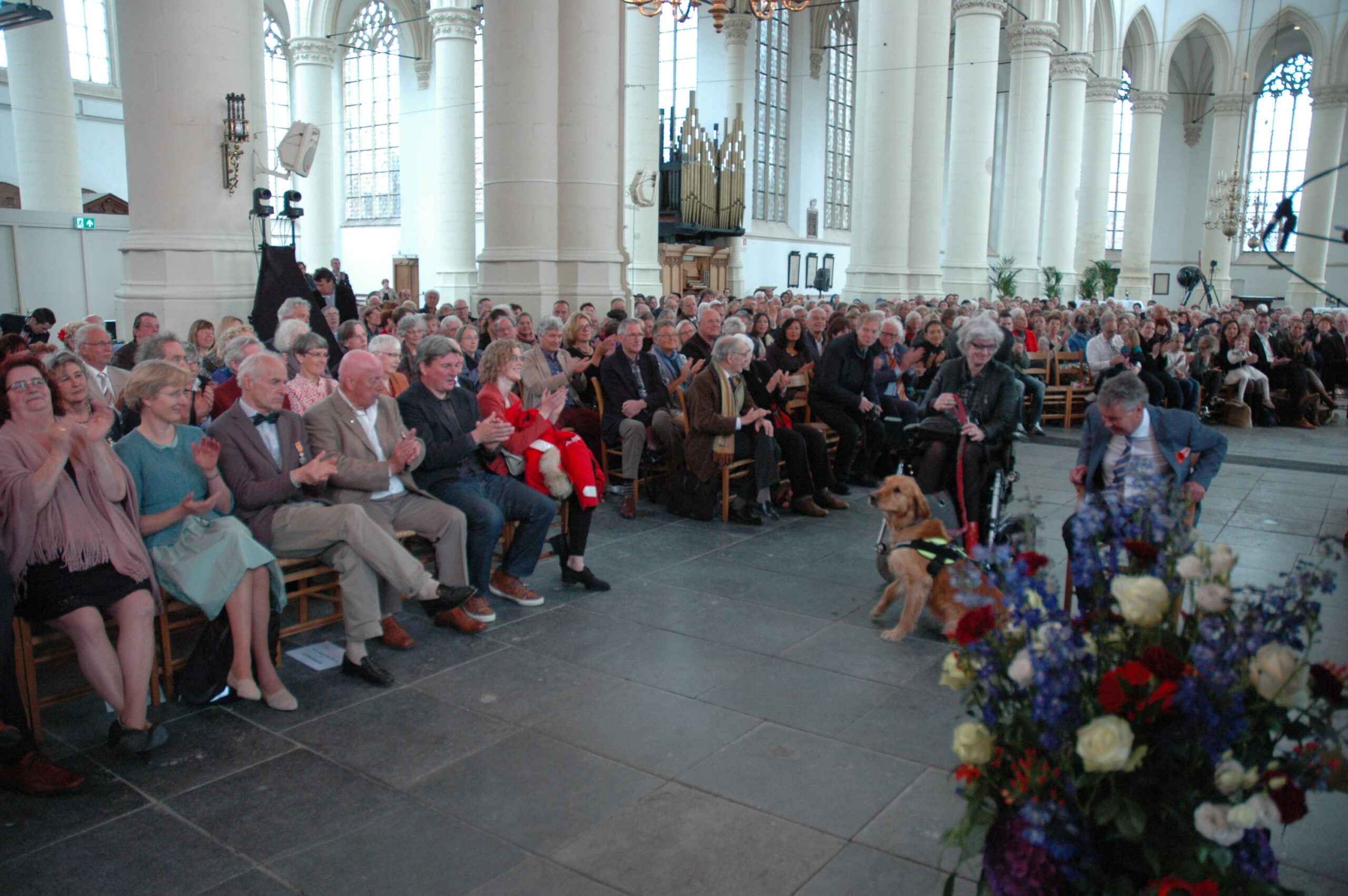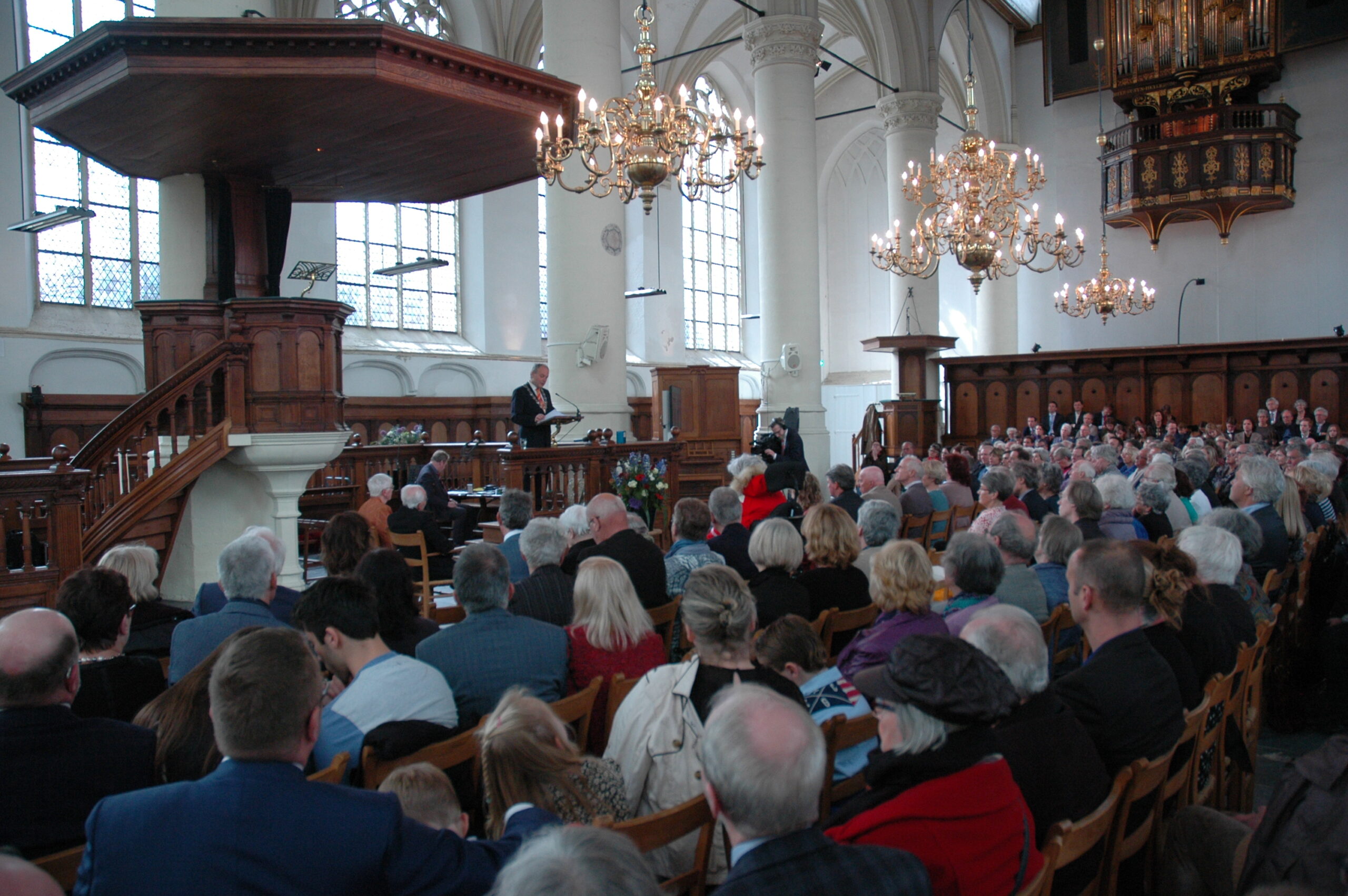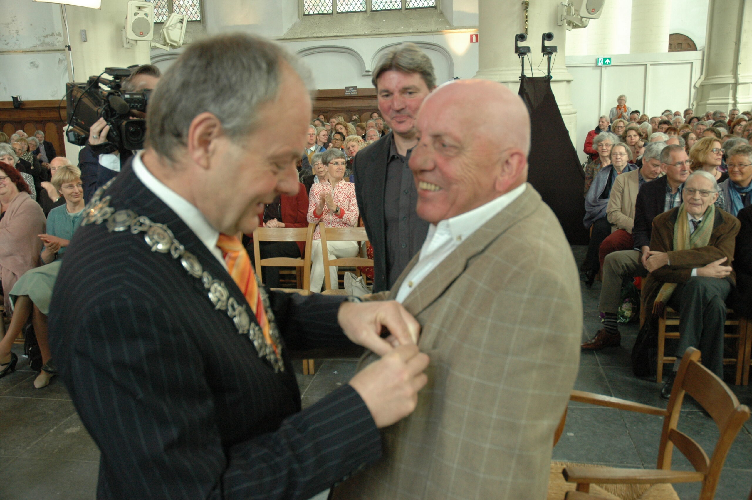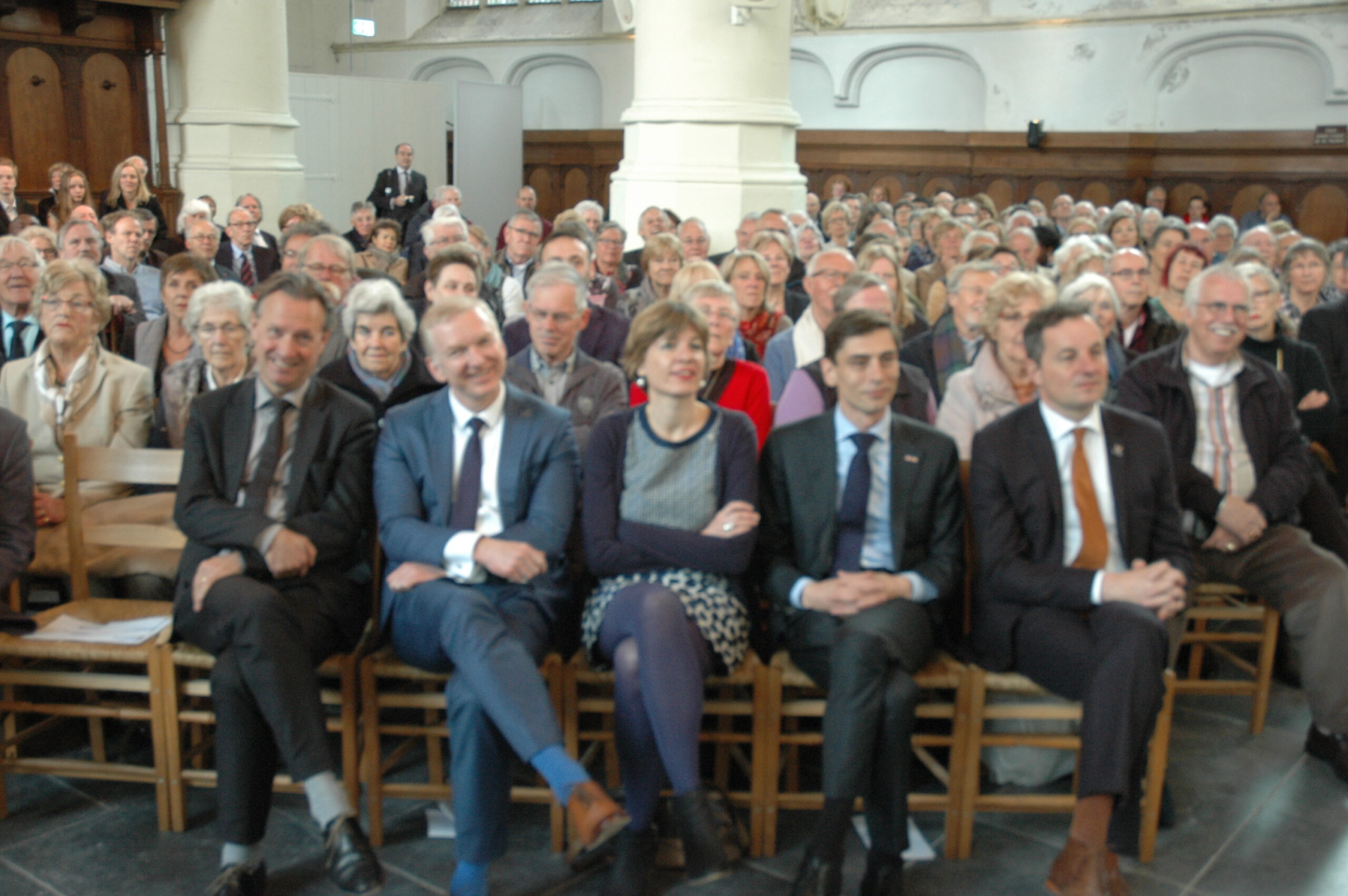 Chris de Waard ging vanmorgen naar de Hooglandse Kerk en sprak na de toespraken met drie gedecoreerden, Cor Arnoldus, Wils Spies en Kees Botermans, en met burgemeester Lenferink.