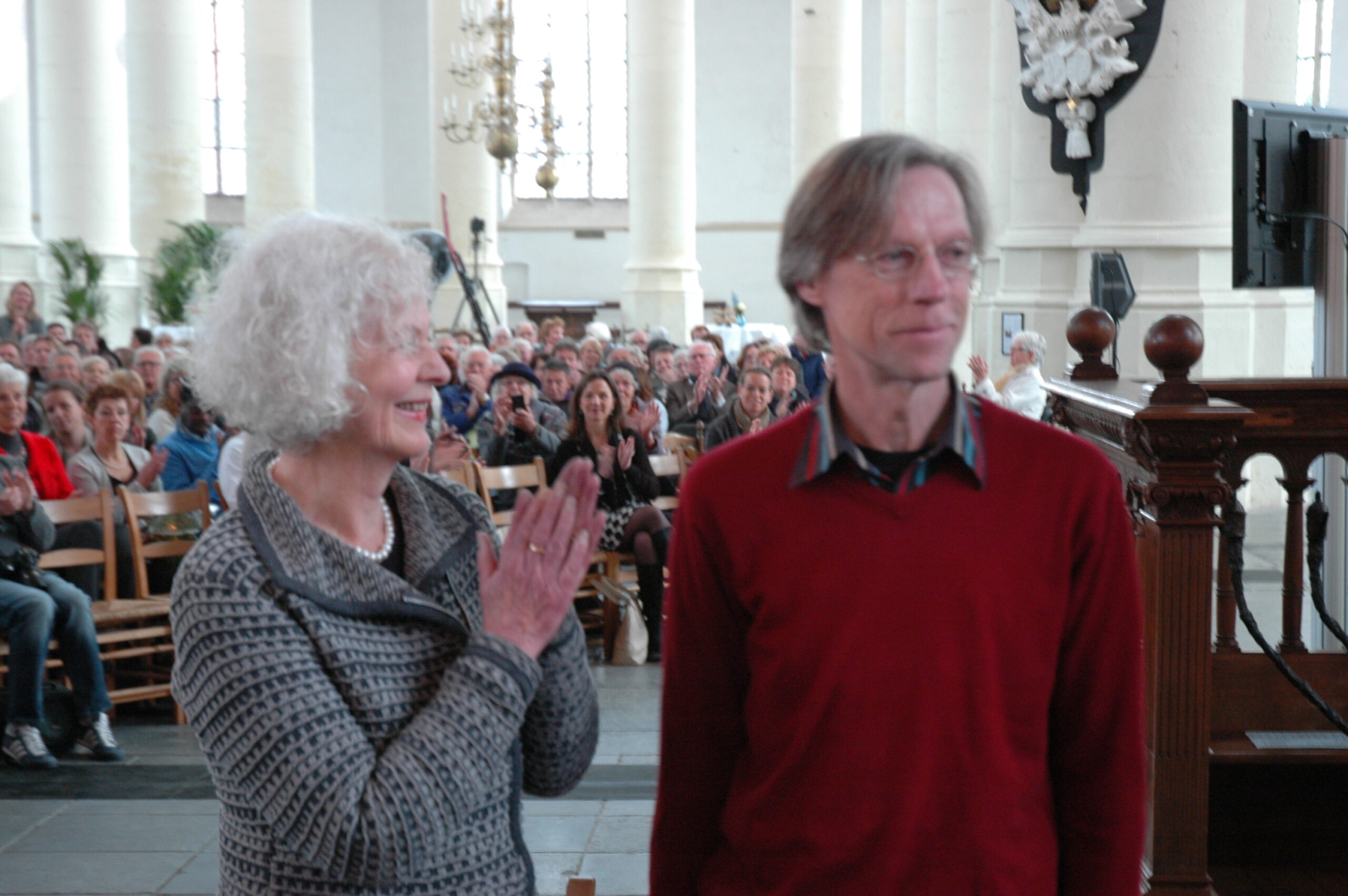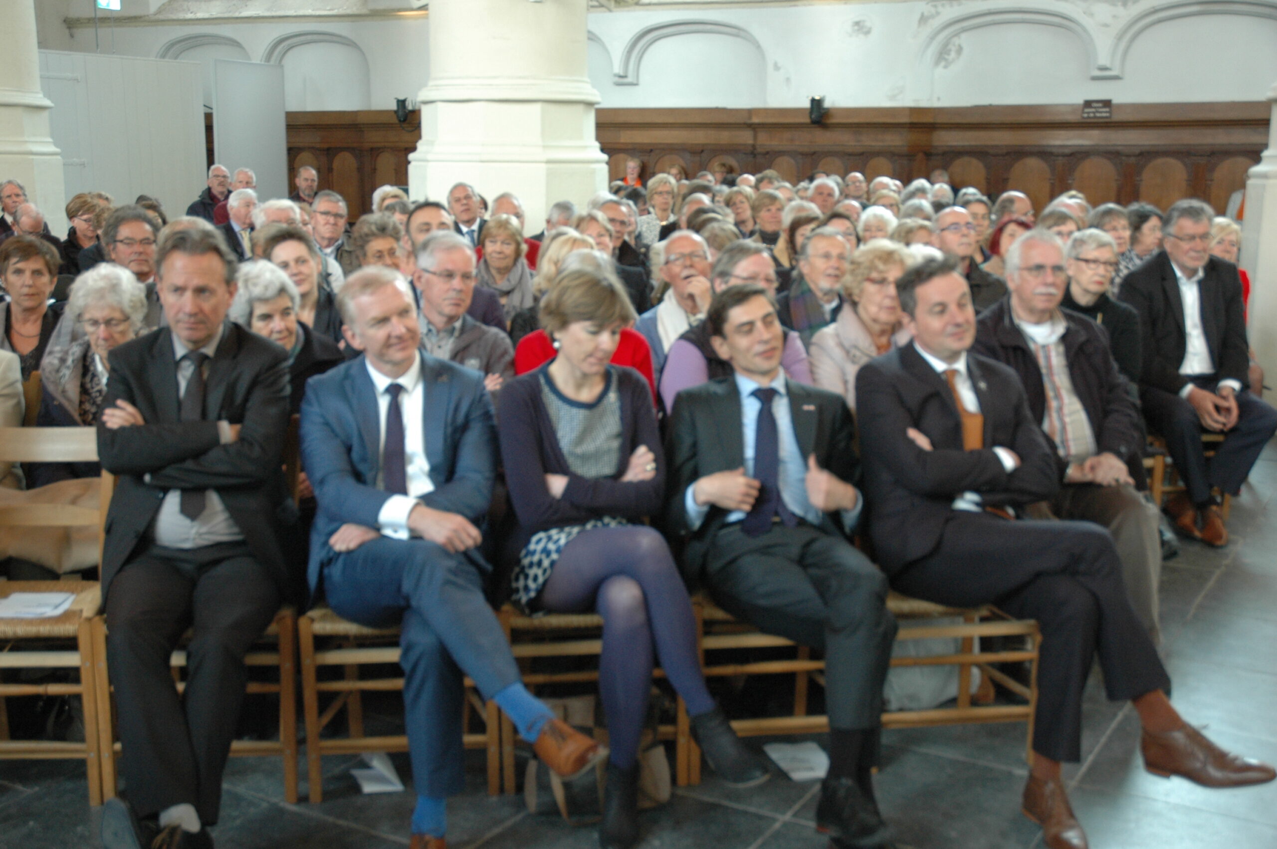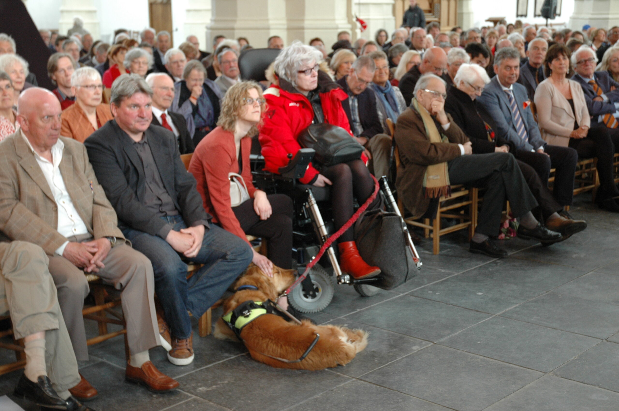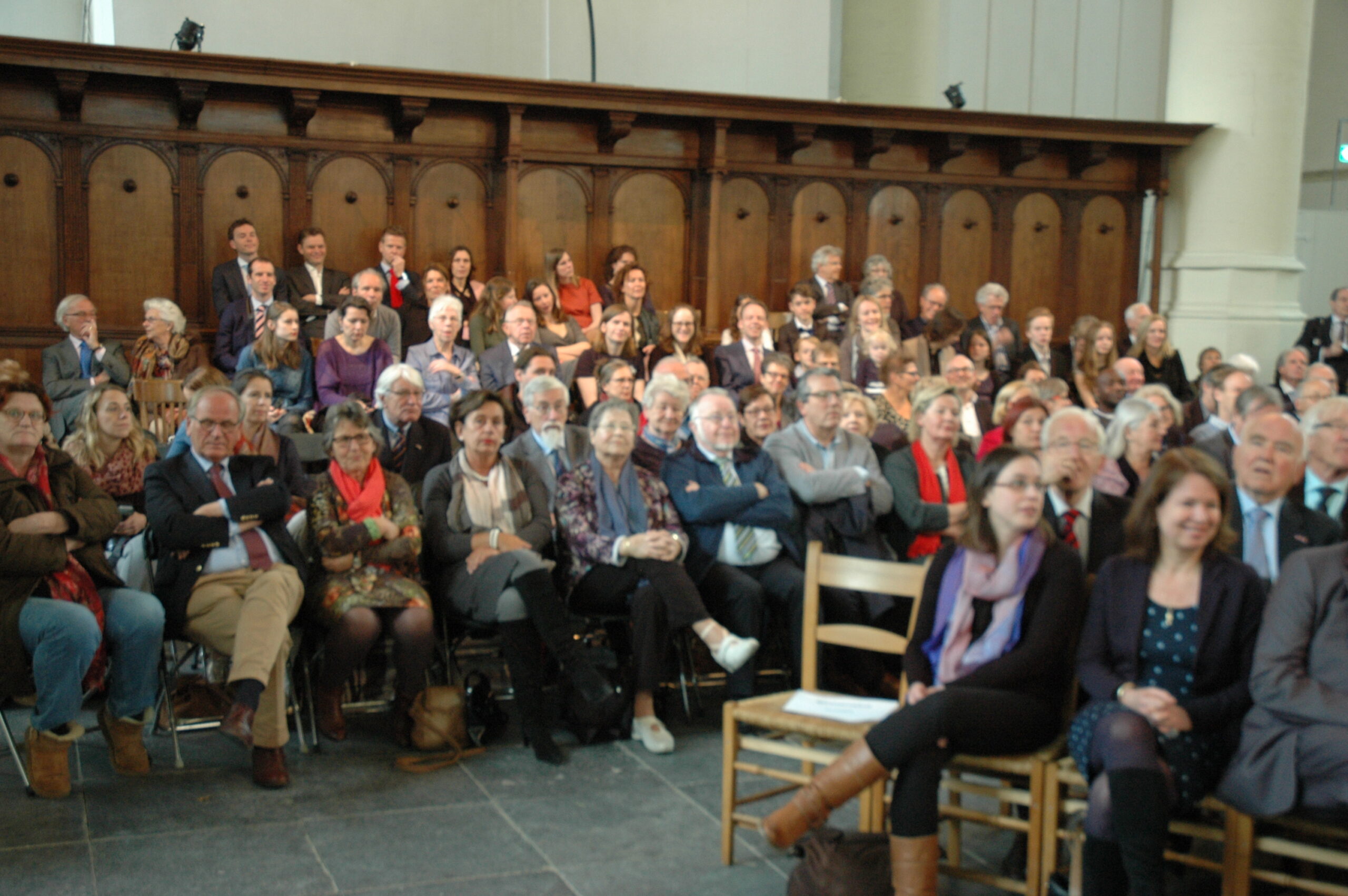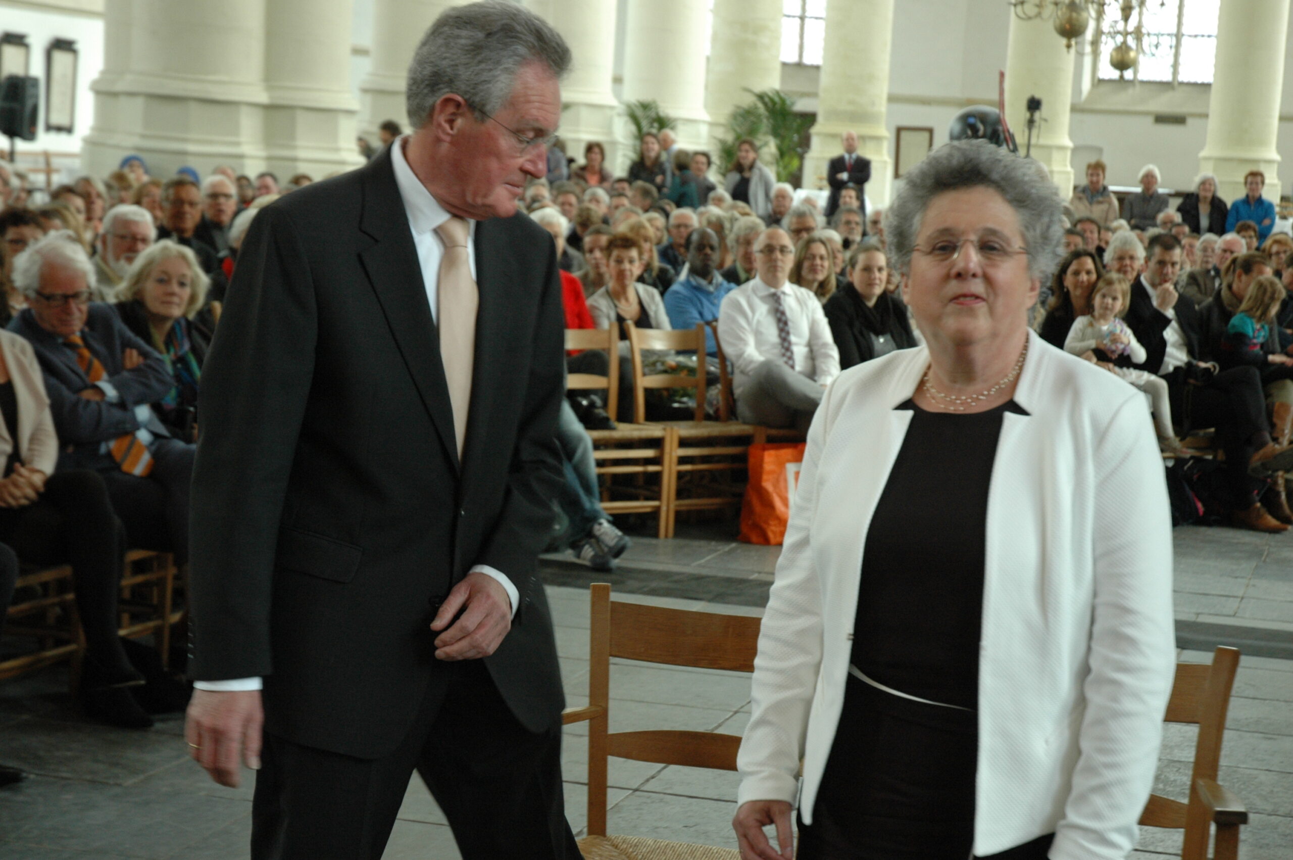 Chris de Waard ging vanmorgen naar de Hooglandse Kerk en sprak na de toespraken met drie gedecoreerden, Cor Arnoldus, Wils Spies en Kees Botermans, en met burgemeester Lenferink.