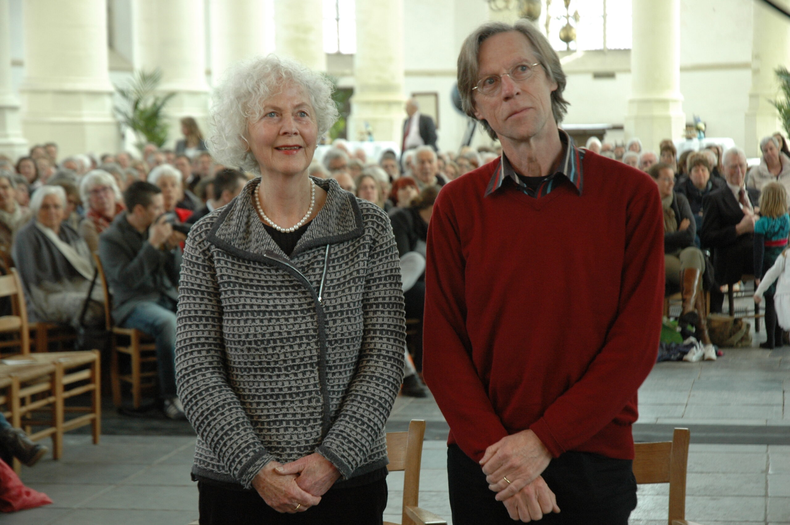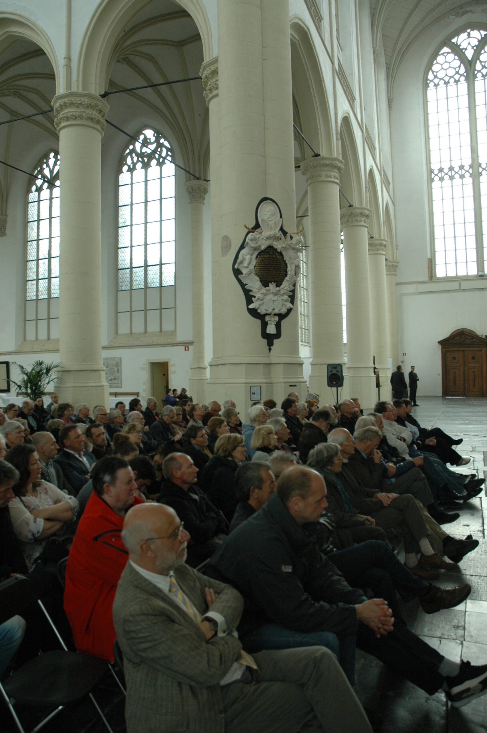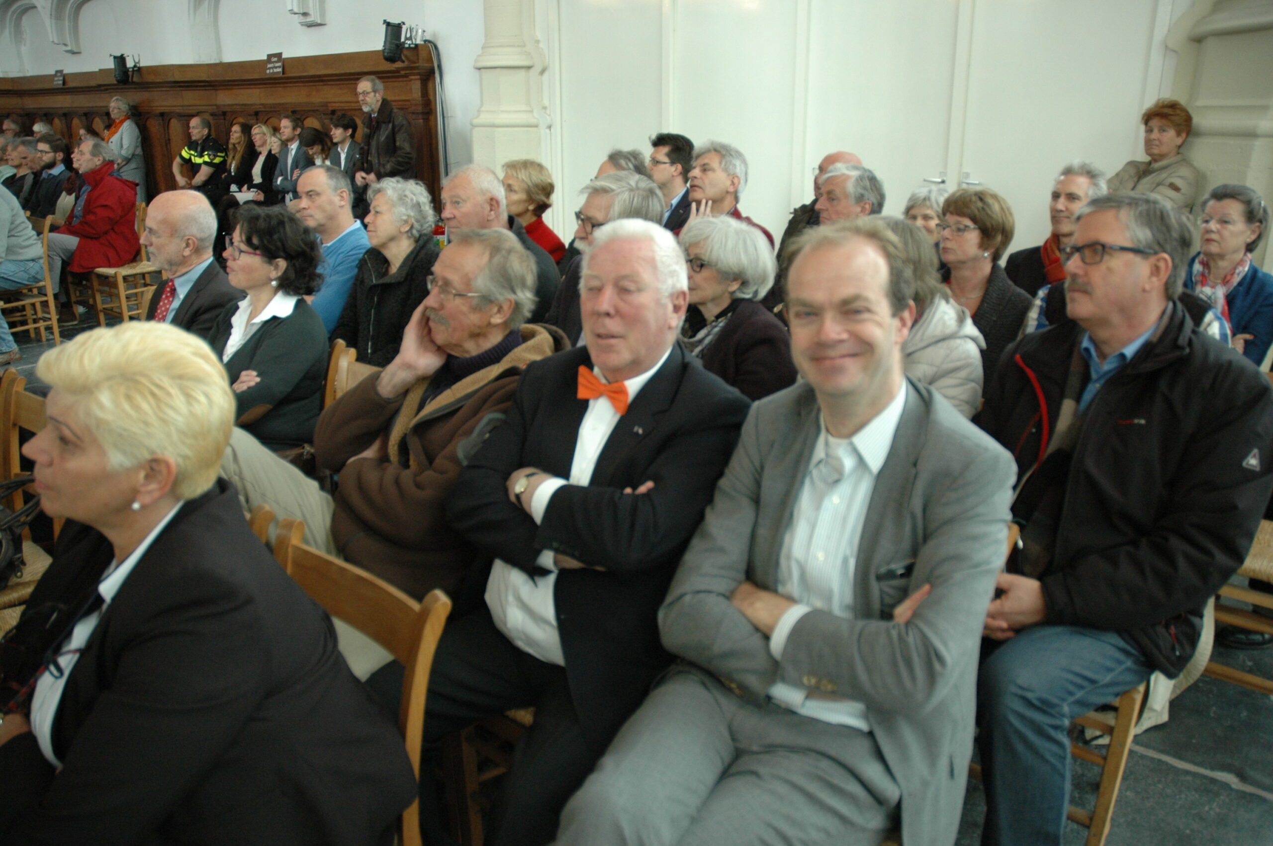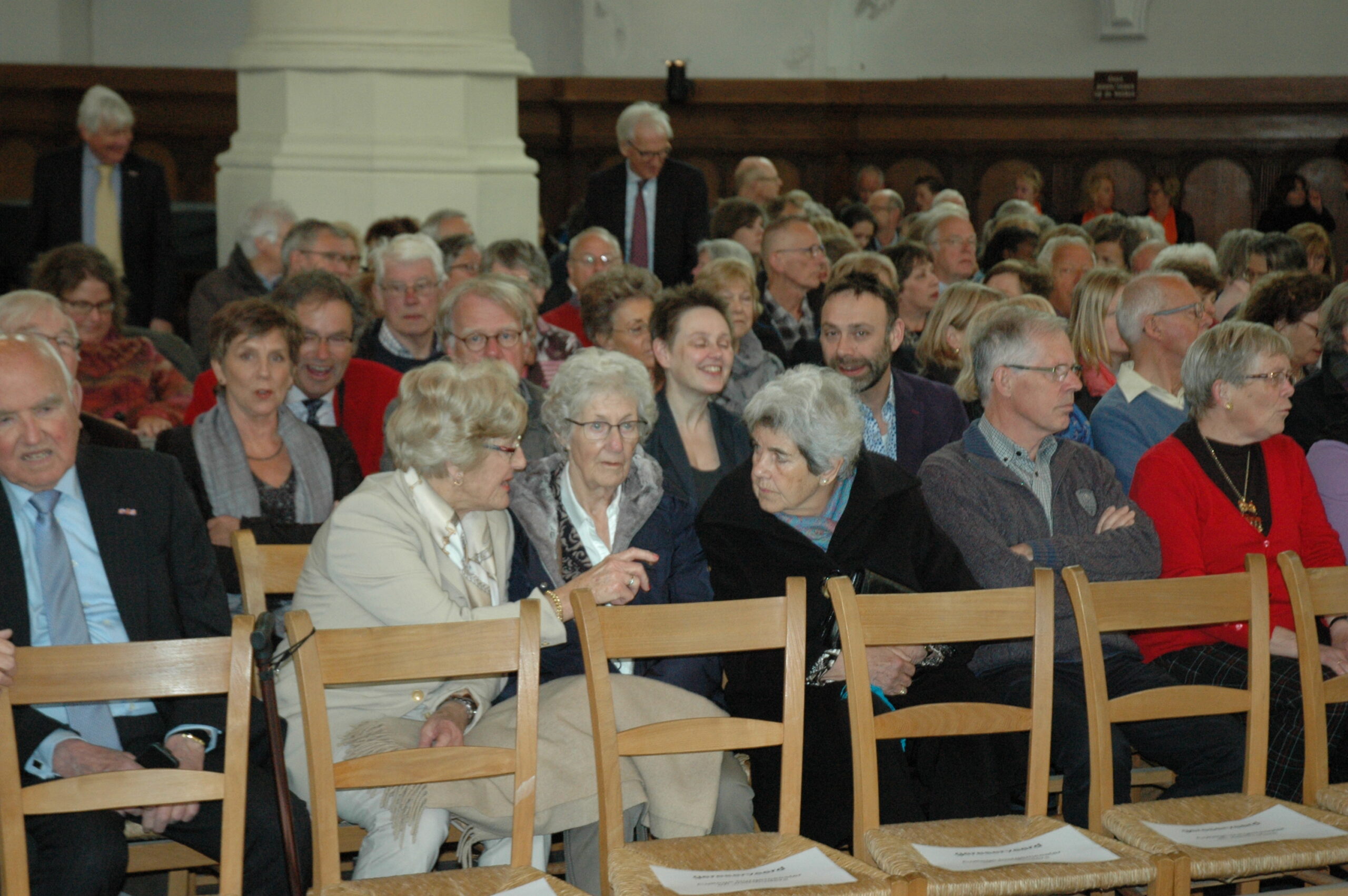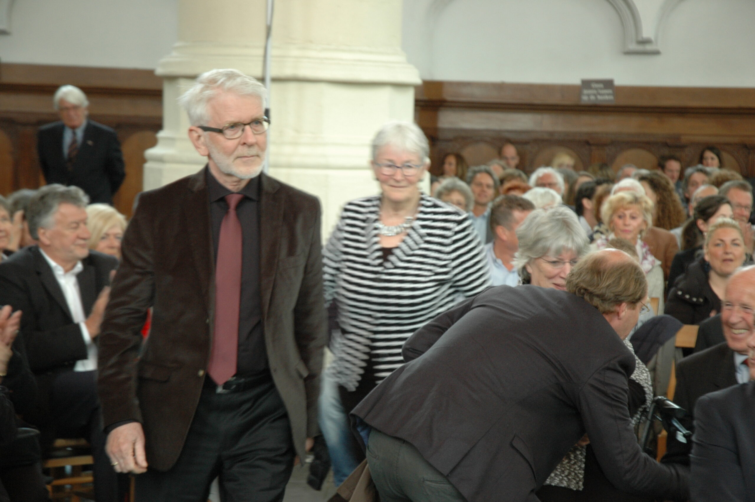 Chris de Waard ging vanmorgen naar de Hooglandse Kerk en sprak na de toespraken met drie gedecoreerden, Cor Arnoldus, Wils Spies en Kees Botermans, en met burgemeester Lenferink.